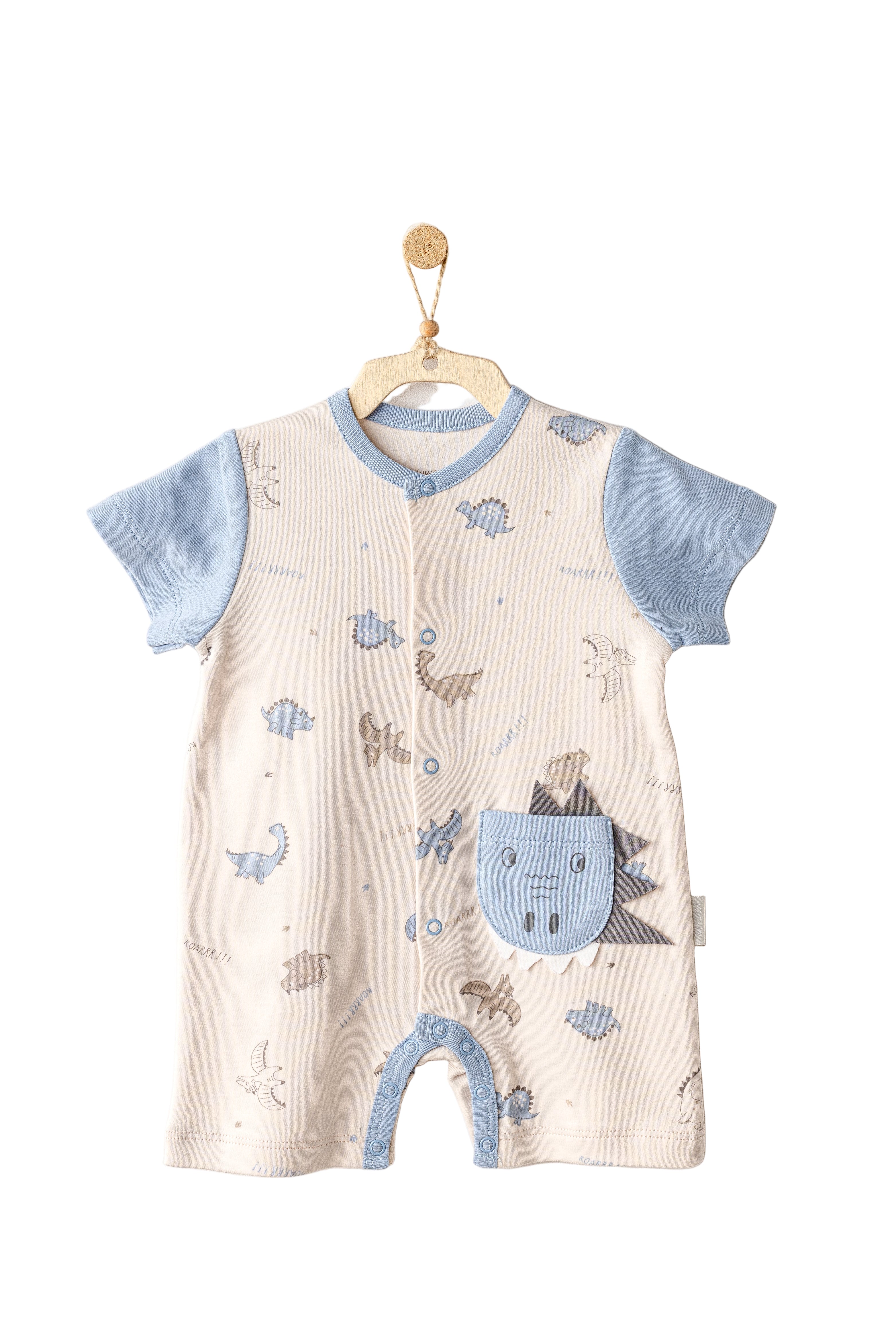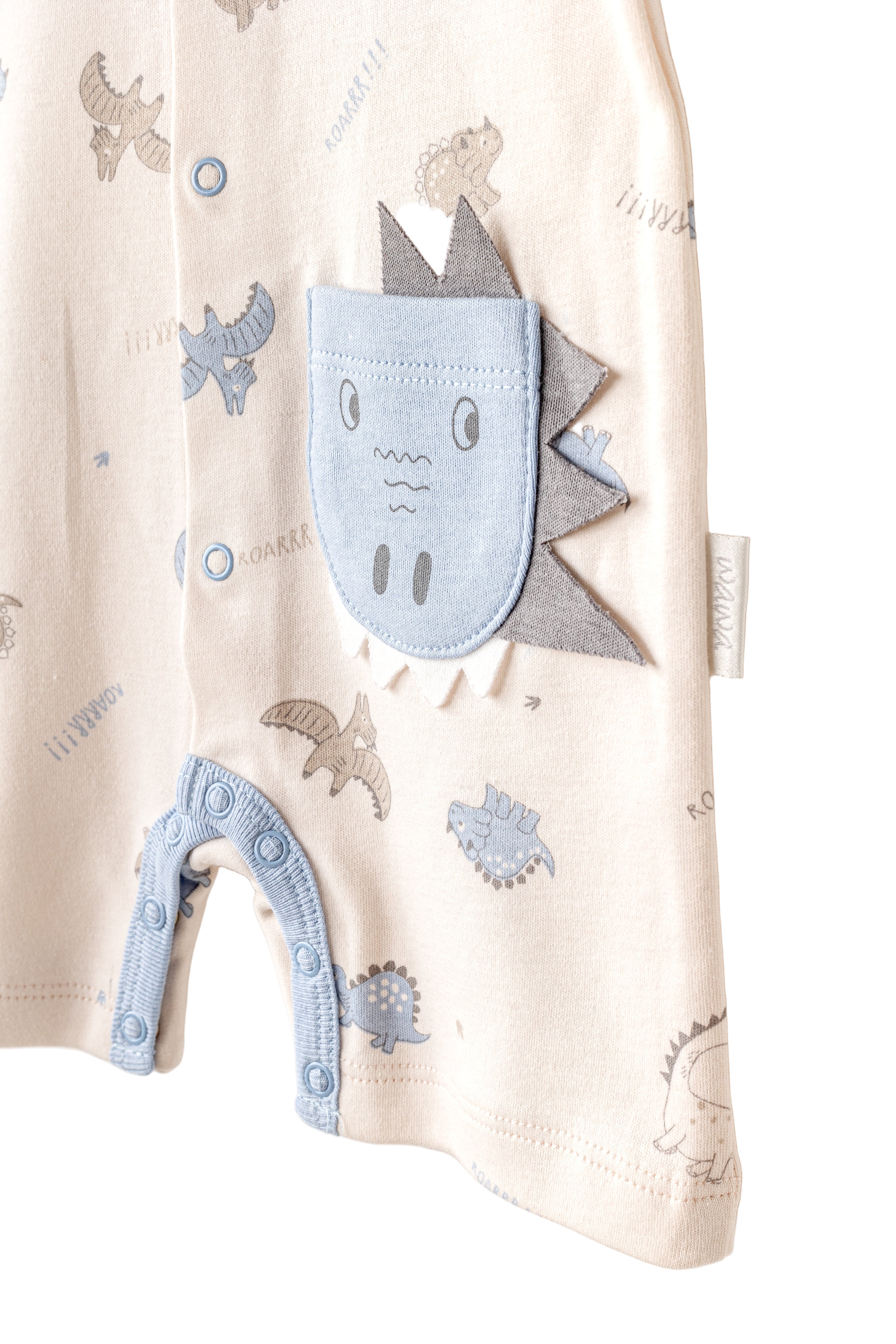 The Beige Dinosaur Blue Sleeve Romper brings playful charm to everyday comfort. Crafted from soft, breathable fabric, it ensures a cozy feel for little ones on the move.