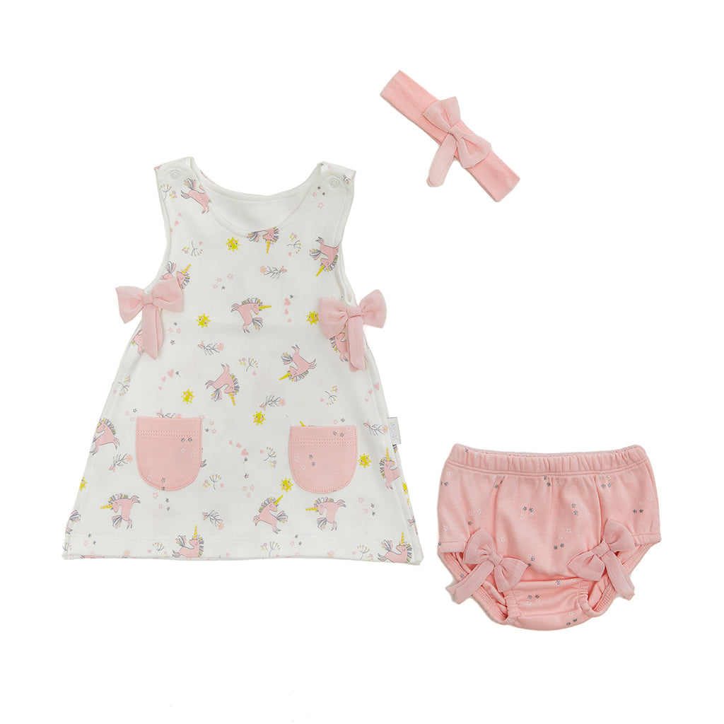 Andy Wawa-ECRU-BABY DRESS SET DRESS UNDERPANT BAND SET UNICORN-AC22714