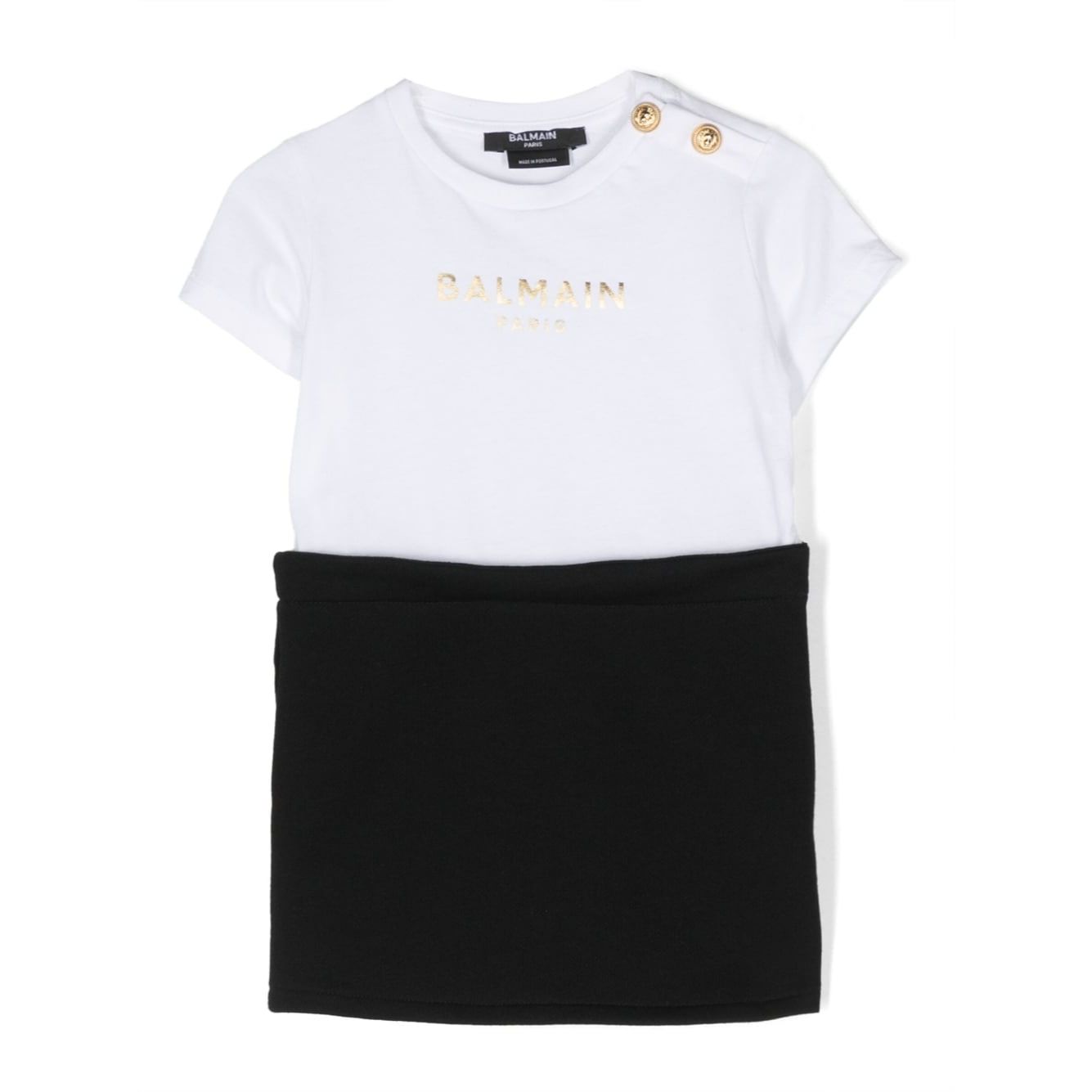 Balmain-SS Text Logo Dress-BS1061-Z0001-930OR-Blk Gold