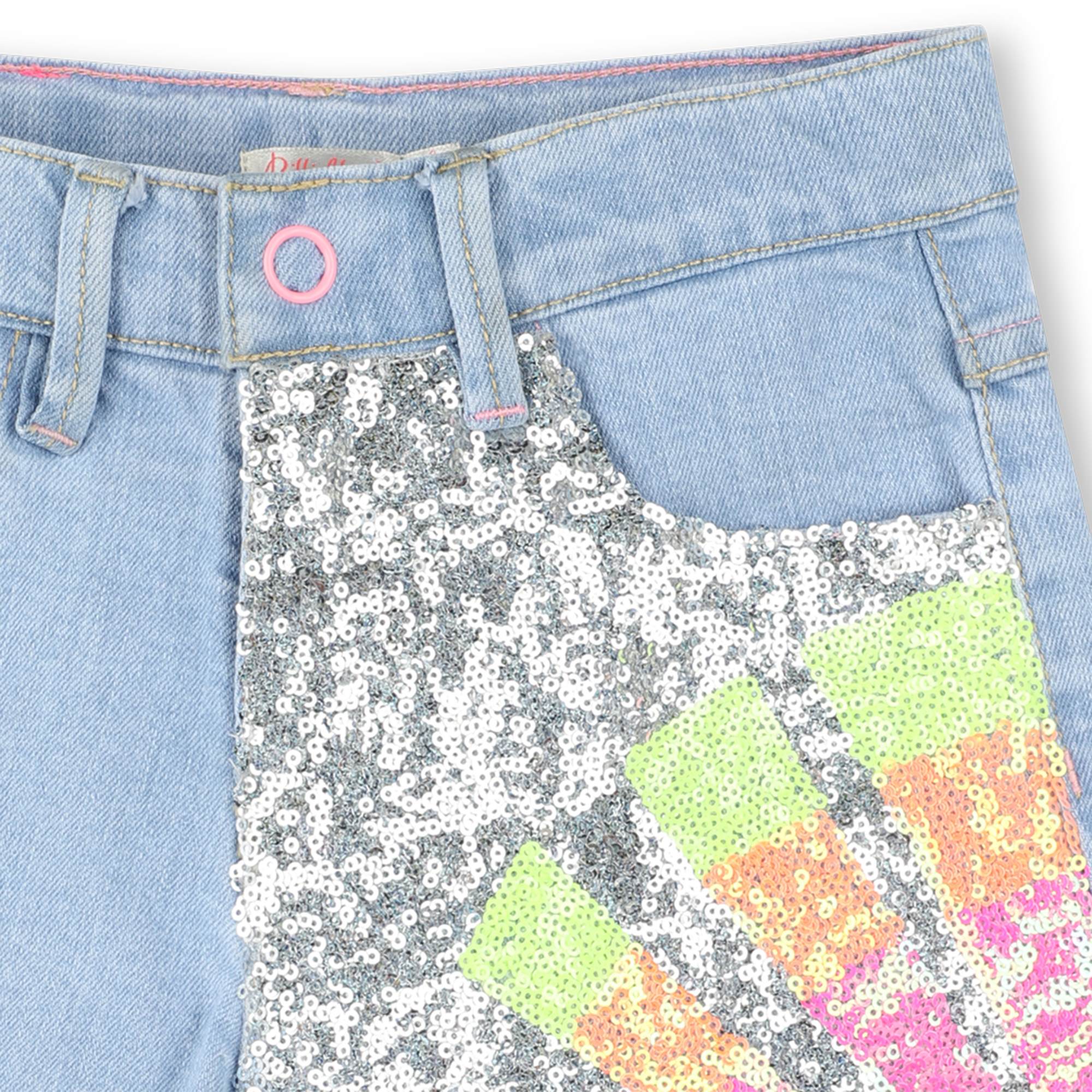 Blue Denim Half Sequined Pattern Shorts