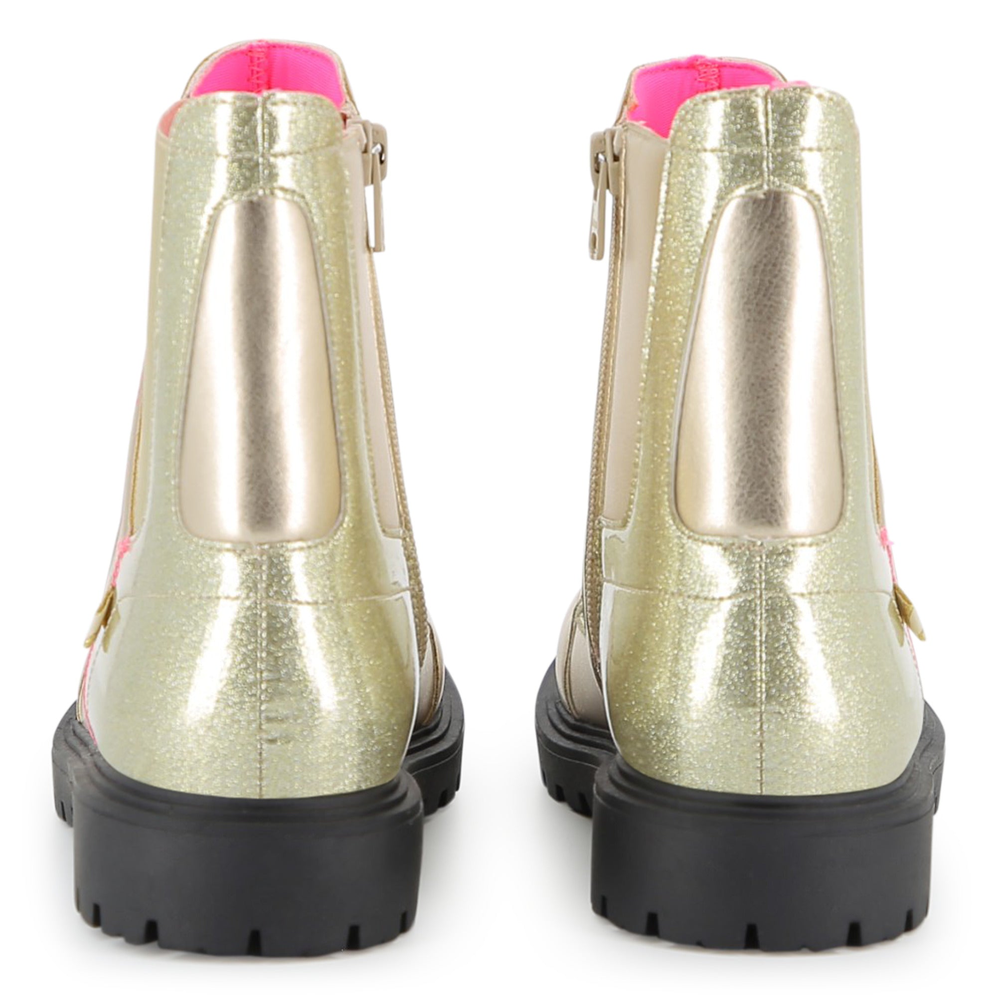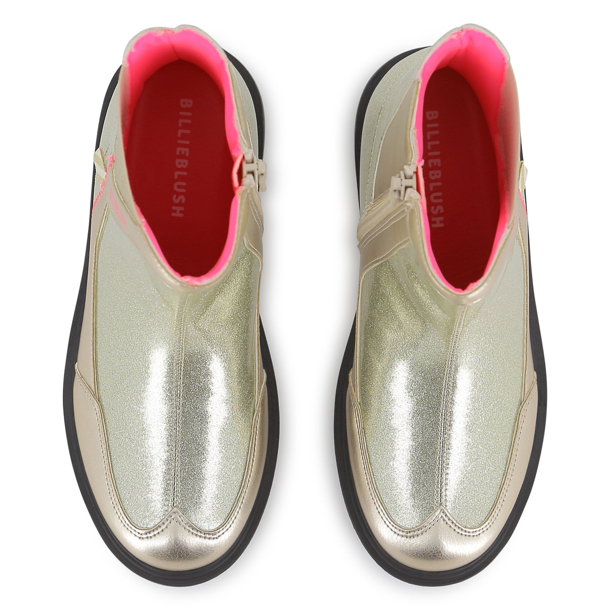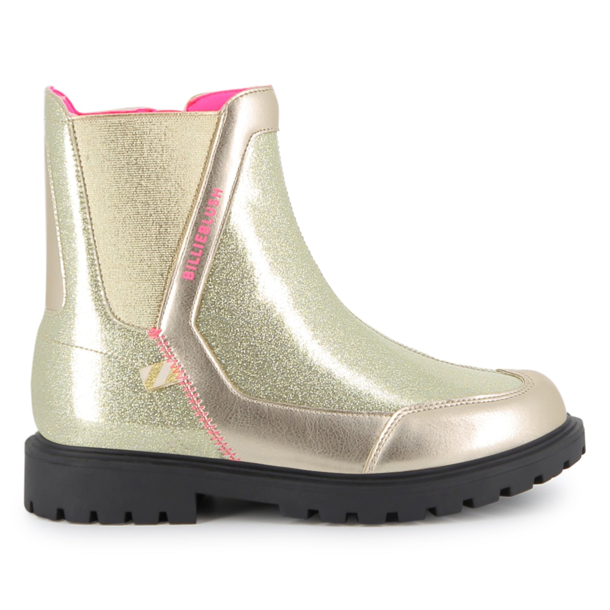 Opt for these BILLIEBLUSH ankle boots, a model that is both modern and comfortable. With their metallic faux and sparkling glitter, they bring glamour to every step. The shiny elastic on the outer side and the logo print on the side add a stylish touch. Featuring an interior zip closure, textile lining, and goatskin leather insole, these ankle boots offer comfort and support. The notched and outsole made of TPR guarantees a high grip for a safe walk.