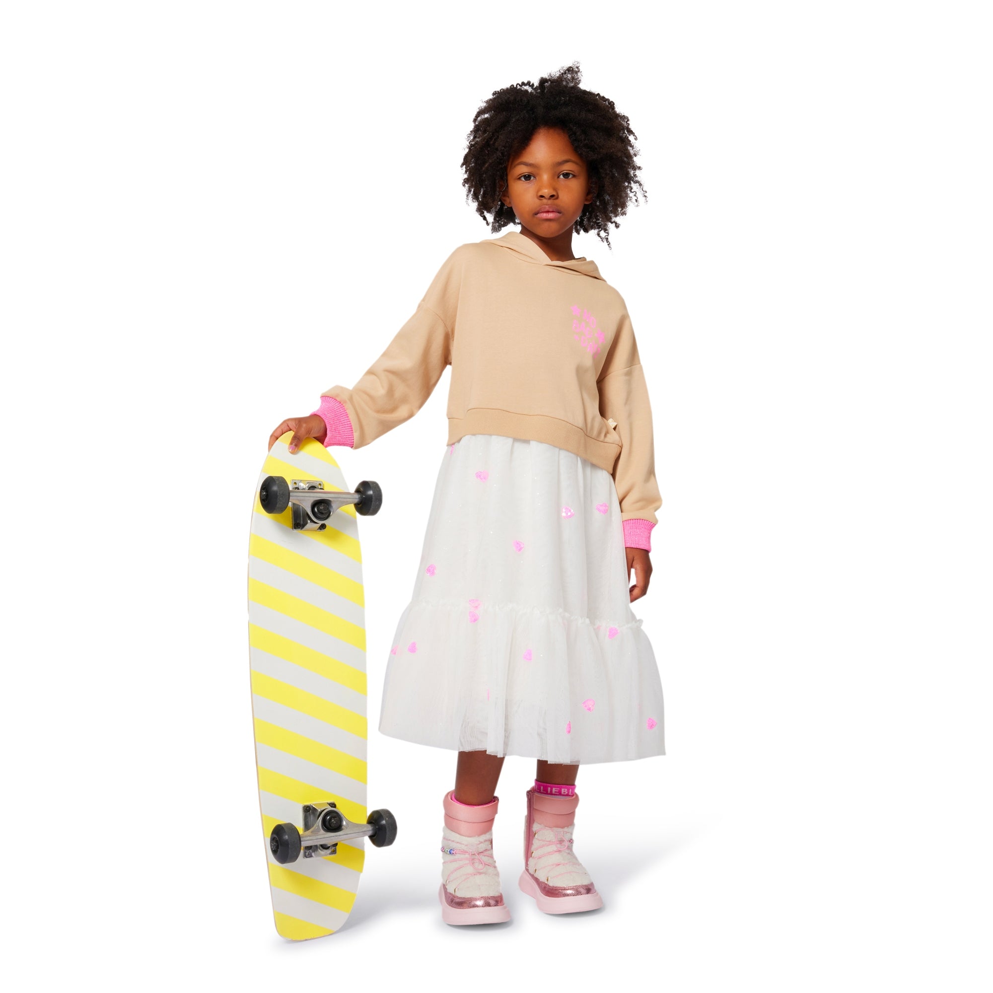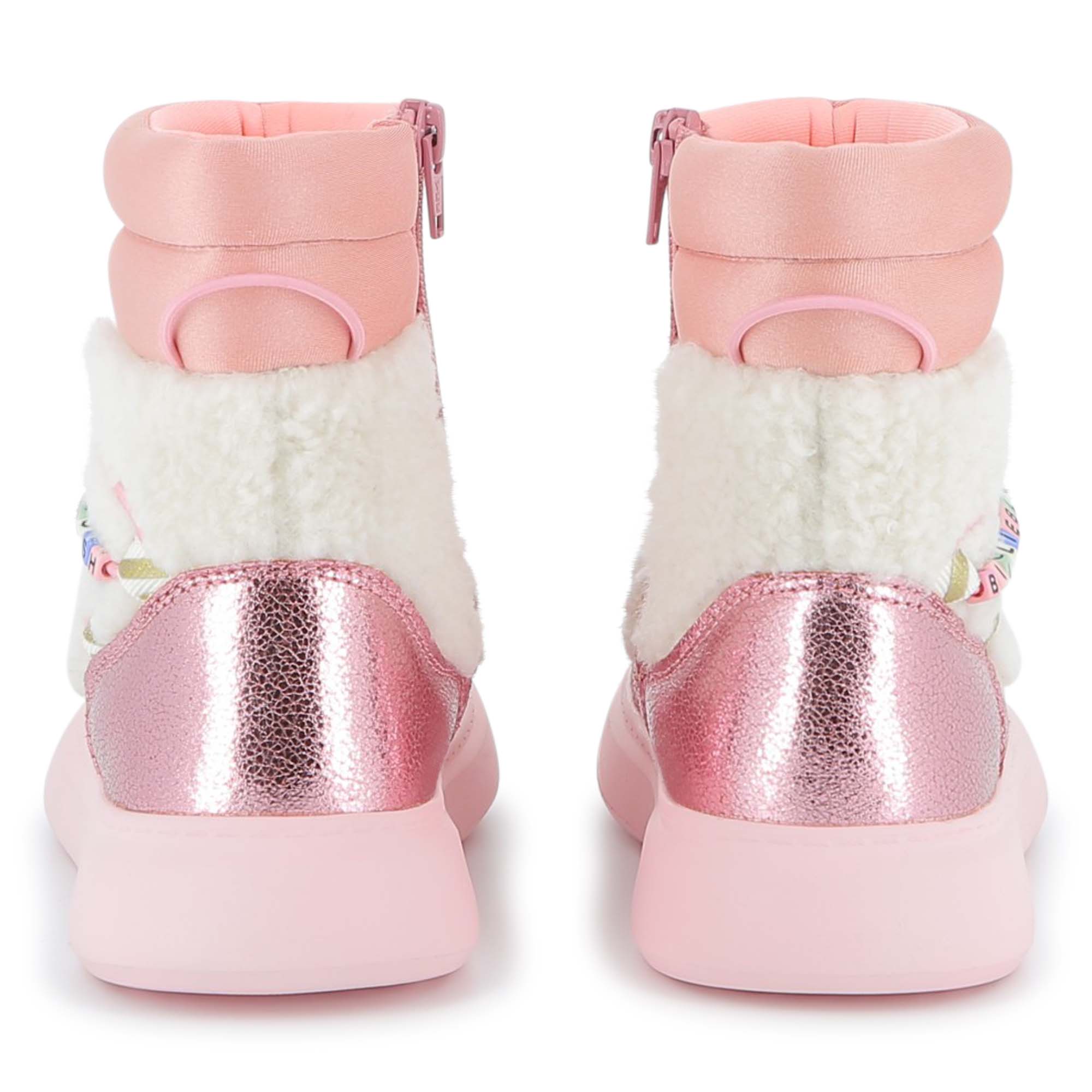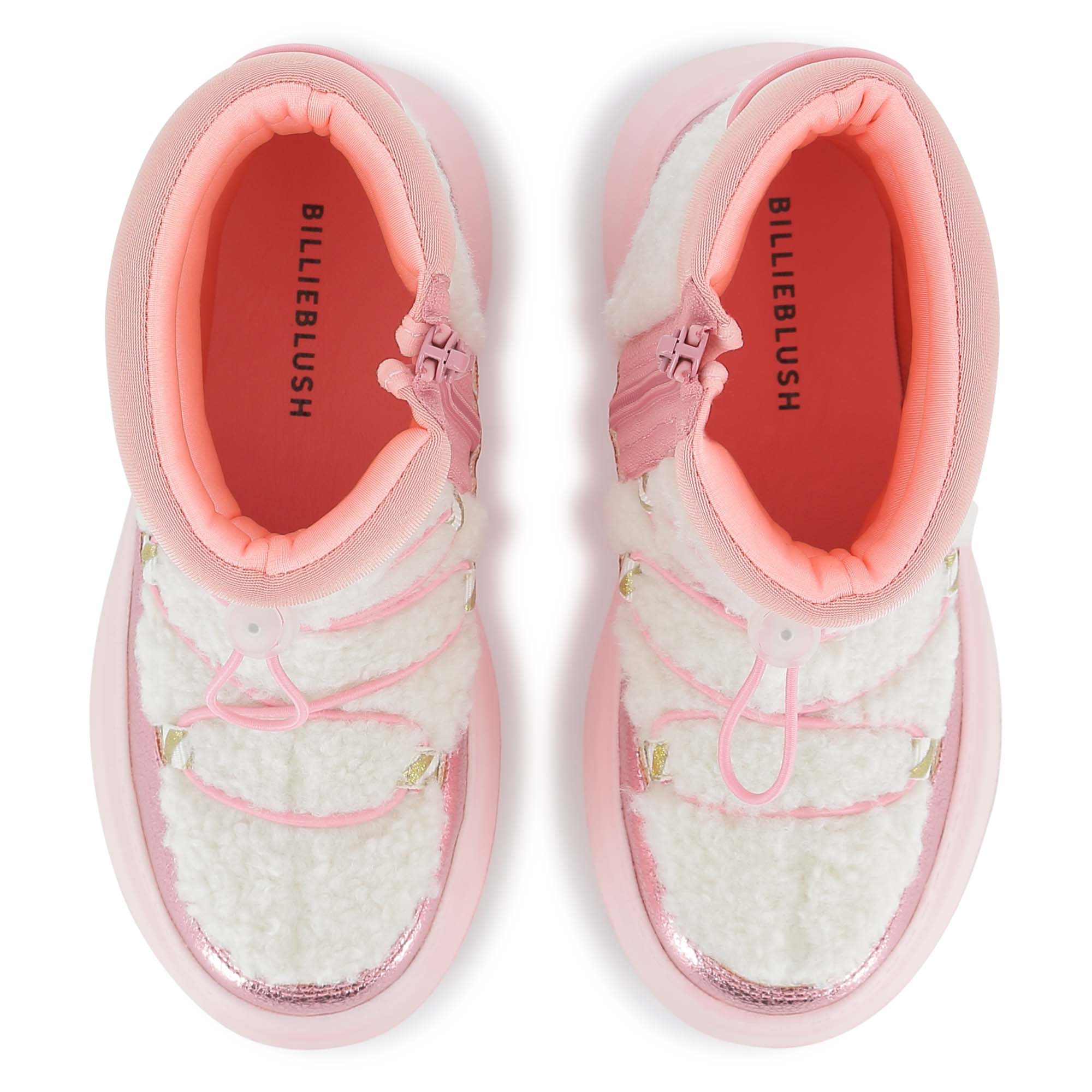 These BILLIEBLUSH après-ski shoes are a perfect choice for combining comfort and style. Made of fluffy fleece and metallic imitation, they guarantee warmth and shine. The interior zip closure and elasticated lace with cap and branded square beads add a touch of modern detail. The textile lining and goatskin leather insole ensure comfort, while the EVA outsole offers lightness and grip.