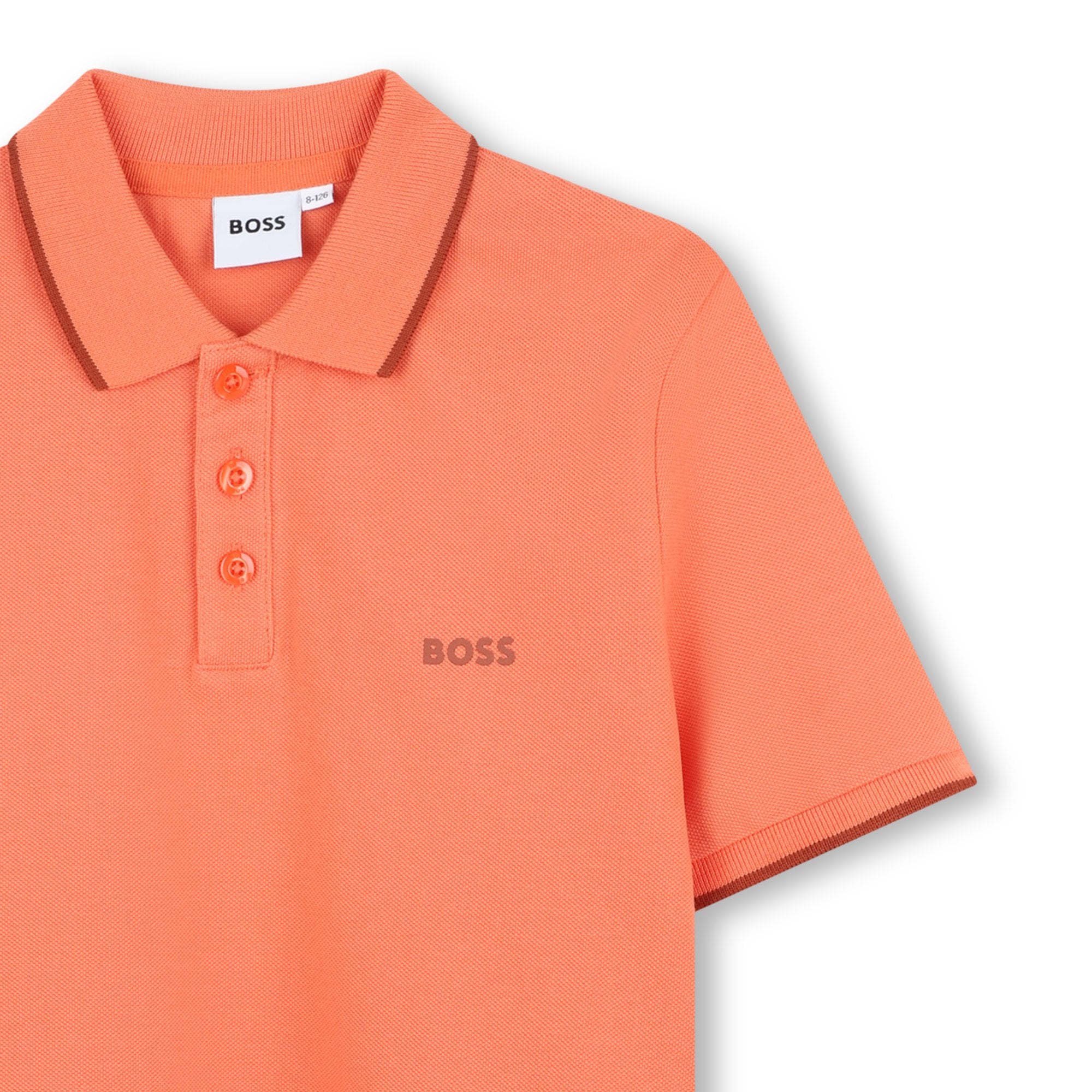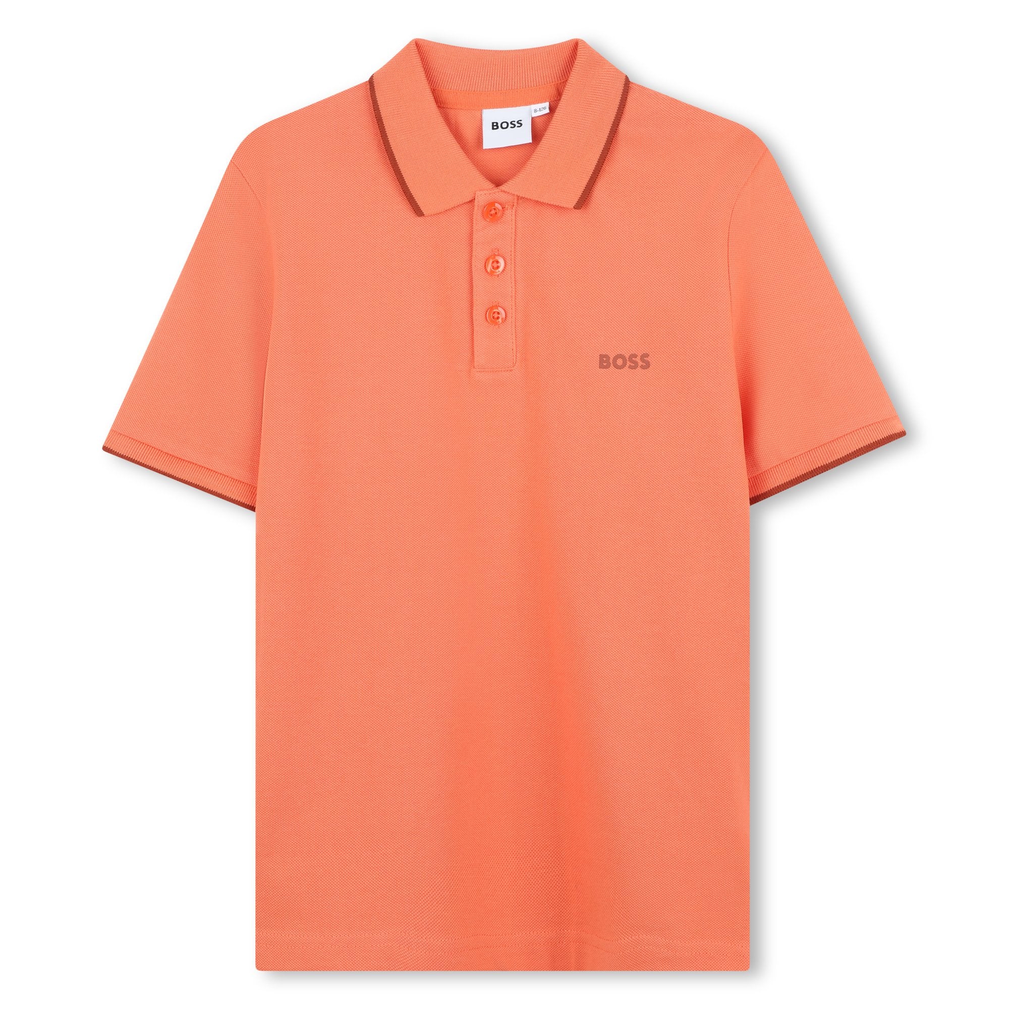 With its striking orange hue, this polo brings a lively pop of color to any wardrobe. The classic design, featuring a structured collar and button placket, ensures a polished yet laid-back look. The BOSS logo subtly embroidered on the chest adds a touch of refinement.