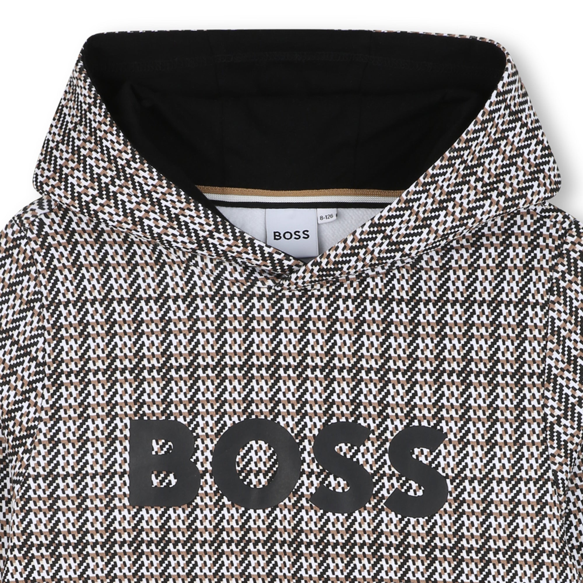 Black Hooded Sweat Top Brown Pattern
