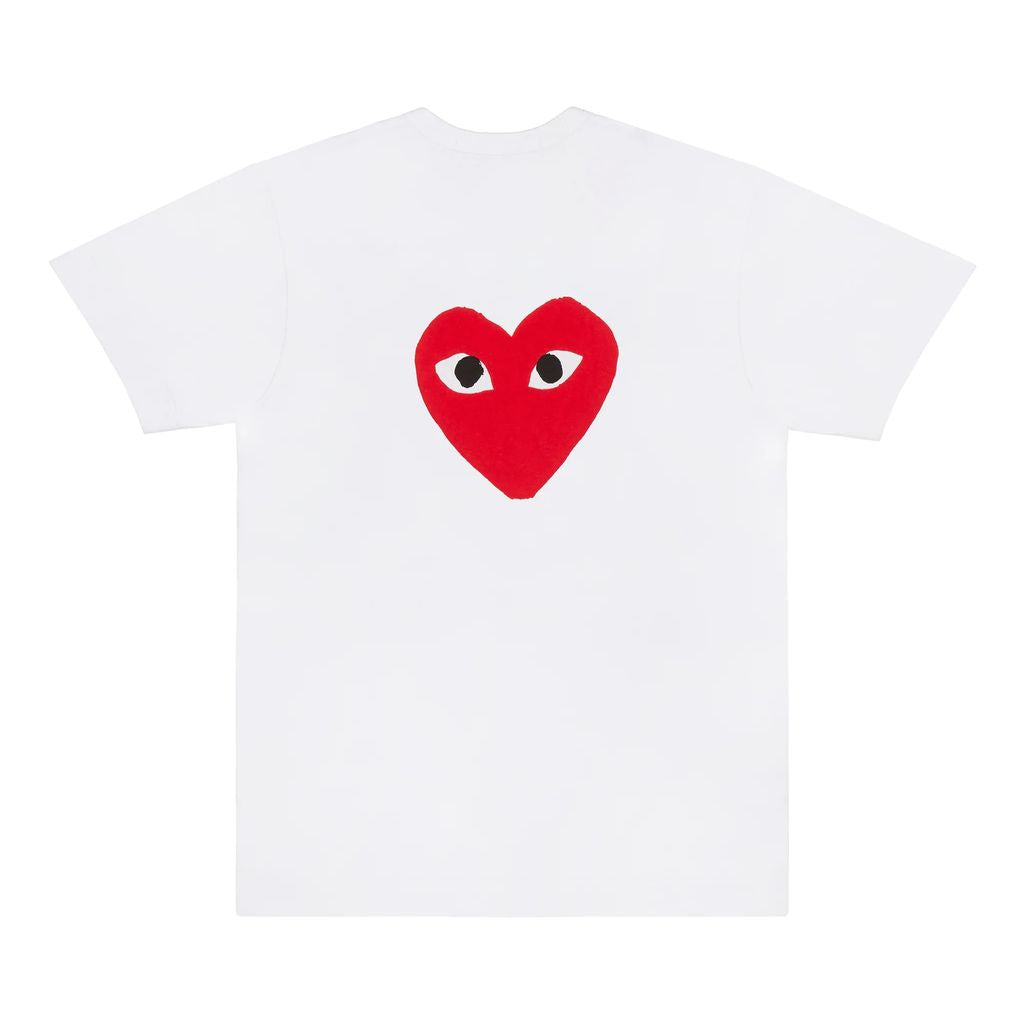 A standout staple with graphic charm, this white cotton tee features twin heart motifs at the chest—one bold and one cheeky with eyes—for a playful twist. The back mirrors the design for full-circle impact. Cut from soft jersey with a classic crew neckline, it’s perfect for layering or solo wear across seasons.