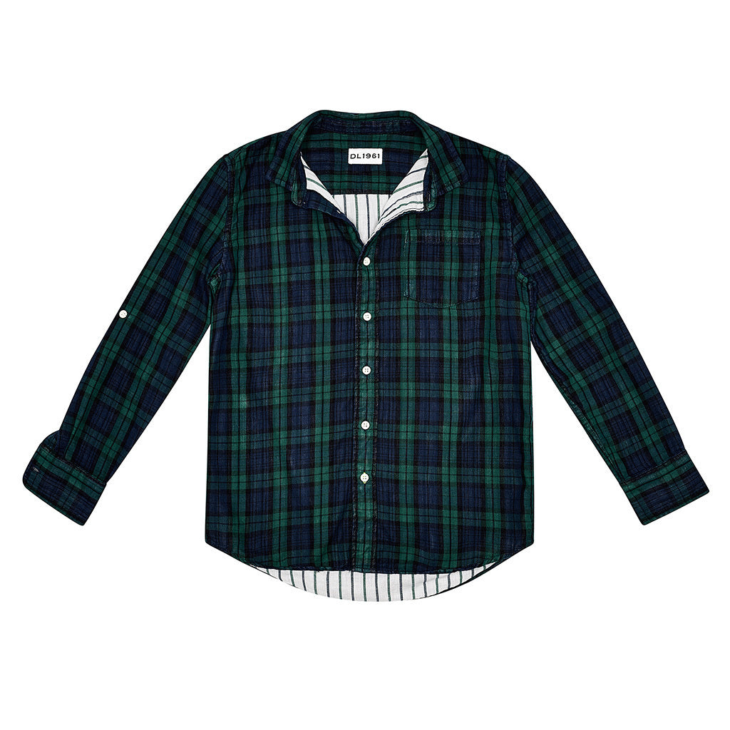 DL1961-FW17-TOPS-LS SHIRT-ASH-6534-GREEN DOUBLE FACE PLAID