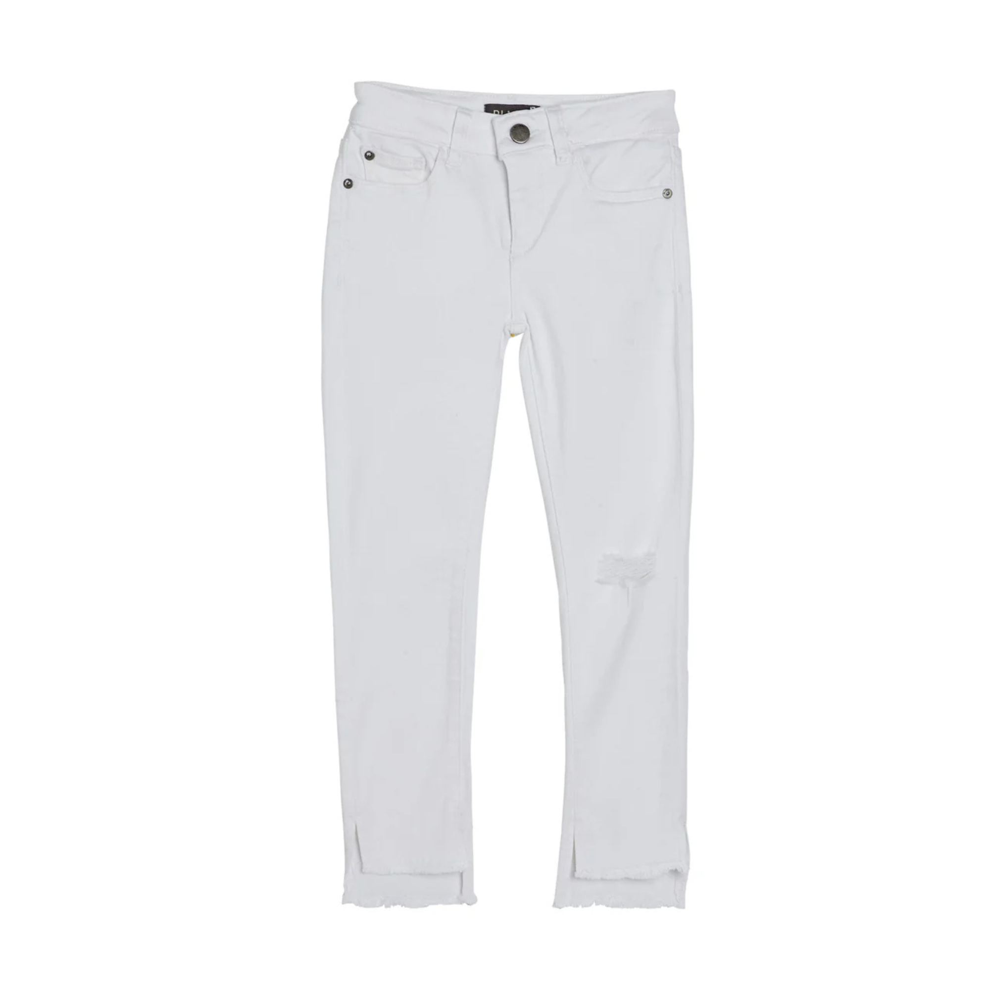 - Slim-fit white jeans with tapered leg