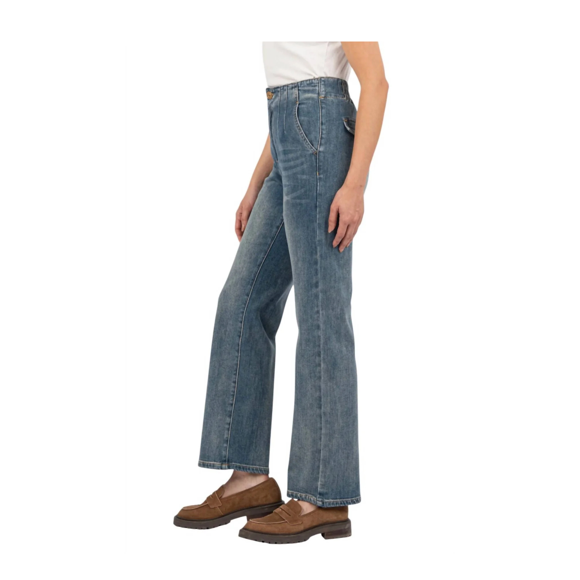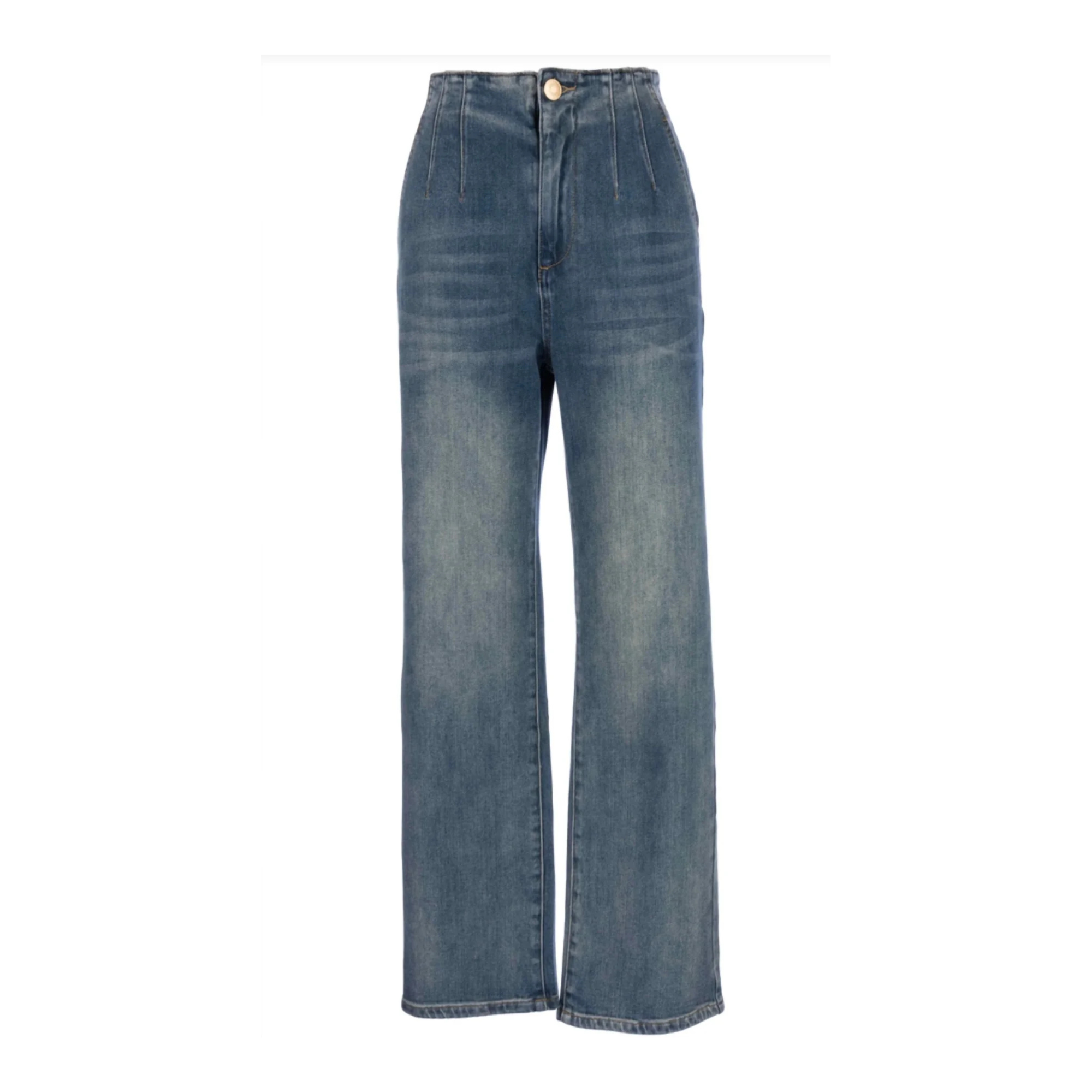 A modern nod to vintage denim, these high-waisted wide-leg jeans offer effortless style with everyday comfort. Designed with a flattering silhouette and subtle seam detailing, they feature a gently faded wash and flared hem for a relaxed, retro-inspired finish. Ideal for pairing with tucked-in tops or layered looks across seasons.