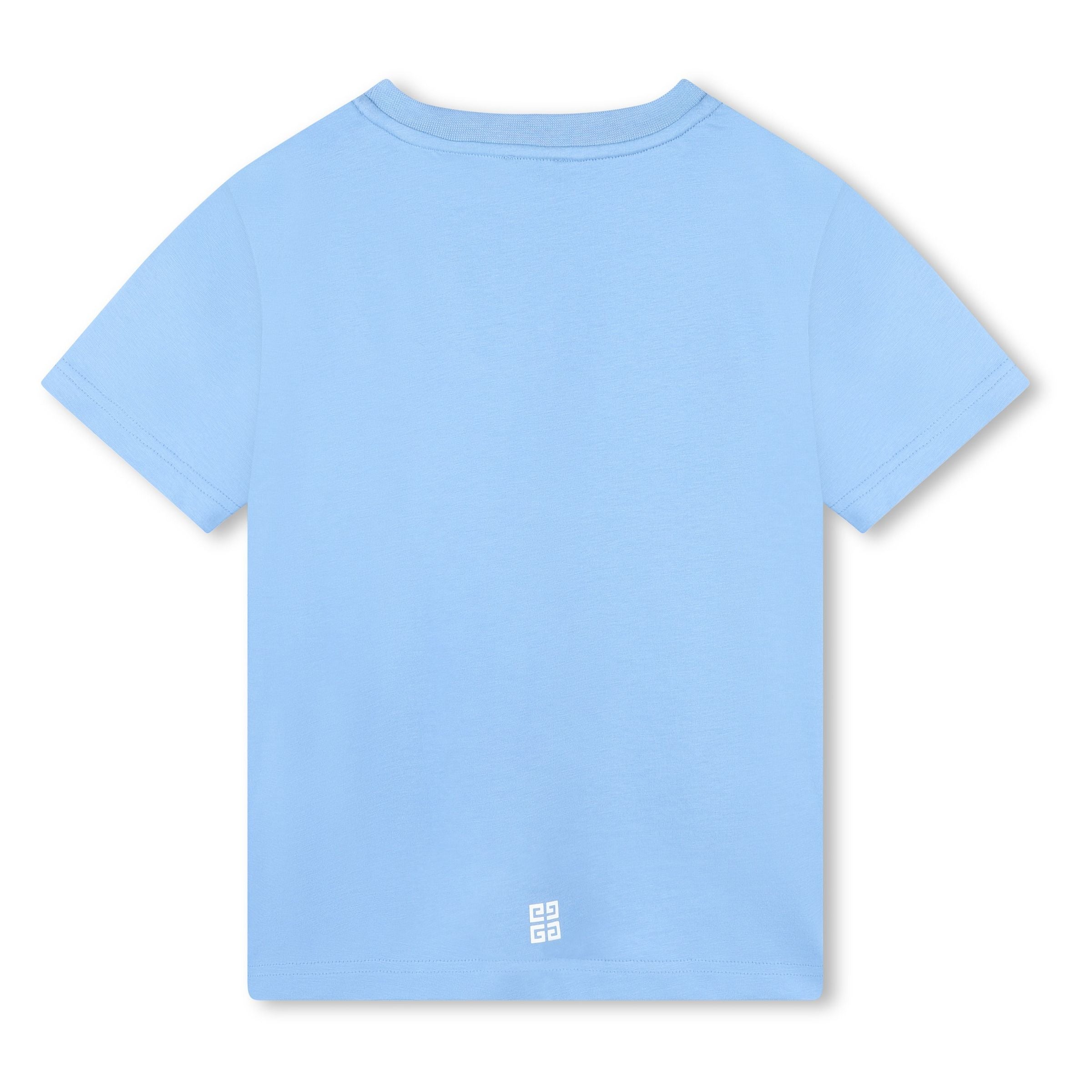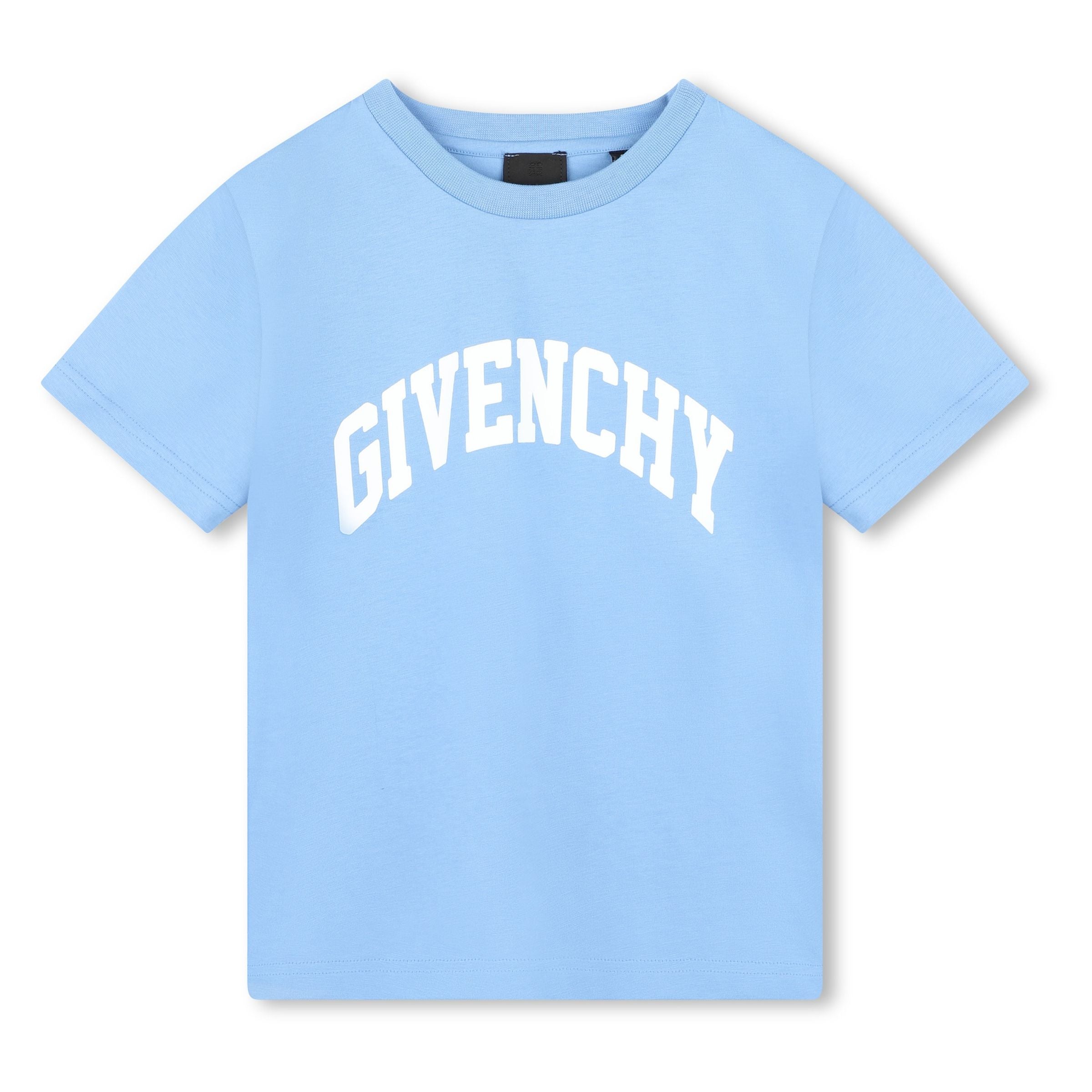 Introducing the Blue Logo Stamp Cotton T-Shirt by Givenchy, a perfect blend of style and comfort for young boys Crafted from soft cotton in a refreshing light blue shade, this T-shirt offers a versatile addition to any young boy’s wardrobe.