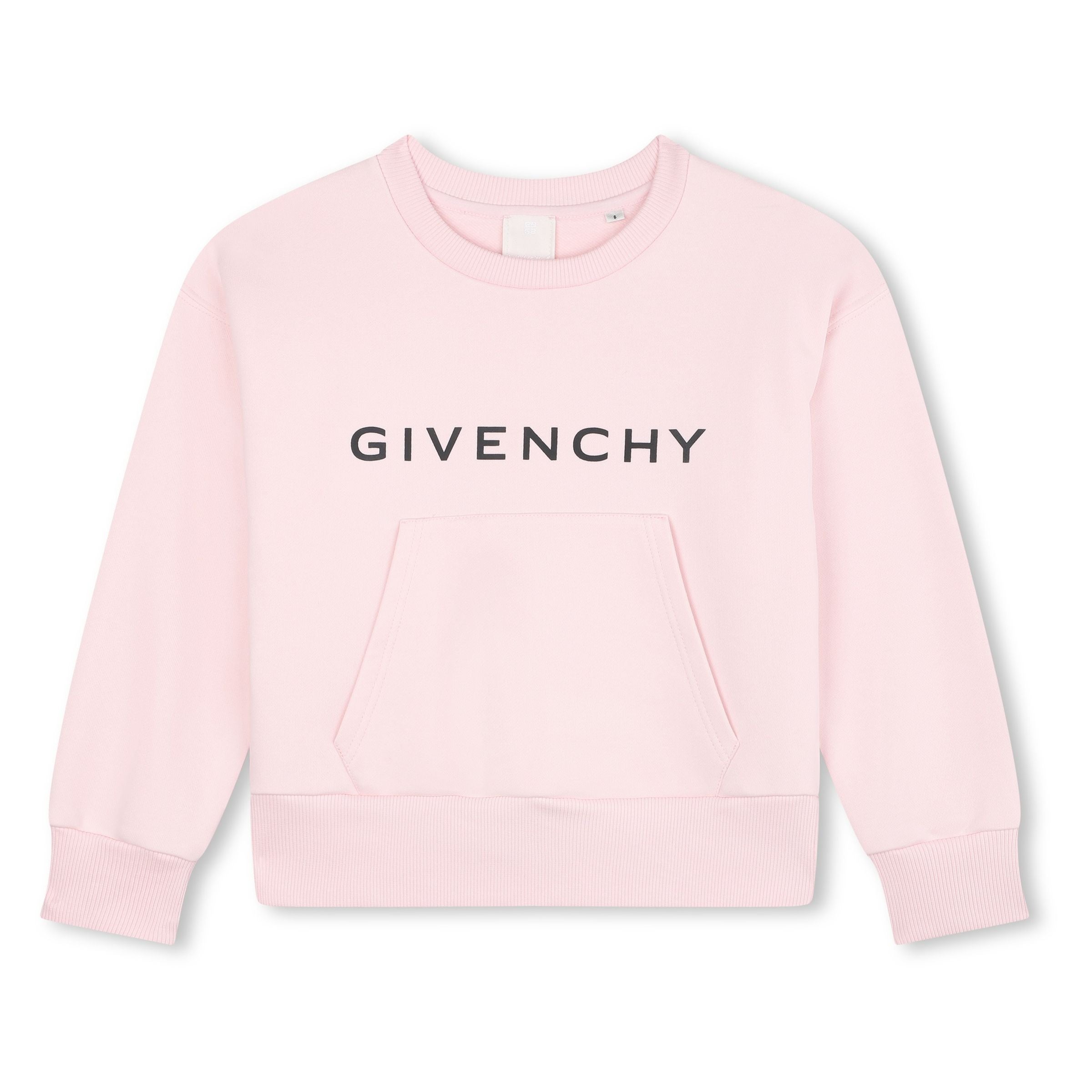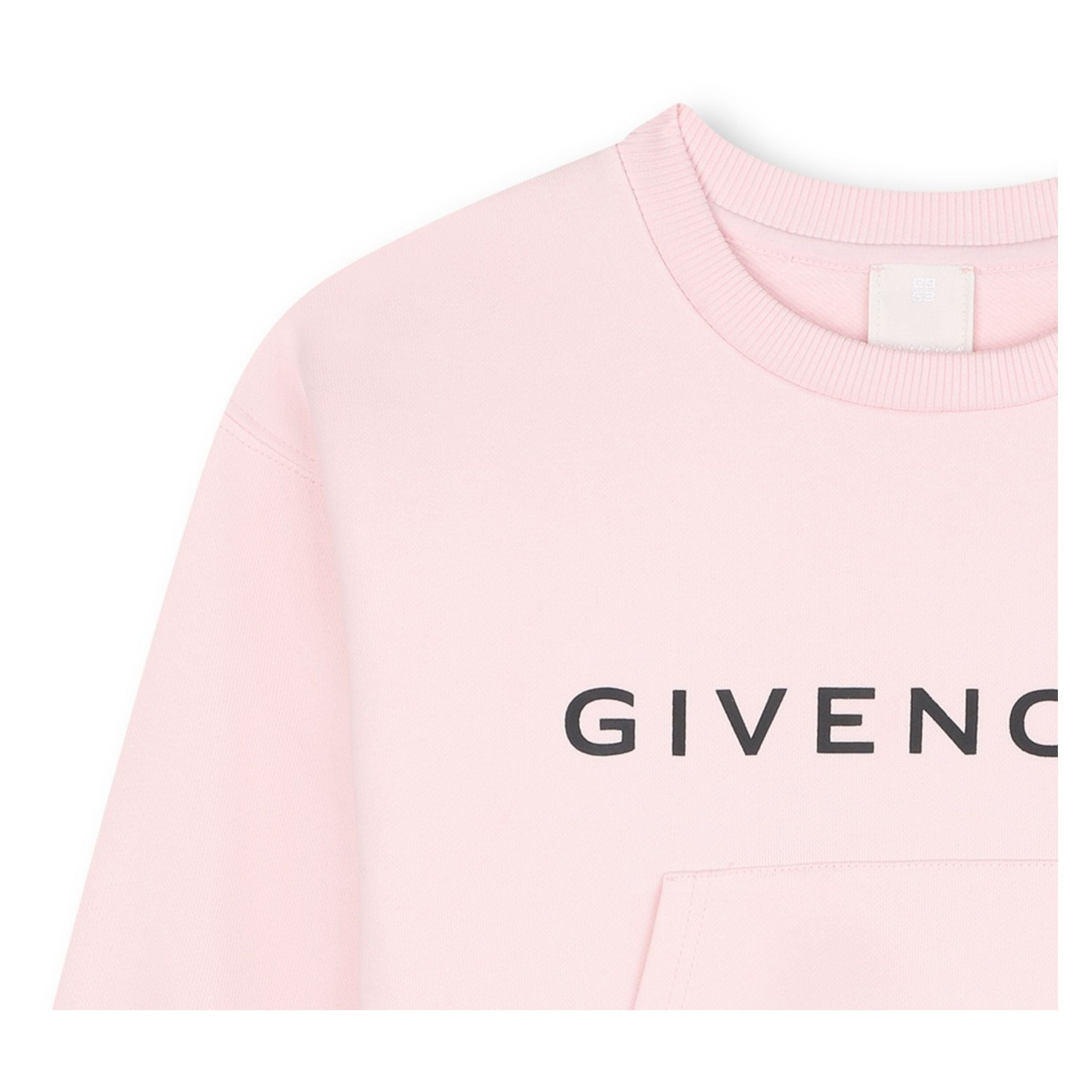 - Light pink cotton base with bold black "GIVENCHY" chest print