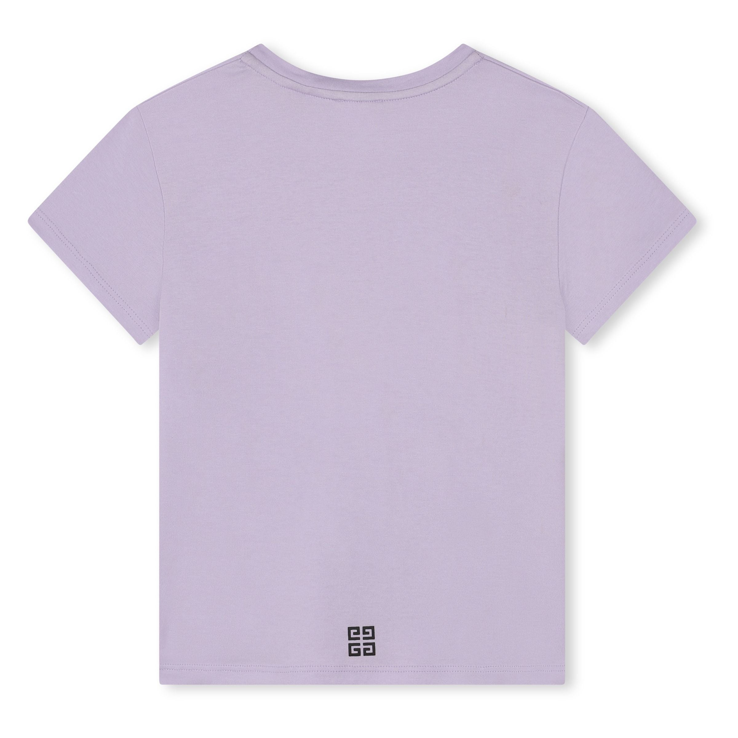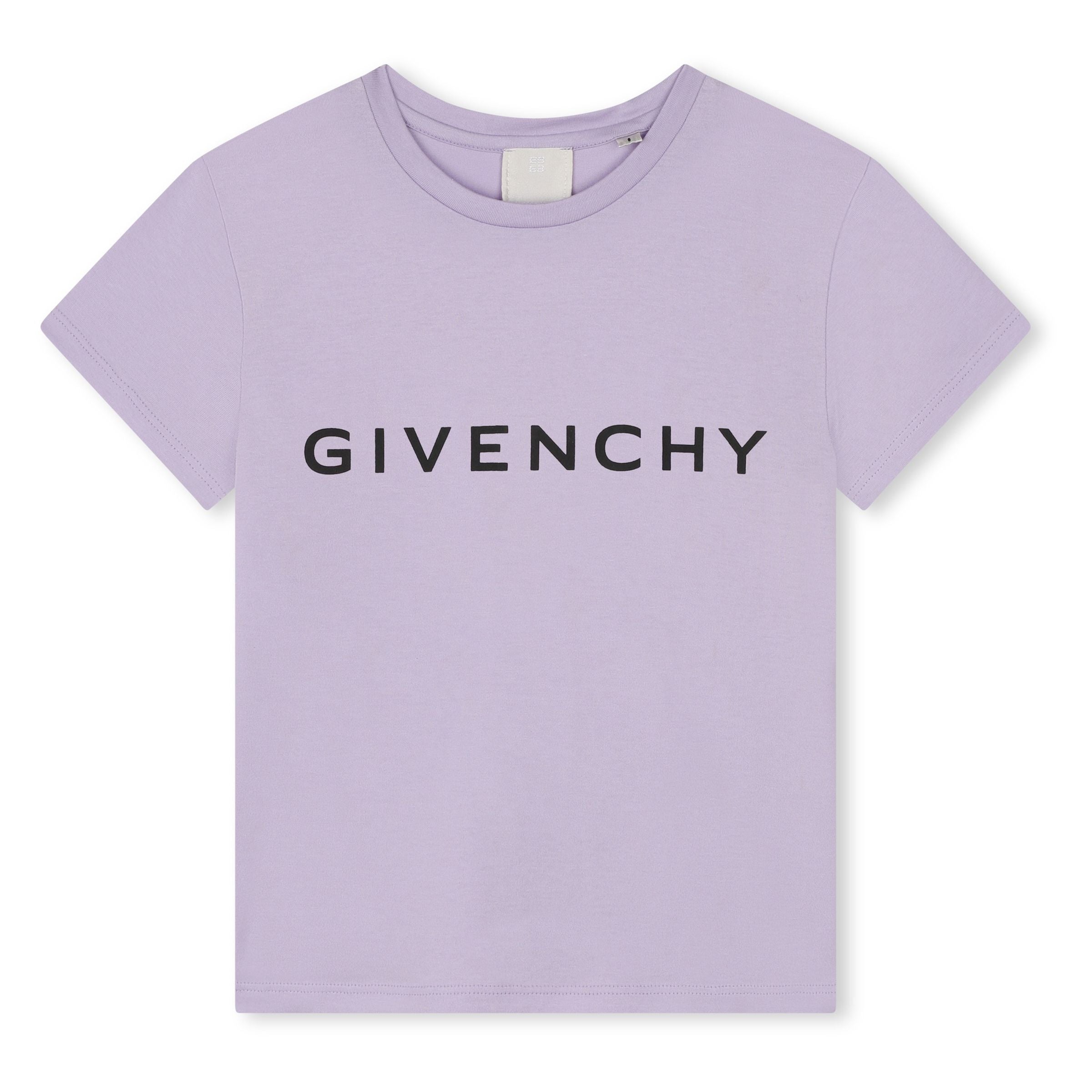 - Classic purple cotton base with bold black "GIVENCHY" print
