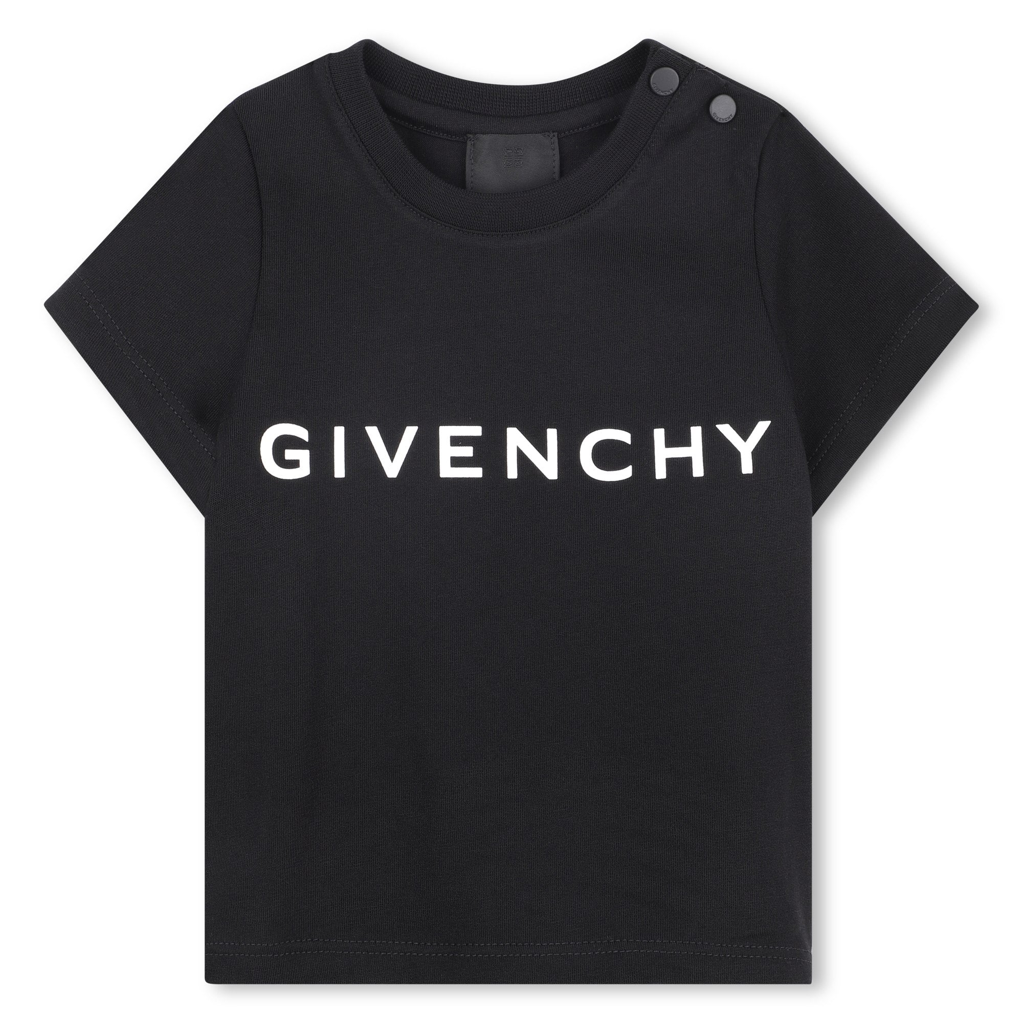 Givenchy’s SS25 collection showcases its signature minimalist aesthetic with this sleek black cotton T-shirt. A crisp white logo print on the front adds effortless sophistication, while the soft jersey texture ensures comfort.