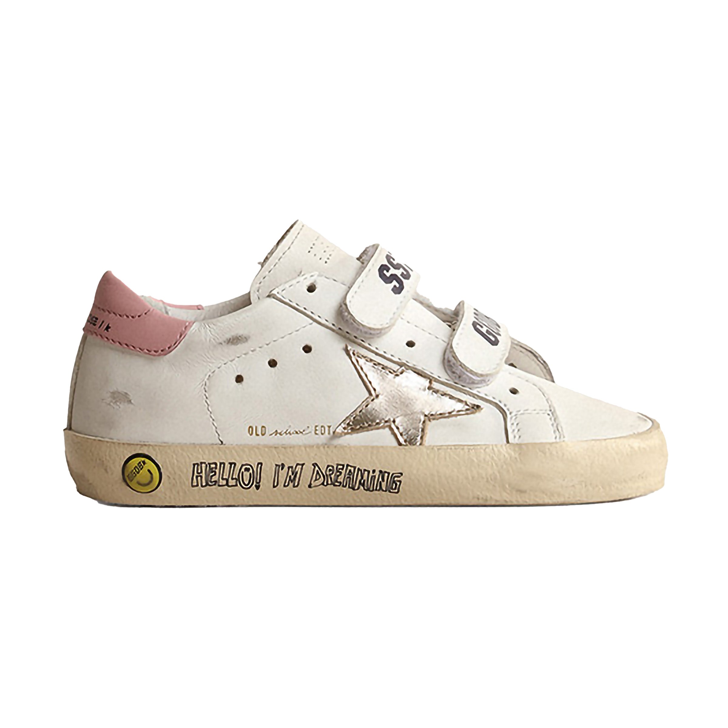 Golden Goose-GJF00111.F004219.11399-WHITE/PLATINUM/ANTIQUE PINK-OLD SCHOOL LEATHER UPPER STRIPES AND HEEL LAMINATED STAR SIGNATURE FOXING