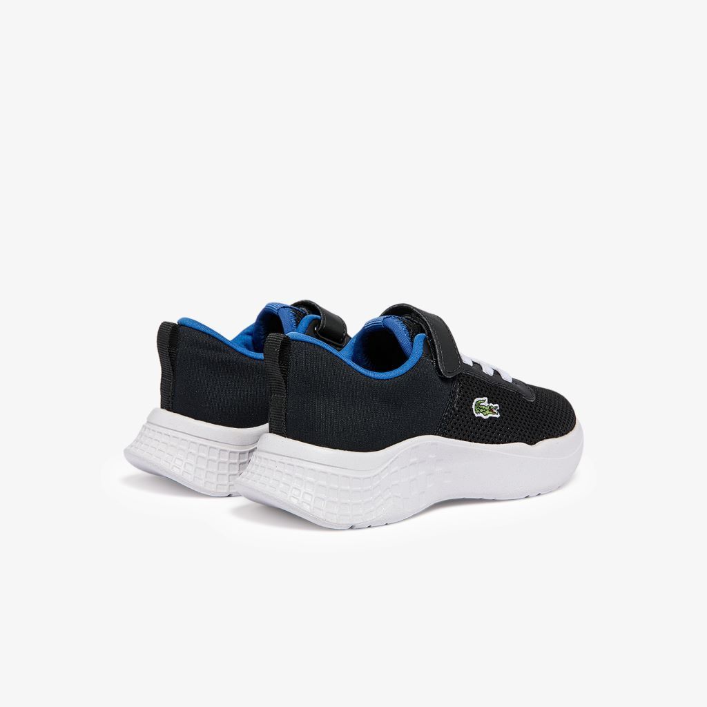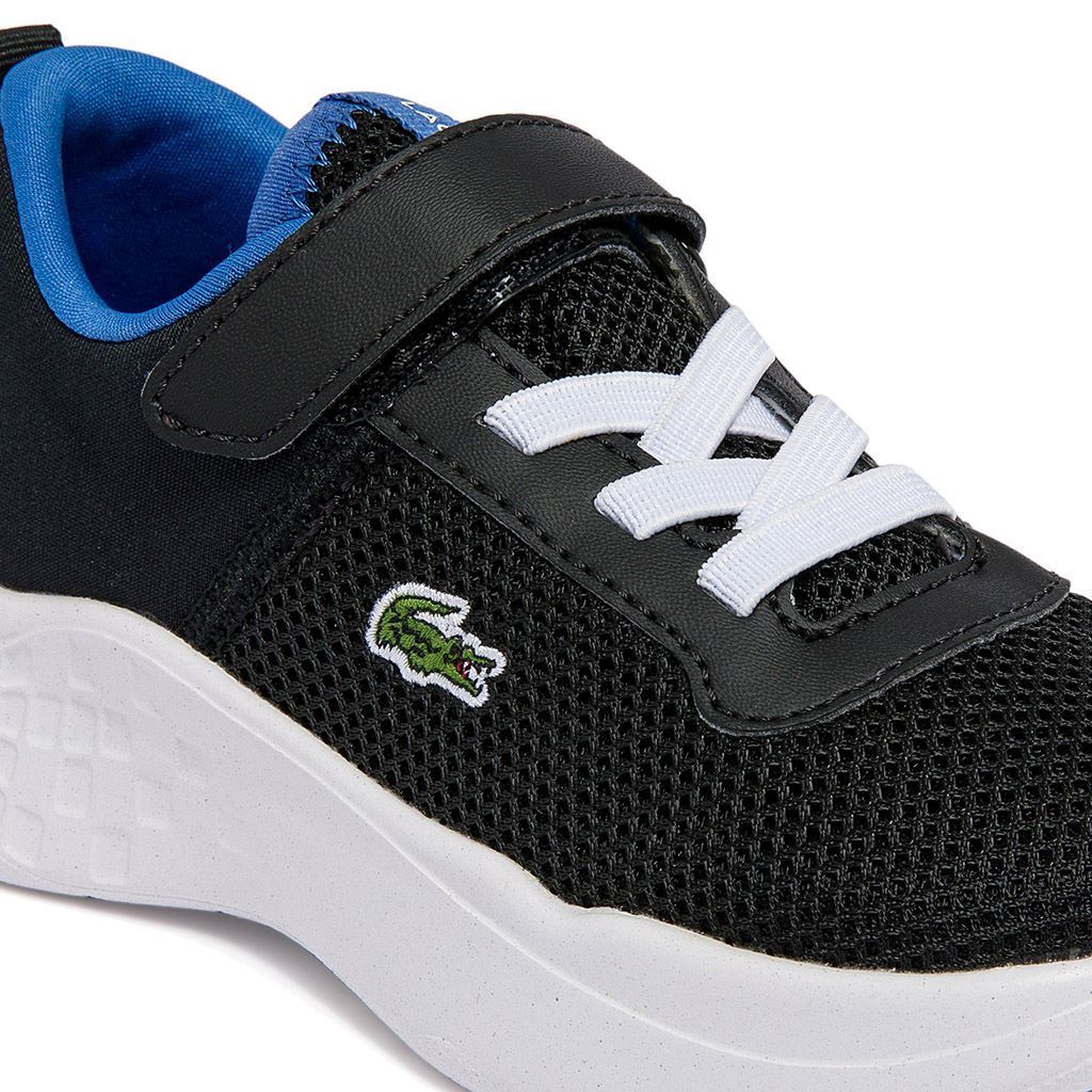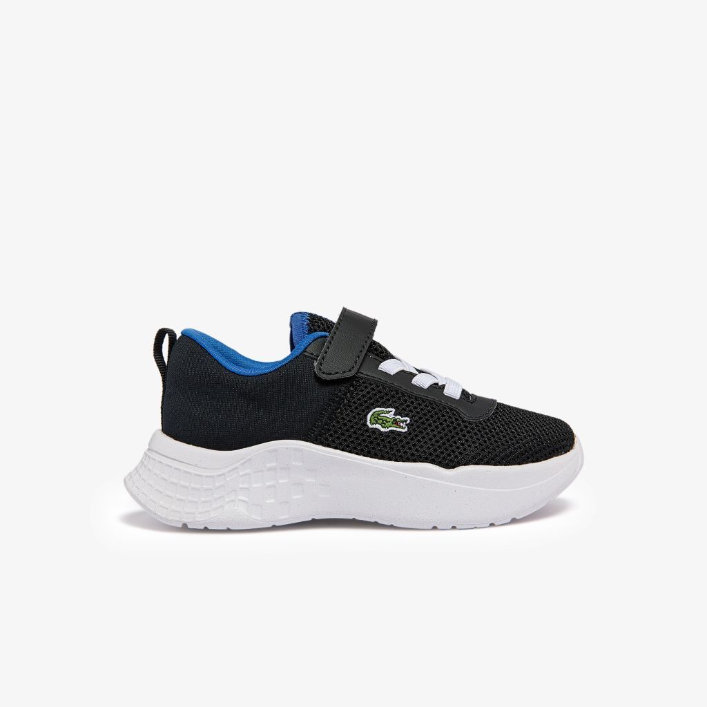 Black Court Drive velcro lace sneakers for baby boys from Lacoste. The Court-Drive provides the perfect sneaker for sporty juniors on the go. With synthetic and knit uppers, the style features a mesh lining for enhanced breathability. The signature look is achieved with careful branding, including a Lacoste woven label on the tongue and a green embroidered crocodile on the quarter. The elegantly crafted design makes it the ideal lightweight shoe for all-day adventures.