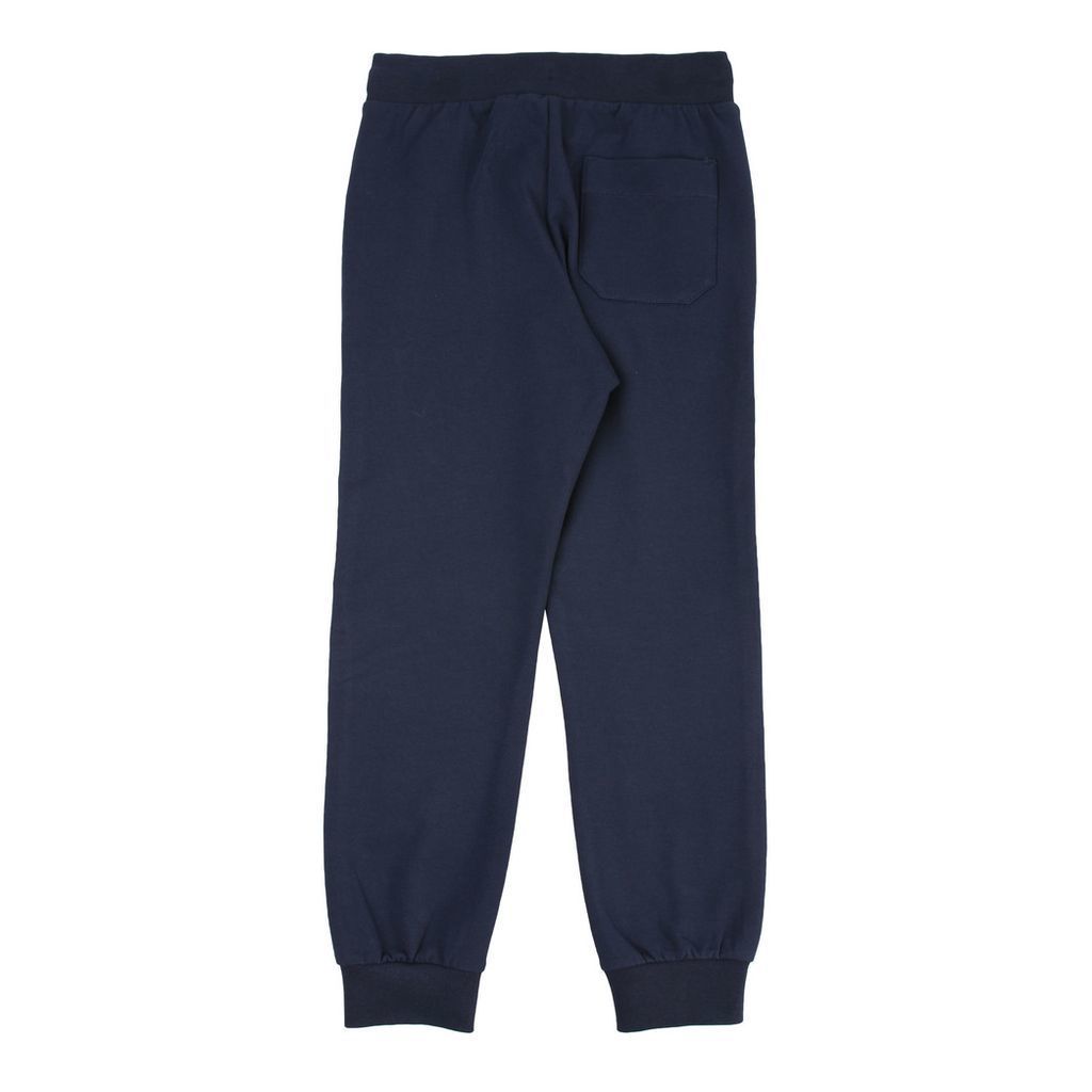 A staple for movement and downtime, these navy blue joggers blend softness with utility. Finished with ribbed cuffs and zip pockets, they offer a streamlined silhouette with everyday ease.