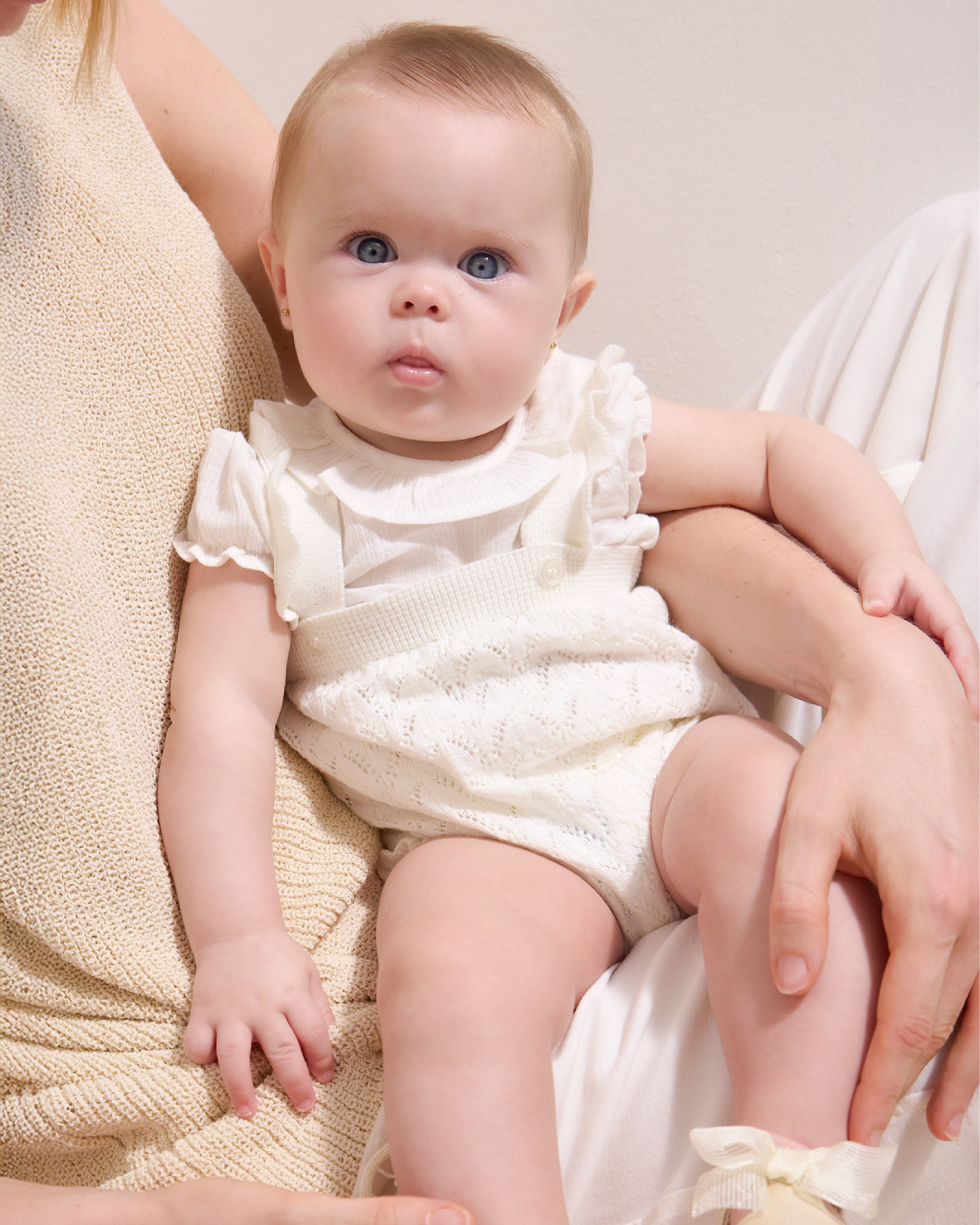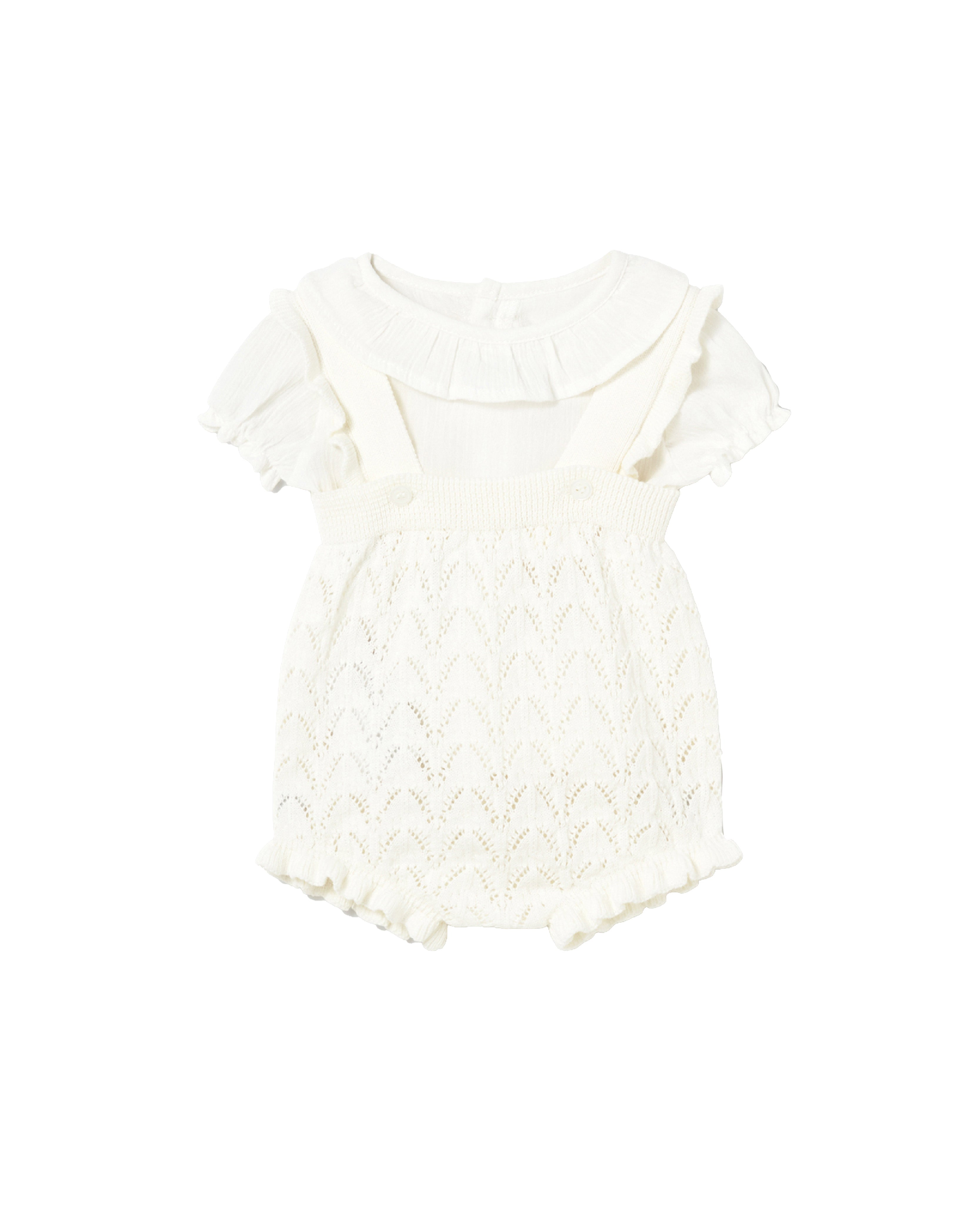 White Knitted Baby Romper with Puff Sleeves