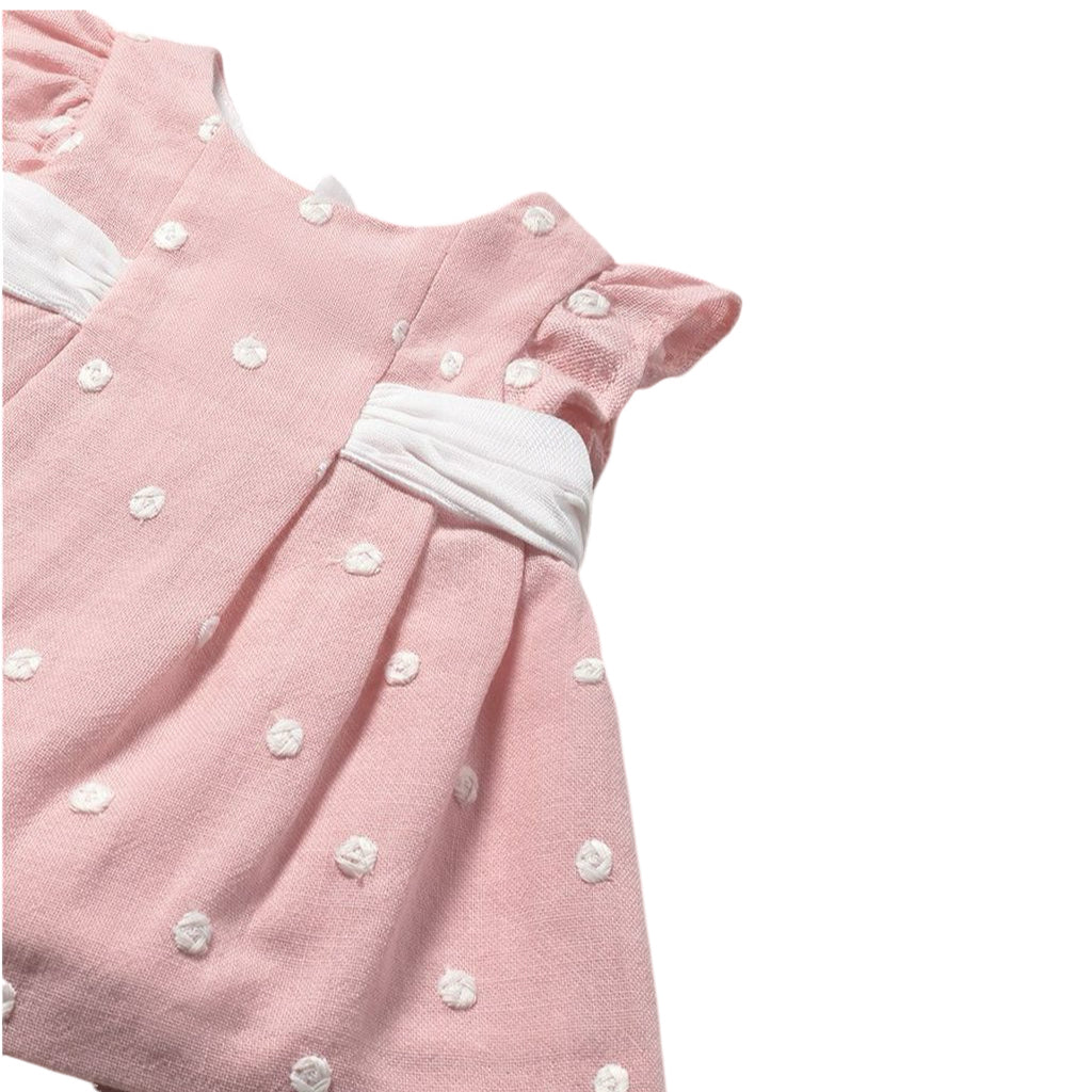 Delicate and delightful, the baby rose polka dot dress is a picture-perfect choice for warm days and sweet occasions. Made from soft, breathable fabric in a gentle rose pink tone, it features an allover polka dot pattern that adds a touch of timeless charm.