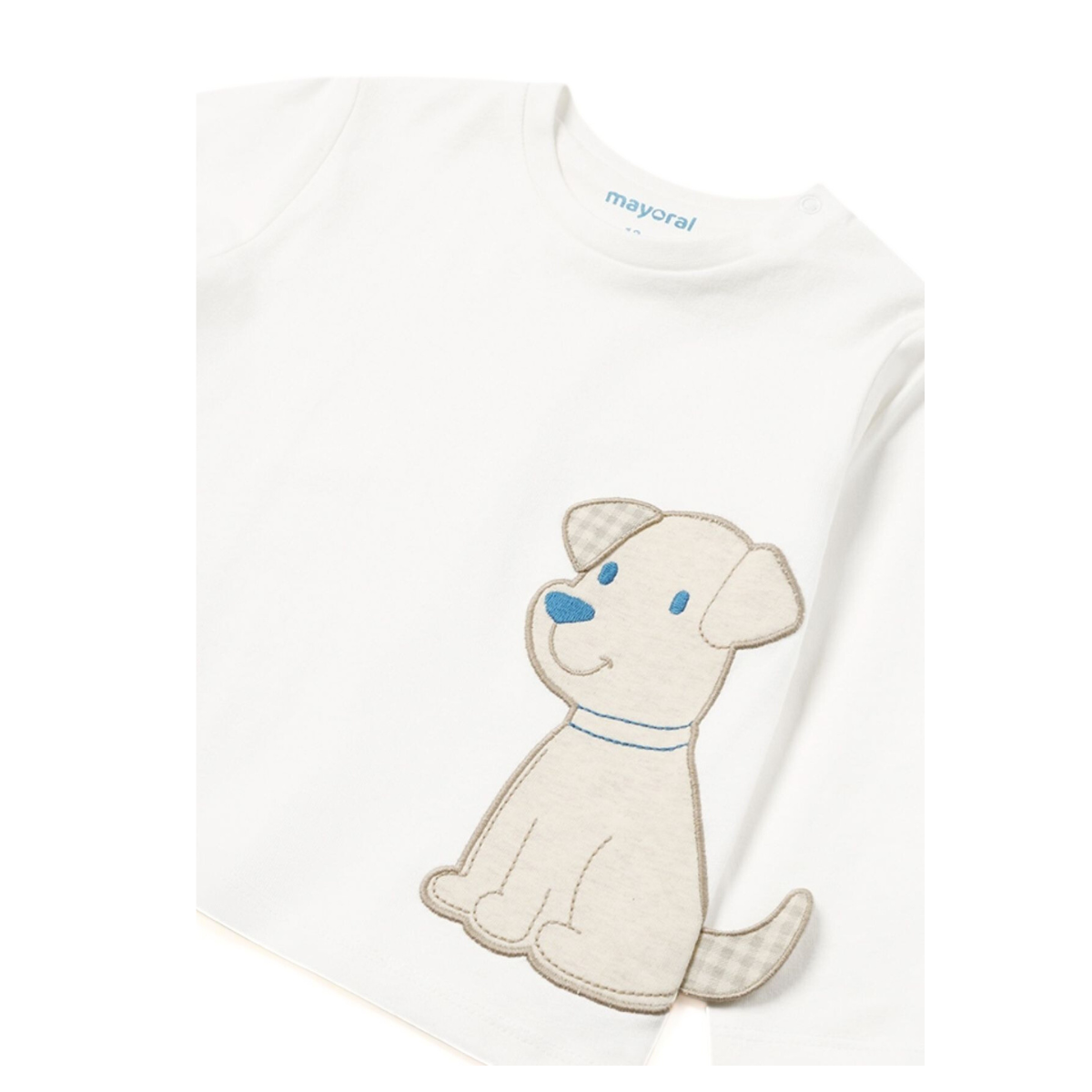Make everyday dressing fun and engaging with the Mayoral Baby Interactive Puppy T-Shirt. Designed with little ones in mind, this adorable long-sleeve tee features a sweet puppy graphic that includes interactive details to spark curiosity and play.