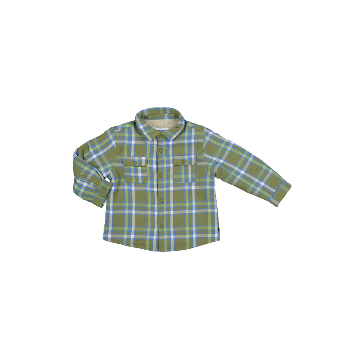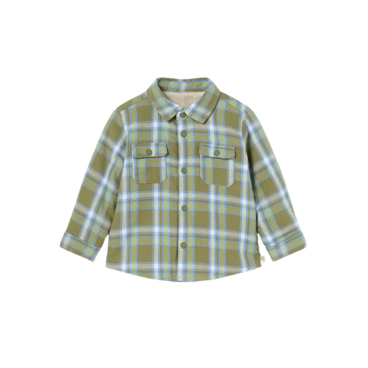 Green Plaid Shirt with Staples and Fur Lining is designed for cooler days, this cozy overshirt doubles as a lightweight jacket.