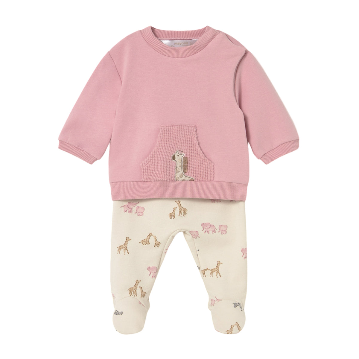 Two-piece set for newborn girl including a long sleeve t-shirt and matching leggings.