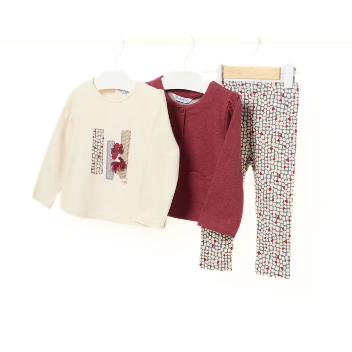 Brighten up baby's wardrobe with the 3 Piece Set in Tomato Heather — a cozy and coordinated outfit perfect for everyday comfort.