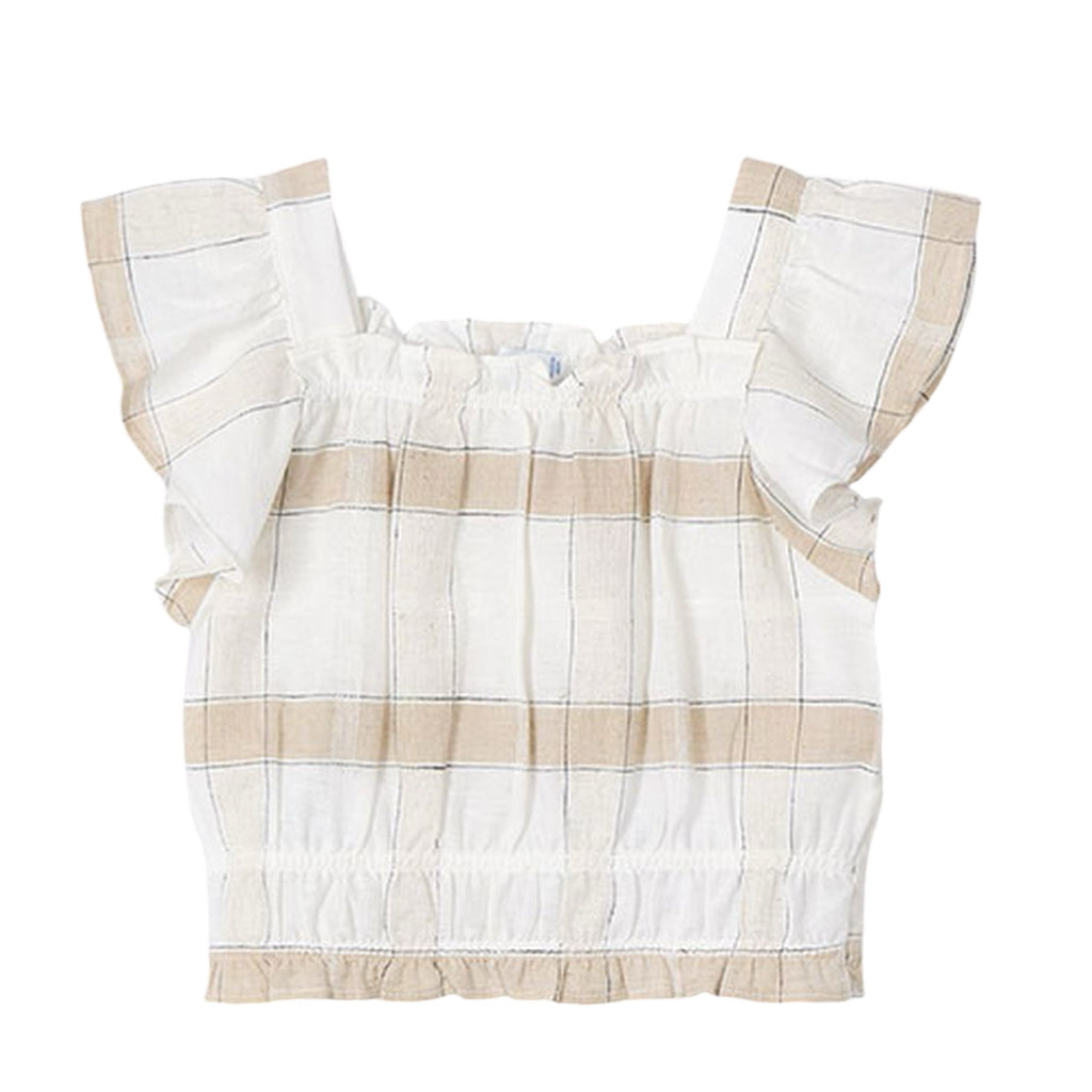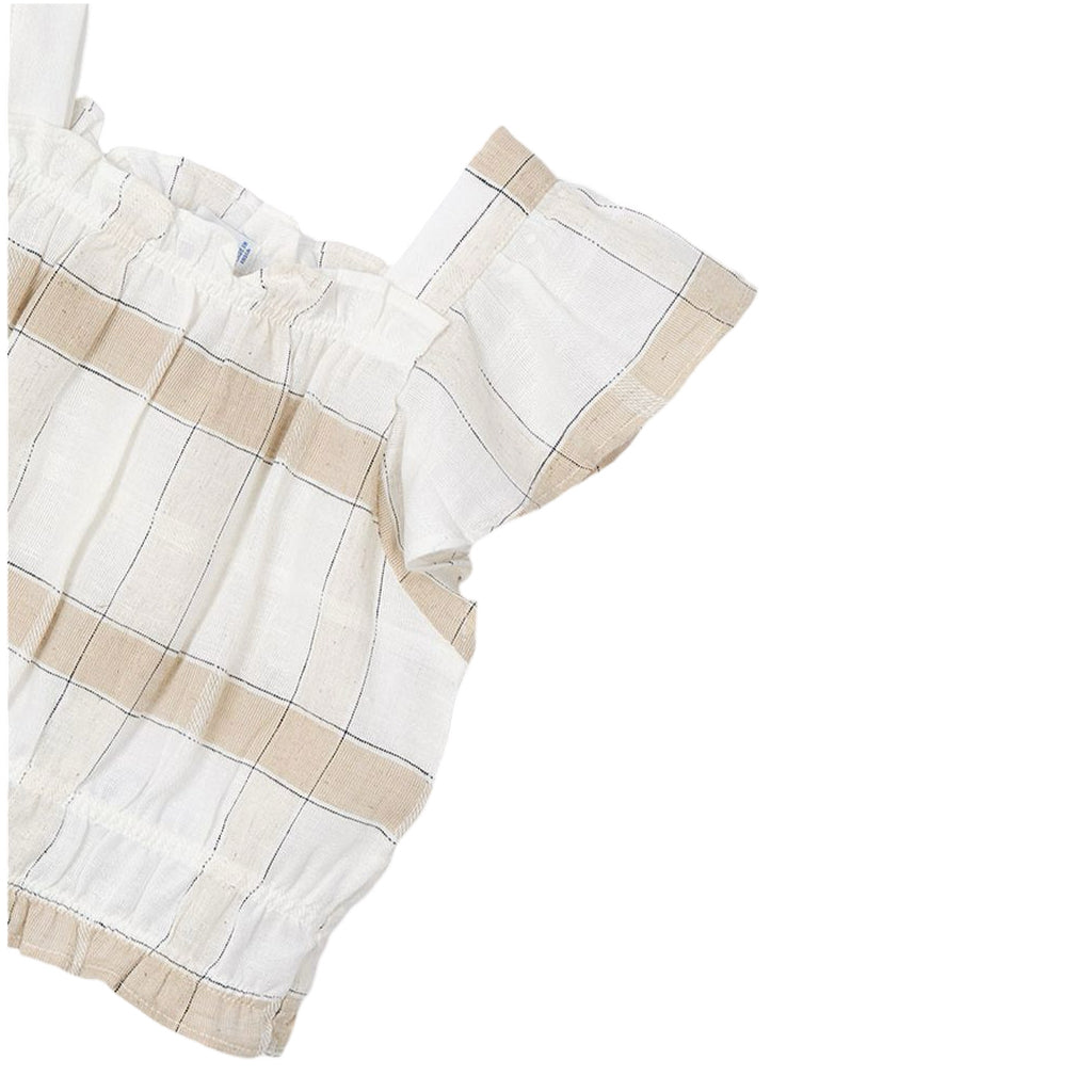 Featuring a loose, airy silhouette, this shirt provides ample movement and ease. The ruffled detailing along the sleeves adds a sweet, feminine touch, elevating the classic striped pattern with a bit of playful elegance.