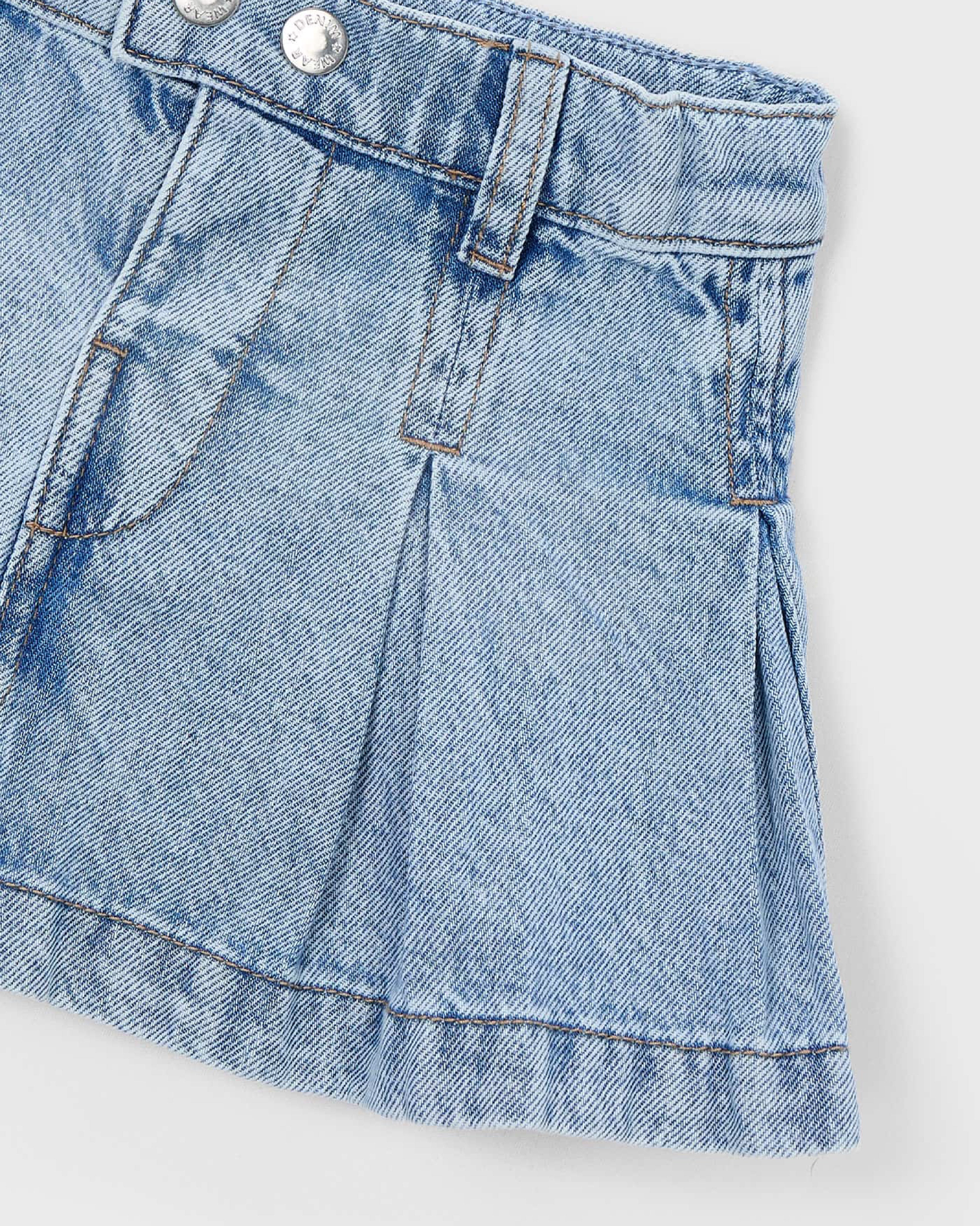 Blue Denim Pleated Skirt