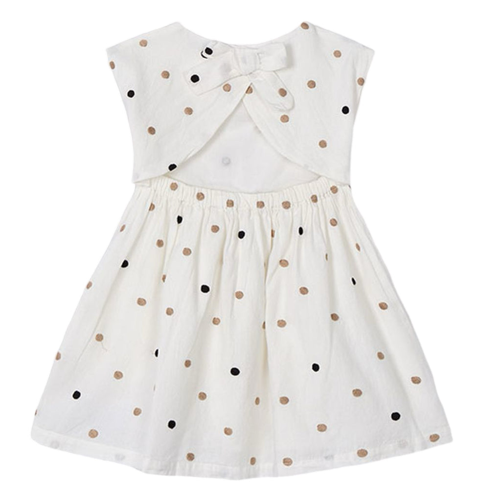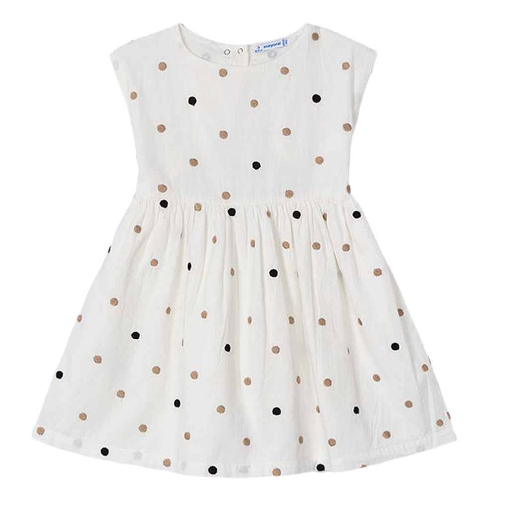 Natural Cinnamon Embroidered Polka Dot Dress