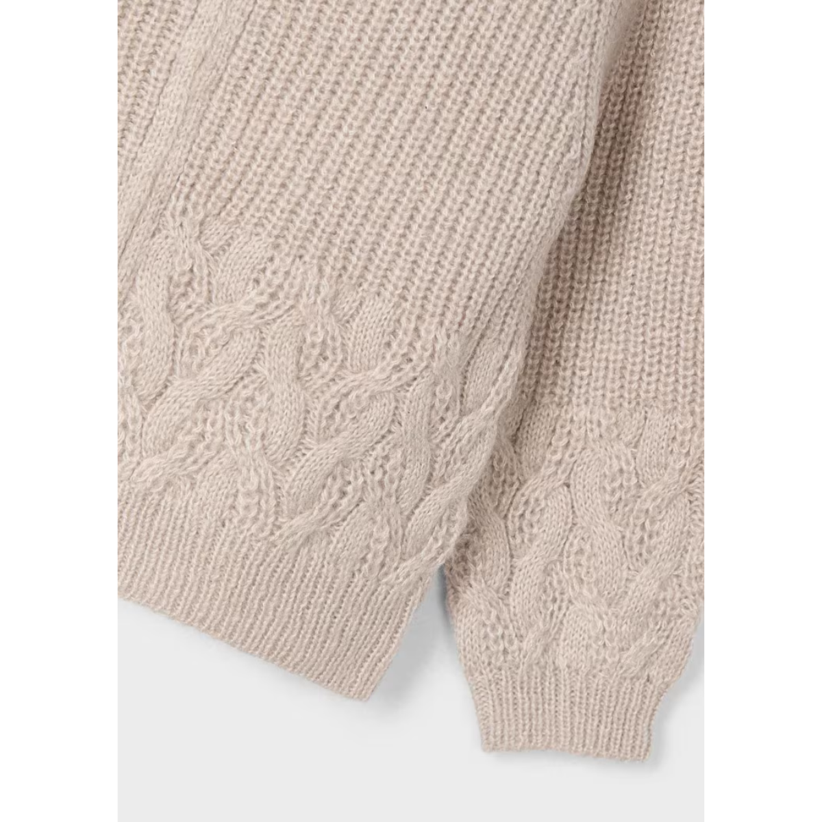 This delightful long-sleeved knitted jacket for girls features a cozy hood and a central front zipper for easy wear. Crafted from warm and soft thick knit fabric, it provides comfort on chilly days. The elasticated hem and cuffs ensure a snug fit, while braided details add a charming touch. This jacket is a perfect blend of style and functionality, making it an essential piece for your little one's wardrobe!