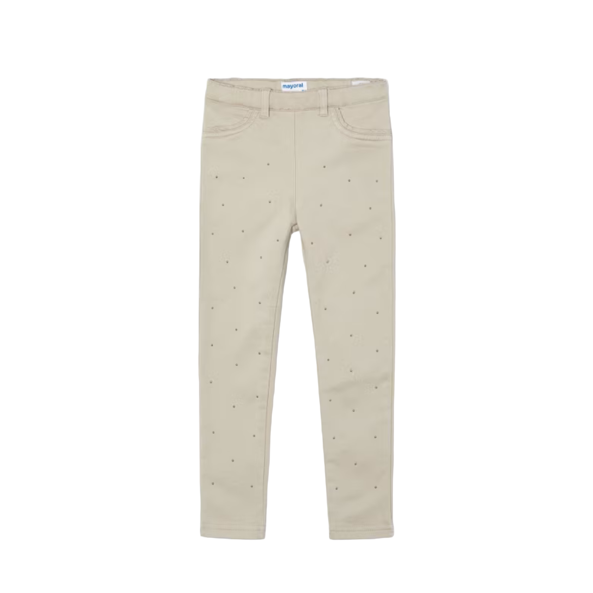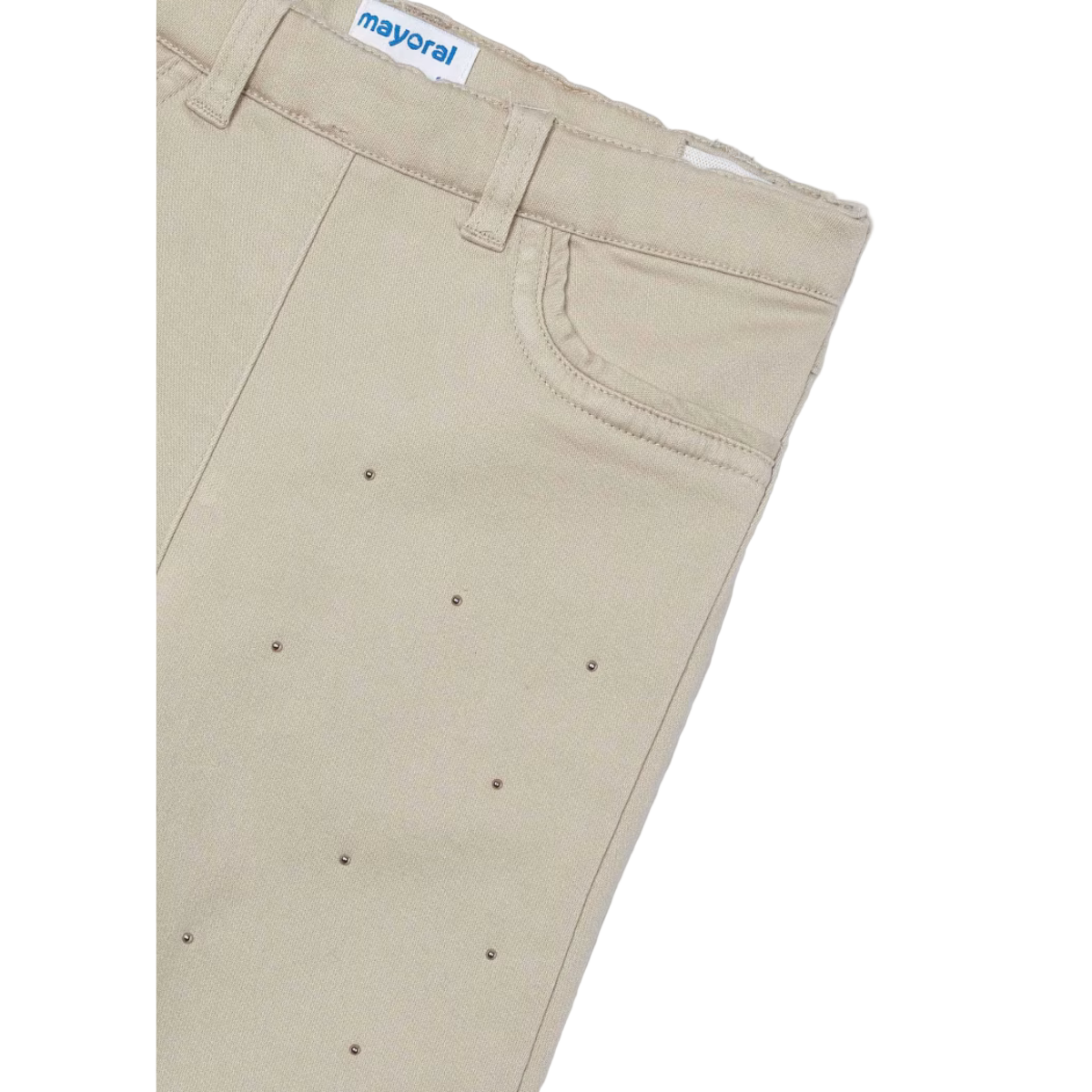 Add a touch of sparkle to her everyday outfits with these Mayoral Girl Studded Trousers. Designed with subtle stud detailing, they bring a hint of shine while maintaining a polished, modern look. The soft, stretchy fabric ensures all-day comfort, and the slim fit offers a flattering silhouette. With an adjustable waistband for the perfect fit and practical pockets for everyday convenience, these trousers are easy to dress up or down—perfect for school days or special outings.
