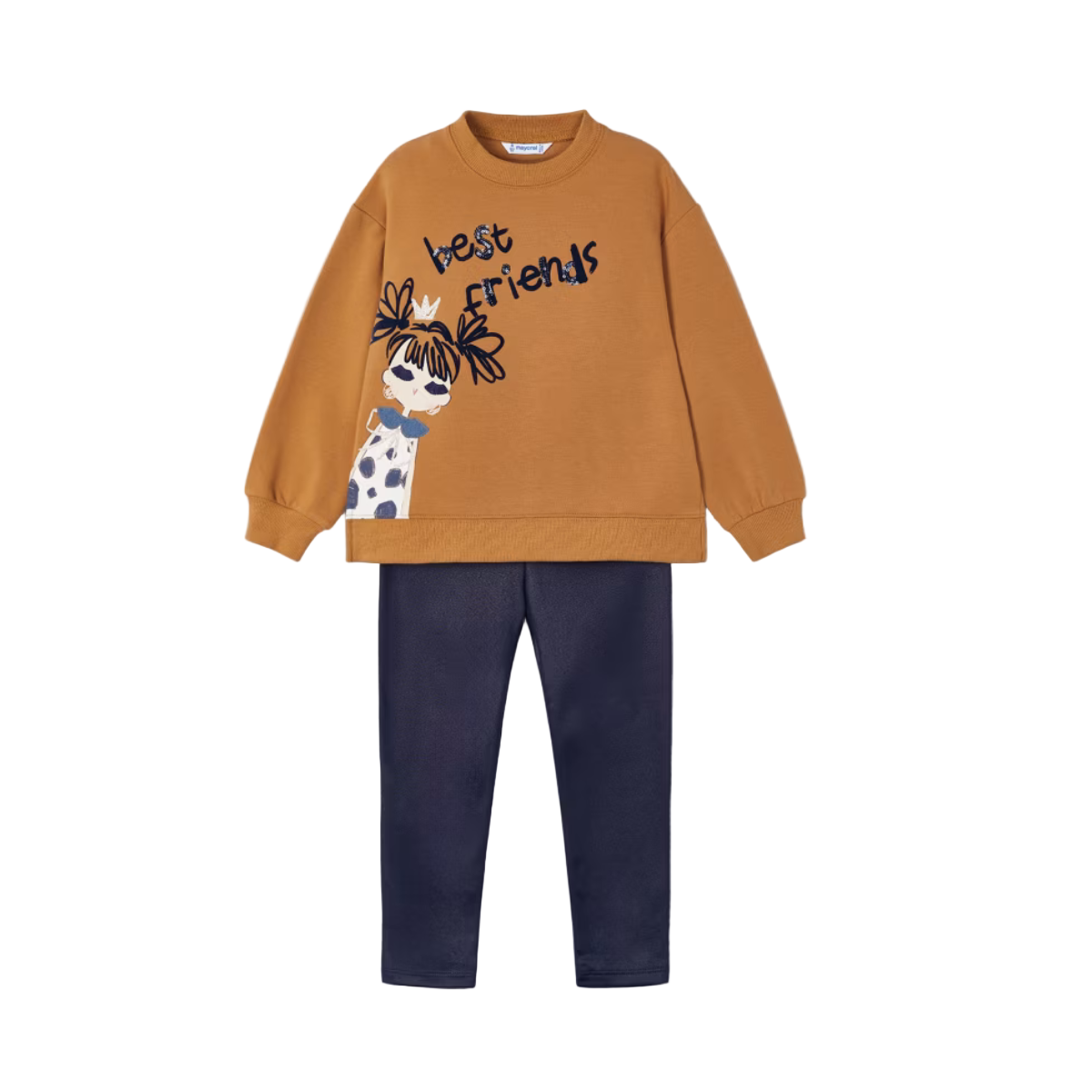 The Mayoral Girl Leggings and Sweatshirt Set is a cozy and stylish choice for everyday wear. Featuring a soft, comfortable sweatshirt paired with stretchy leggings, this set is perfect for playtime, outings, or relaxing at home. Thoughtfully designed with fun prints or subtle details, it brings together fashion and function in one easy outfit. The elastic waistband ensures a snug yet flexible fit, making it a practical go-to set for her daily adventures.