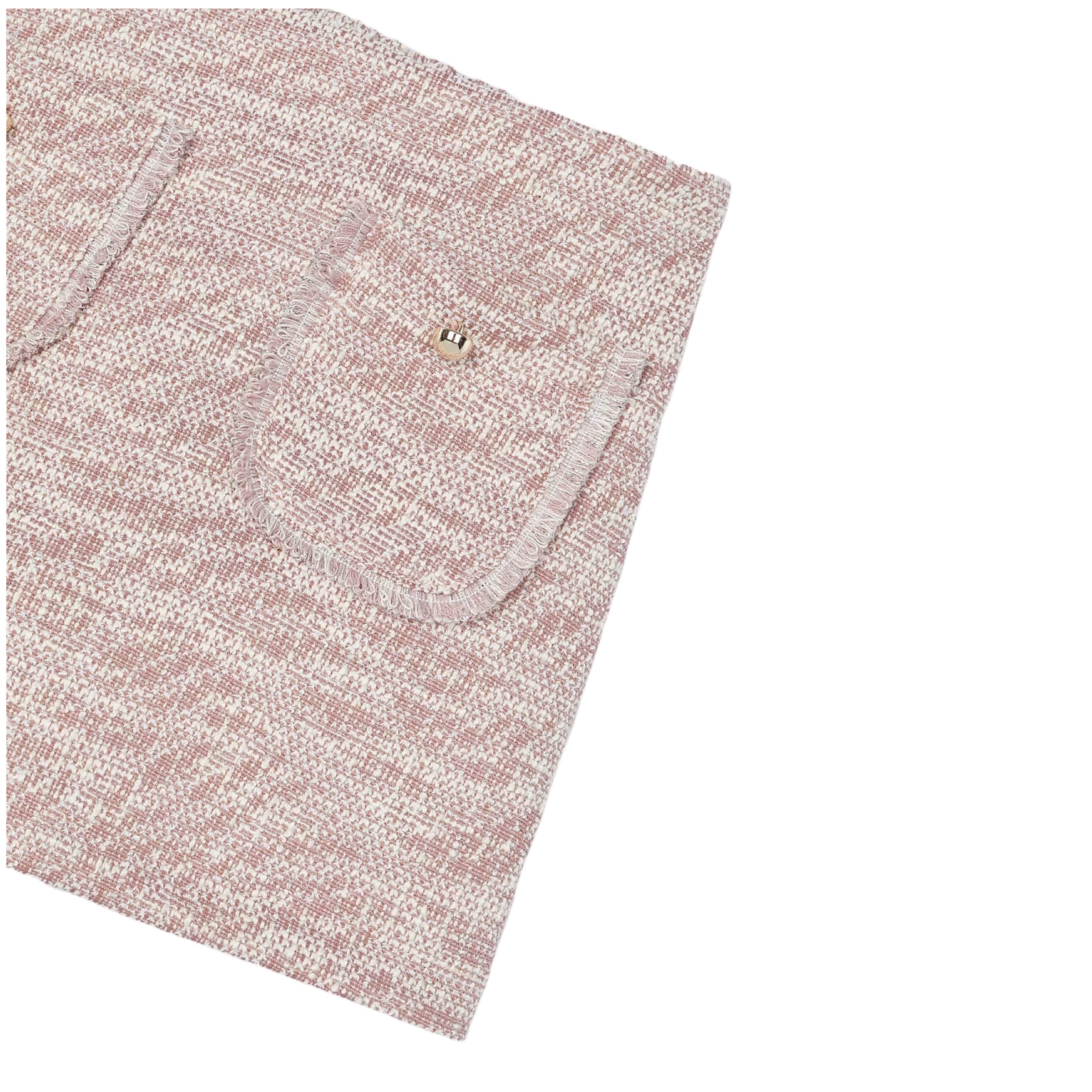 - Textured pink-and-white tweed with soft woven finish