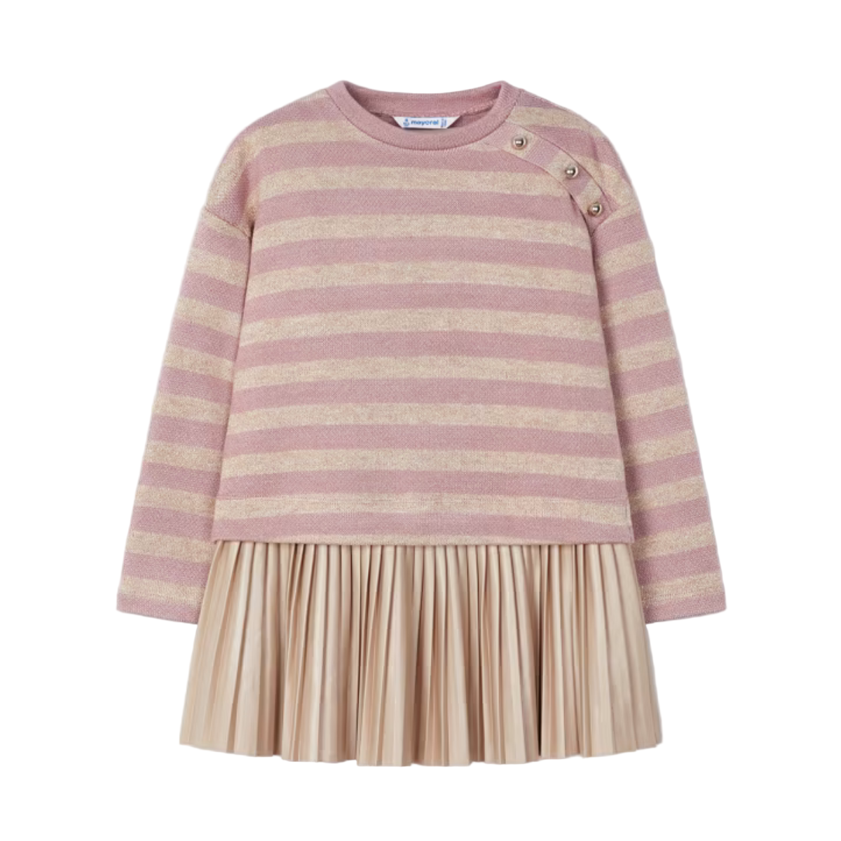 The sleeveless dress complements the sweatshirt beautifully with its pleated design, making this set a fashionable choice for any occasion. Perfect for layering or wearing separately, it adds versatility to her wardrobe.
