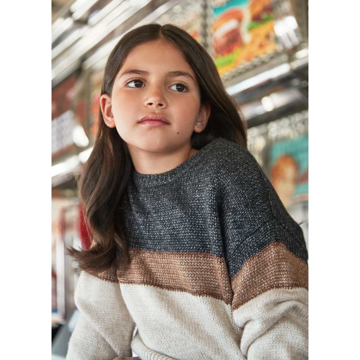 Bright, bold, and effortlessly cool —Girl Color Block Sweater is the perfect way to add a pop of personality to her wardrobe. Made from a soft and cozy knit, this sweater features a stylish color block design that’s both playful and on-trend. The relaxed fit, ribbed trims, and classic crew neckline make it comfortable for all-day wear, whether she's at school, out with friends, or enjoying a weekend adventure.