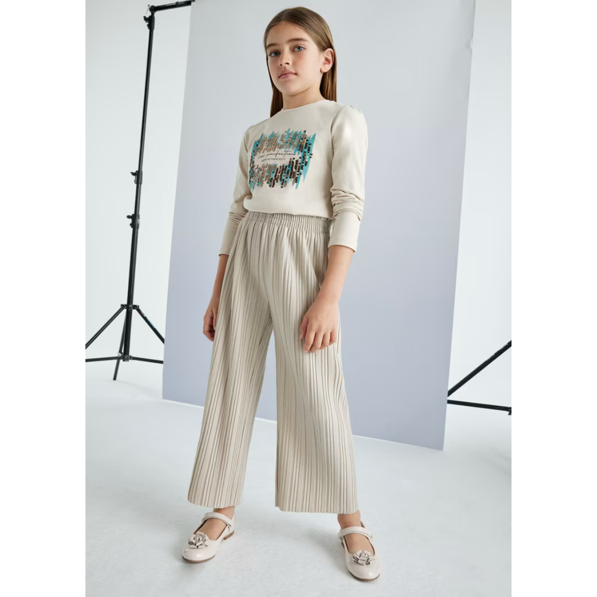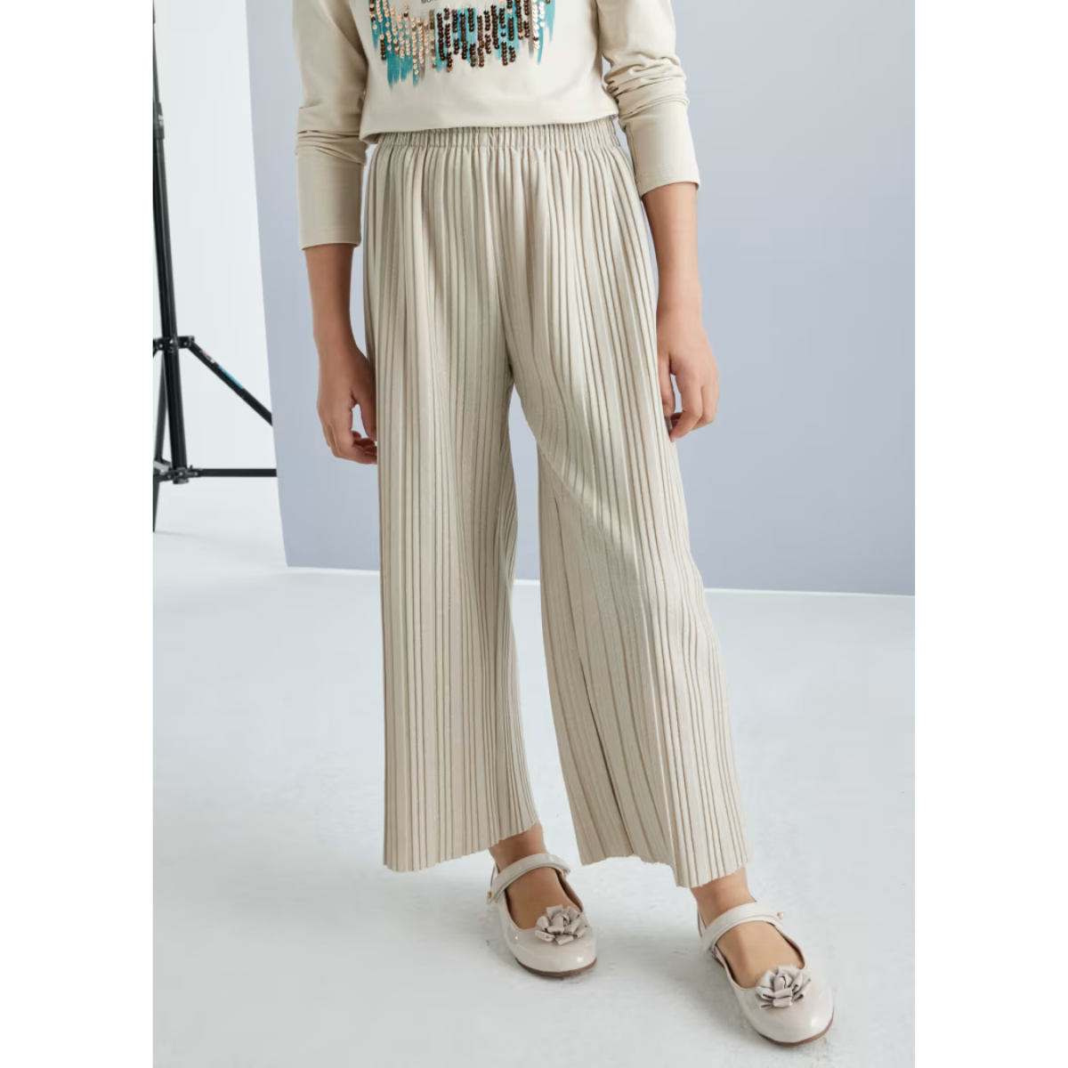 Elevate her everyday style with the Girl Pleated Trousers, a chic and comfortable choice for any occasion. Featuring elegant front pleats, these trousers offer a tailored, sophisticated look while maintaining a relaxed, easy-to-wear fit. Made from soft, high-quality fabric, they provide comfort and durability throughout the day. The adjustable waistband ensures a customized fit, while the straight-leg design adds timeless appeal. Perfect for pairing with blouses, knits, or tees, these trousers are ideal for school days, family gatherings, or outings.