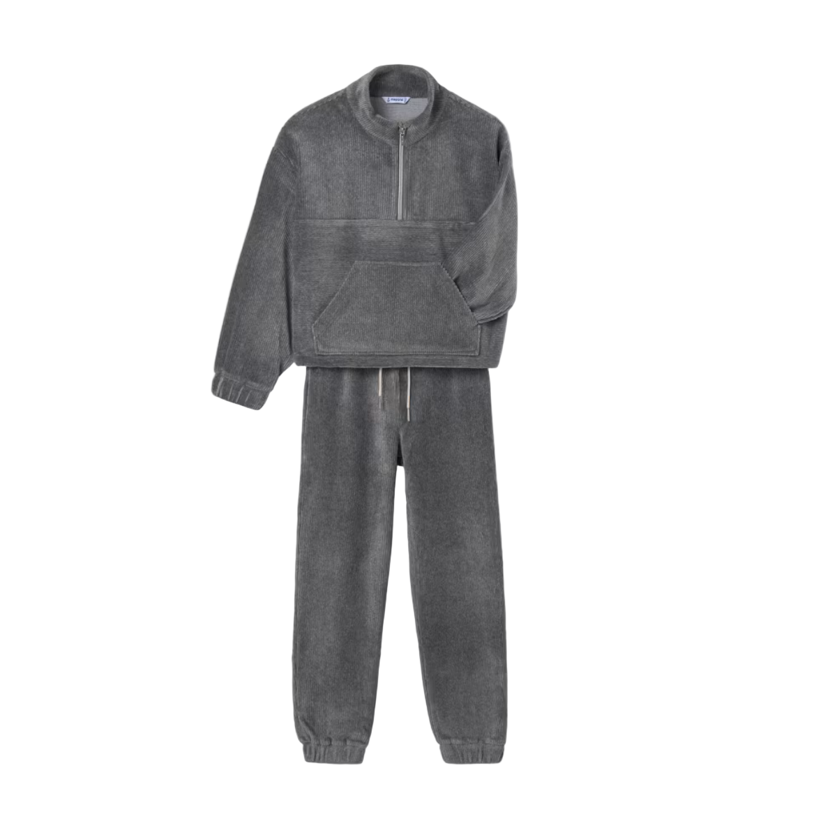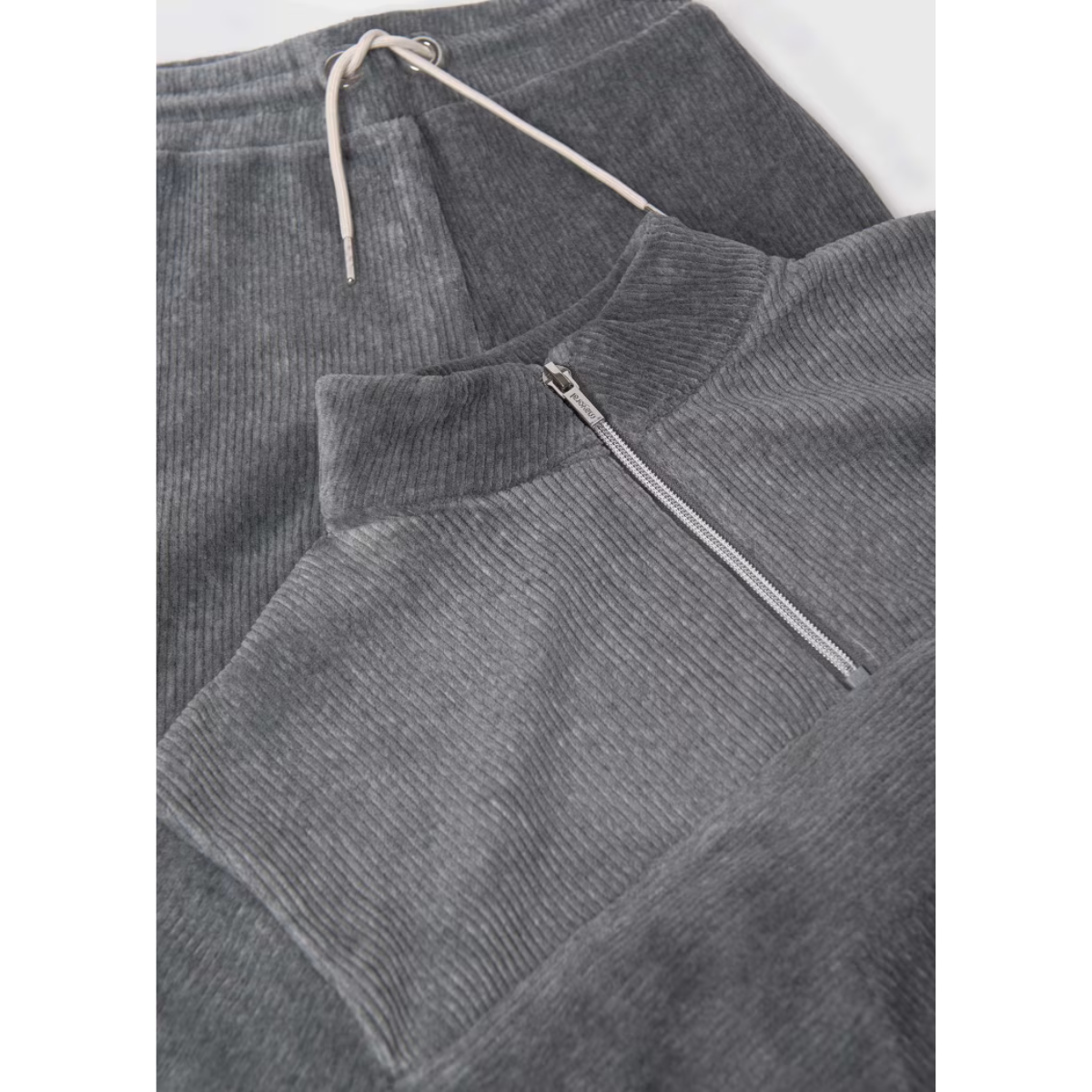 This cozy two-piece tracksuit includes a long-sleeve sweatshirt and matching long pants, crafted from warm and soft corduroy fabric for ultimate comfort.