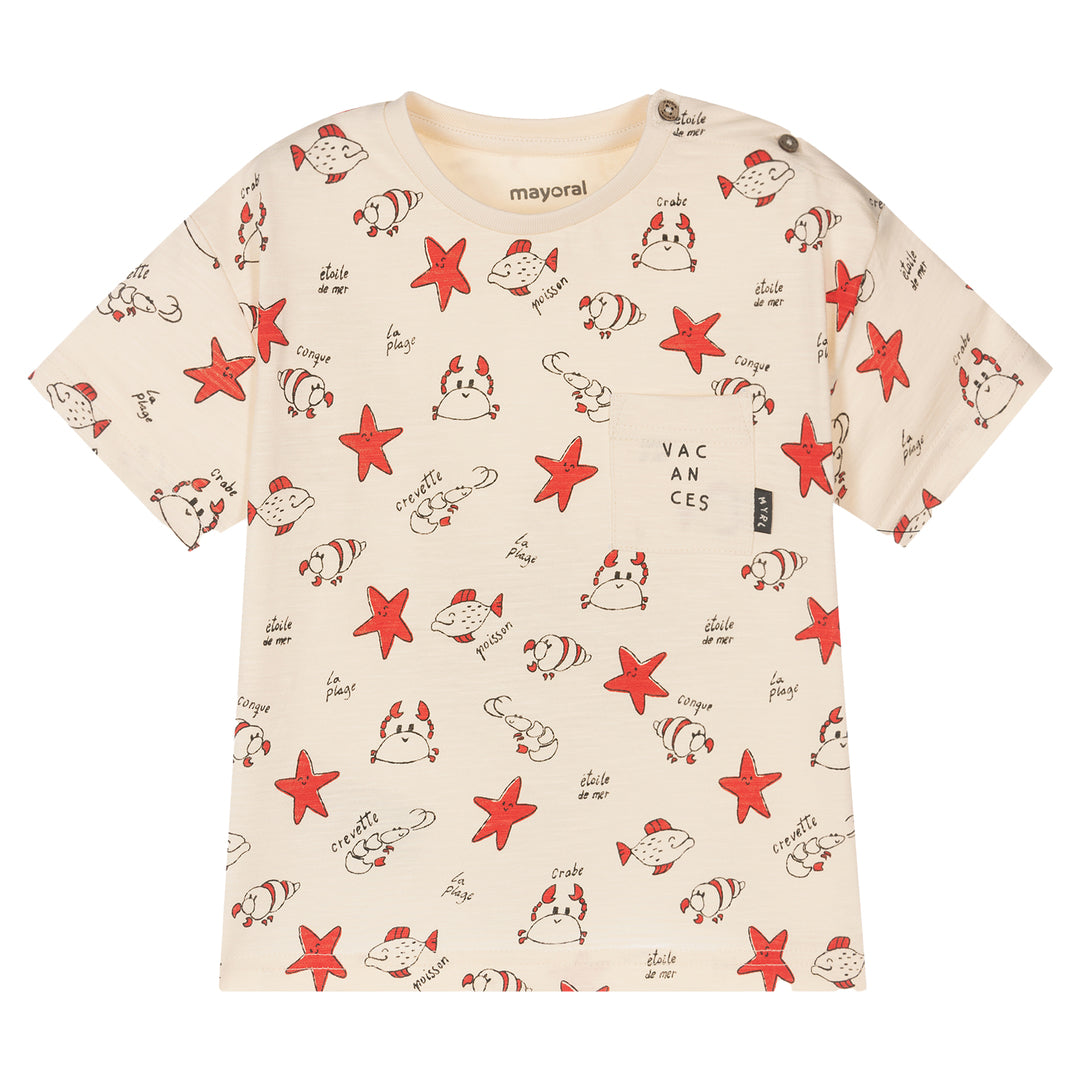 Beige Beach Print Pocket T-Shirt