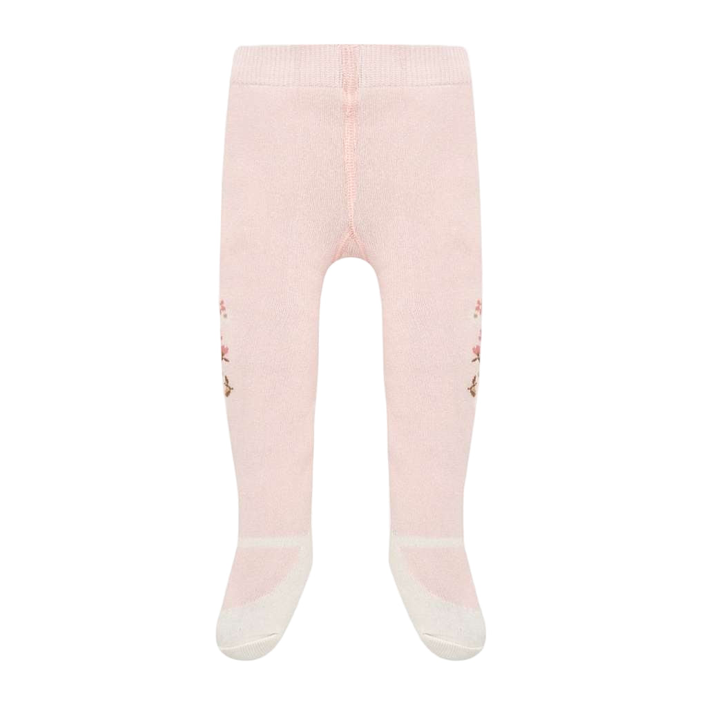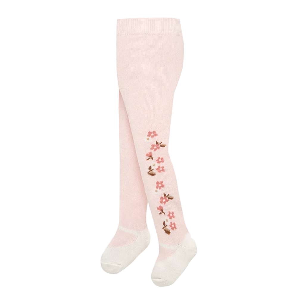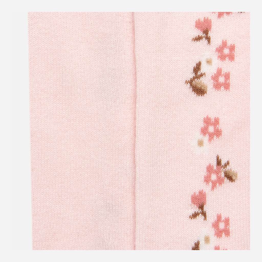 A delicate pair of tights in soft pink, featuring a subtle jacquard floral motif along the outer leg. Designed with gentle stretch and a smooth finish, they offer both comfort and charm. The contrast white feet add a refined touch, making them ideal for pairing with dresses or layered looks.