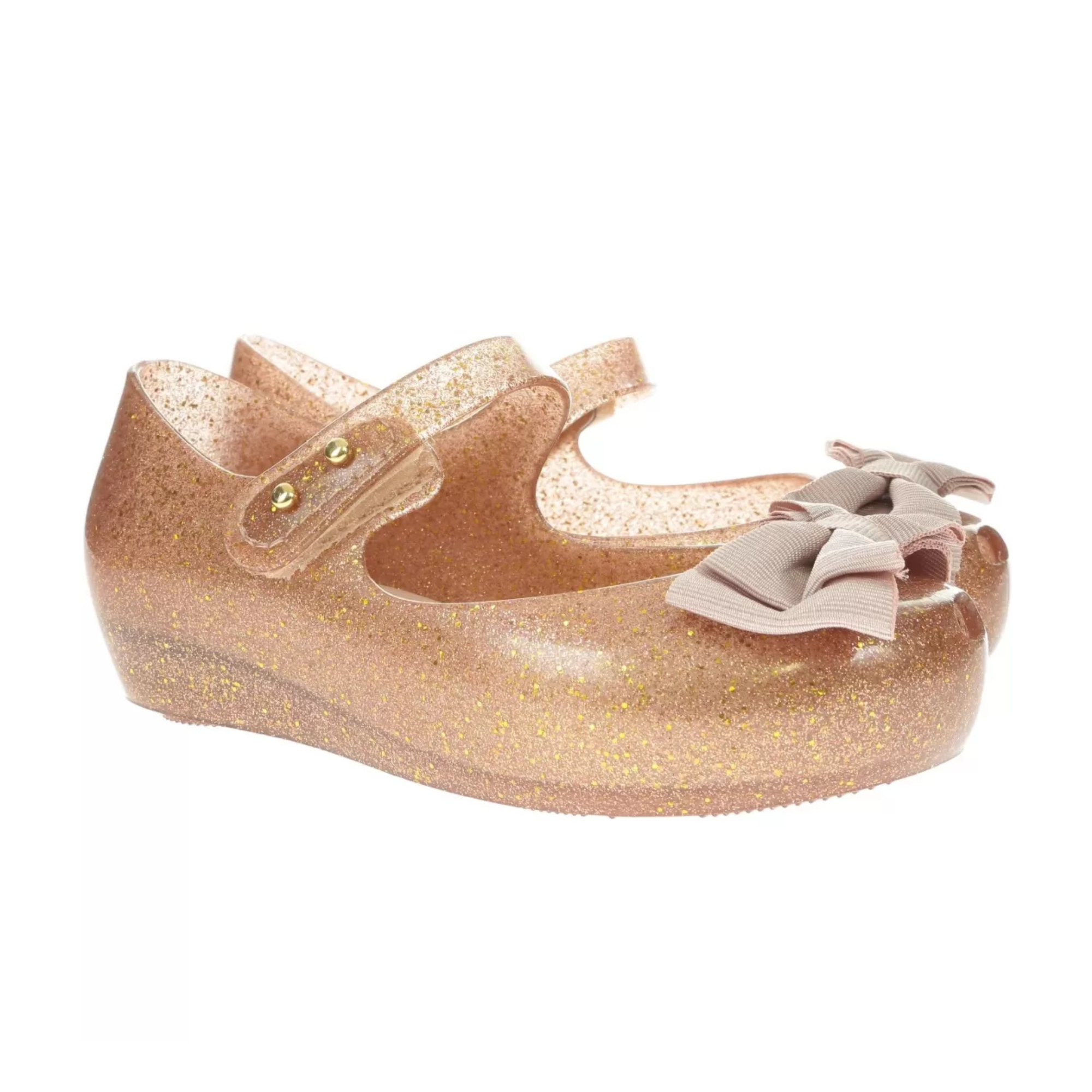 A playful blend of sparkle and softness, the Glitter Bow Jelly Sandals feature a translucent finish with embedded shimmer and oversized fabric bows at the toe. Designed in a classic silhouette with secure strap closure, they offer flexible comfort and whimsical charm—perfect for dress-up moments or sunny-day outings.