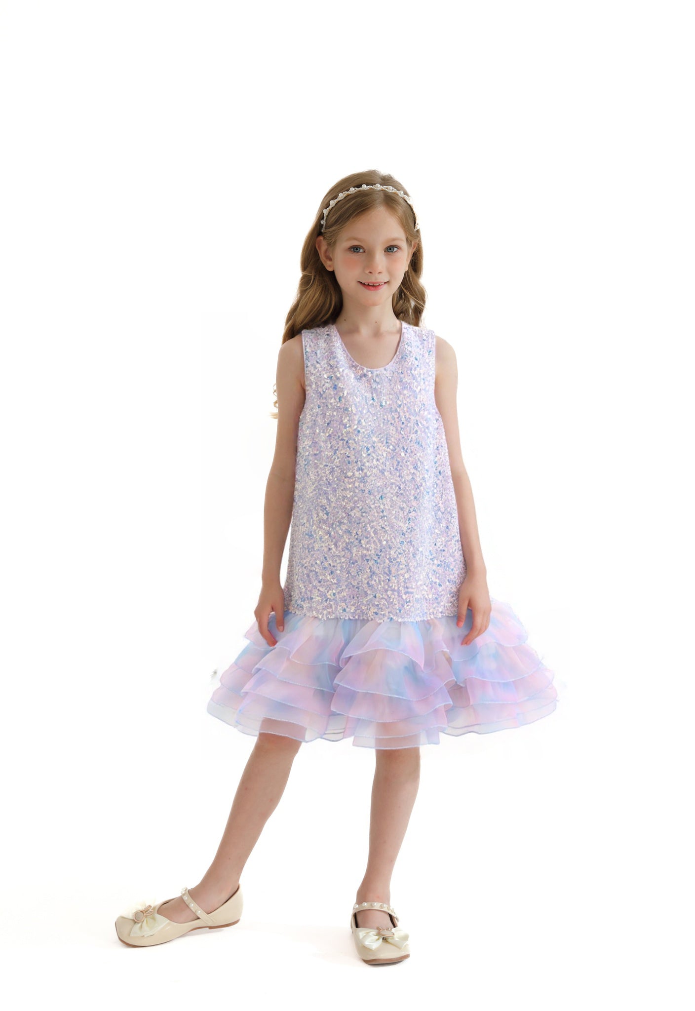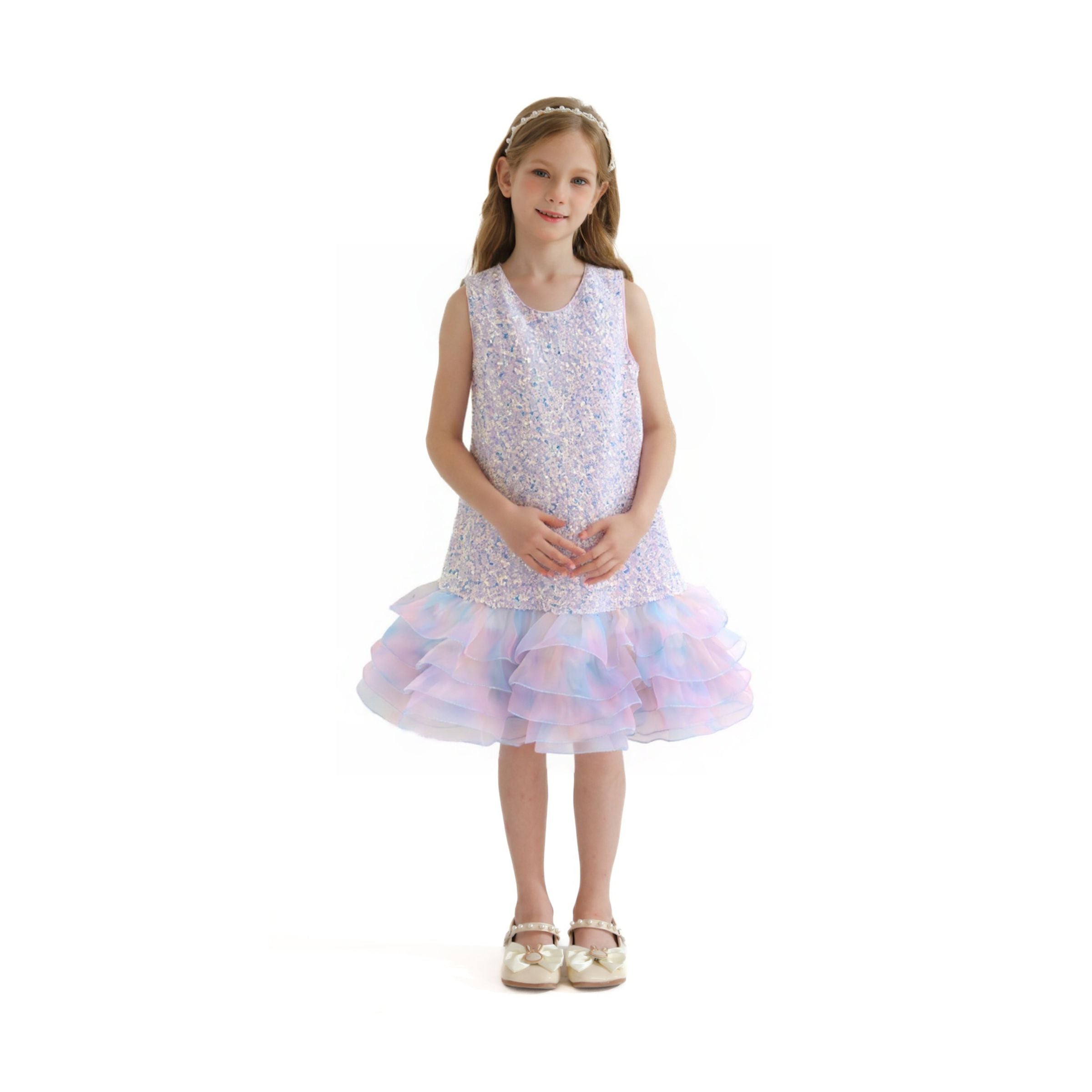 Layers of soft tulle add graceful volume and dreamy movement, creating a silhouette that floats and twirls with ease. The subtle sparkle woven throughout catches the light from every angle, making each step and spin feel magical. Whether she's dancing under chandeliers or posing for keepsake portraits, the Purple Sparkling Cecilia Dress is designed to dazzle.