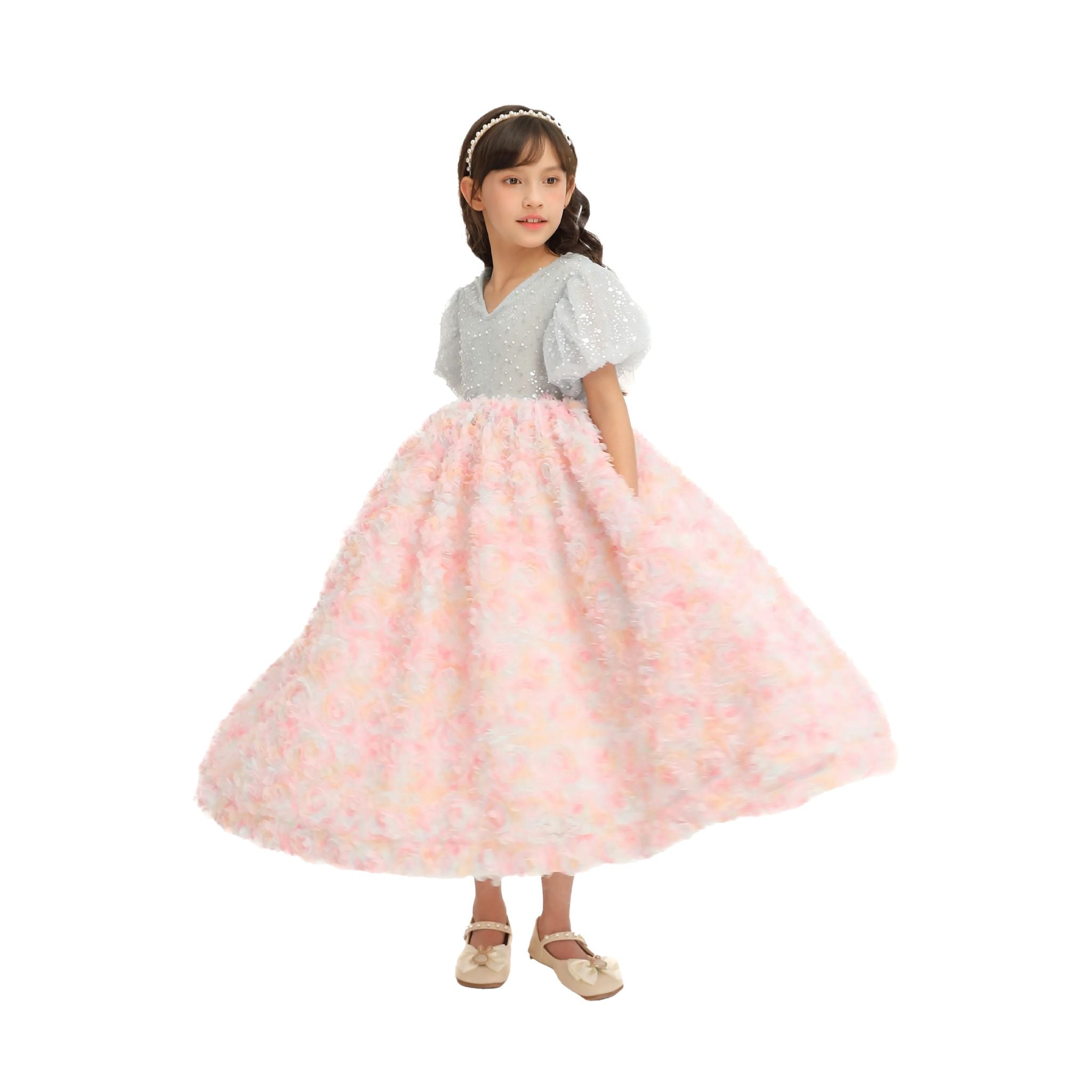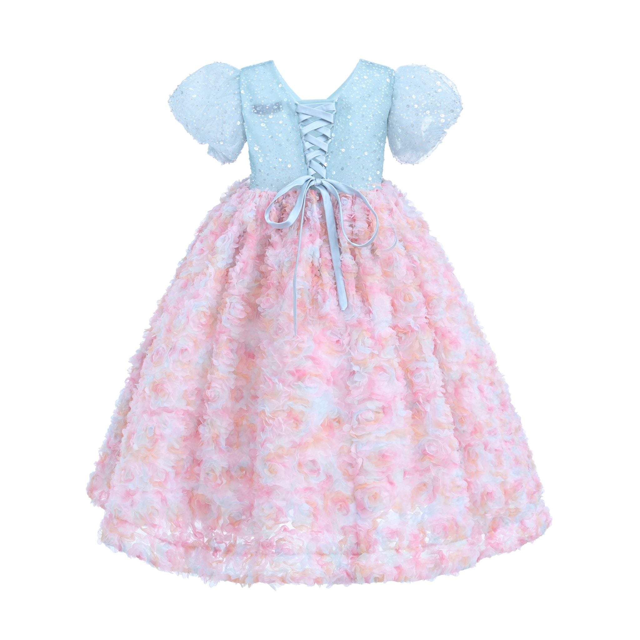 Designed for both elegance and comfort, the lightweight fabric drapes beautifully, creating a dreamy, whimsical look. The soft pastel tones and floral details bring a touch of romance, making this dress ideal for special occasions or simply adding a bit of magic to everyday wear.