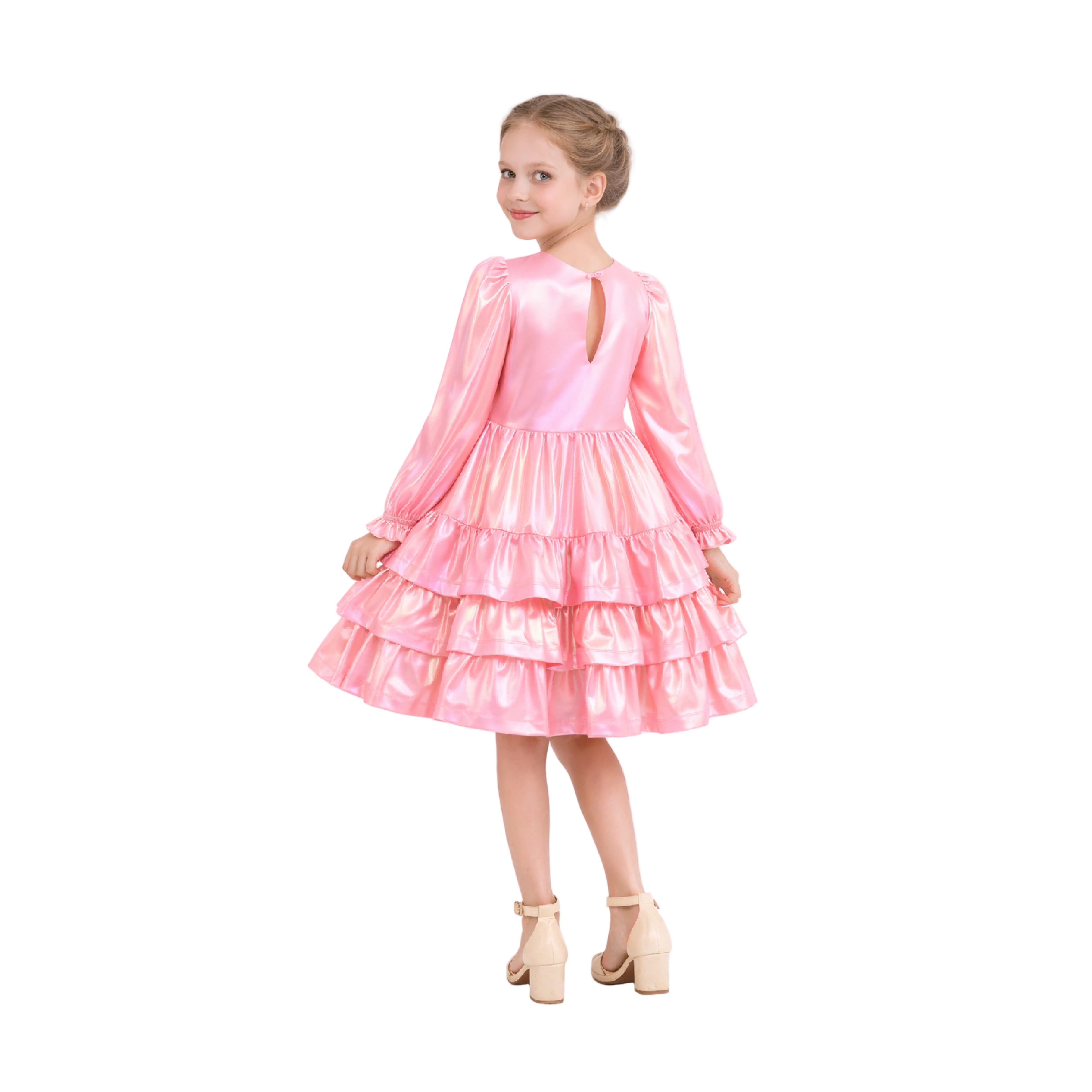 Pink Metallic Ruffle Party Dress