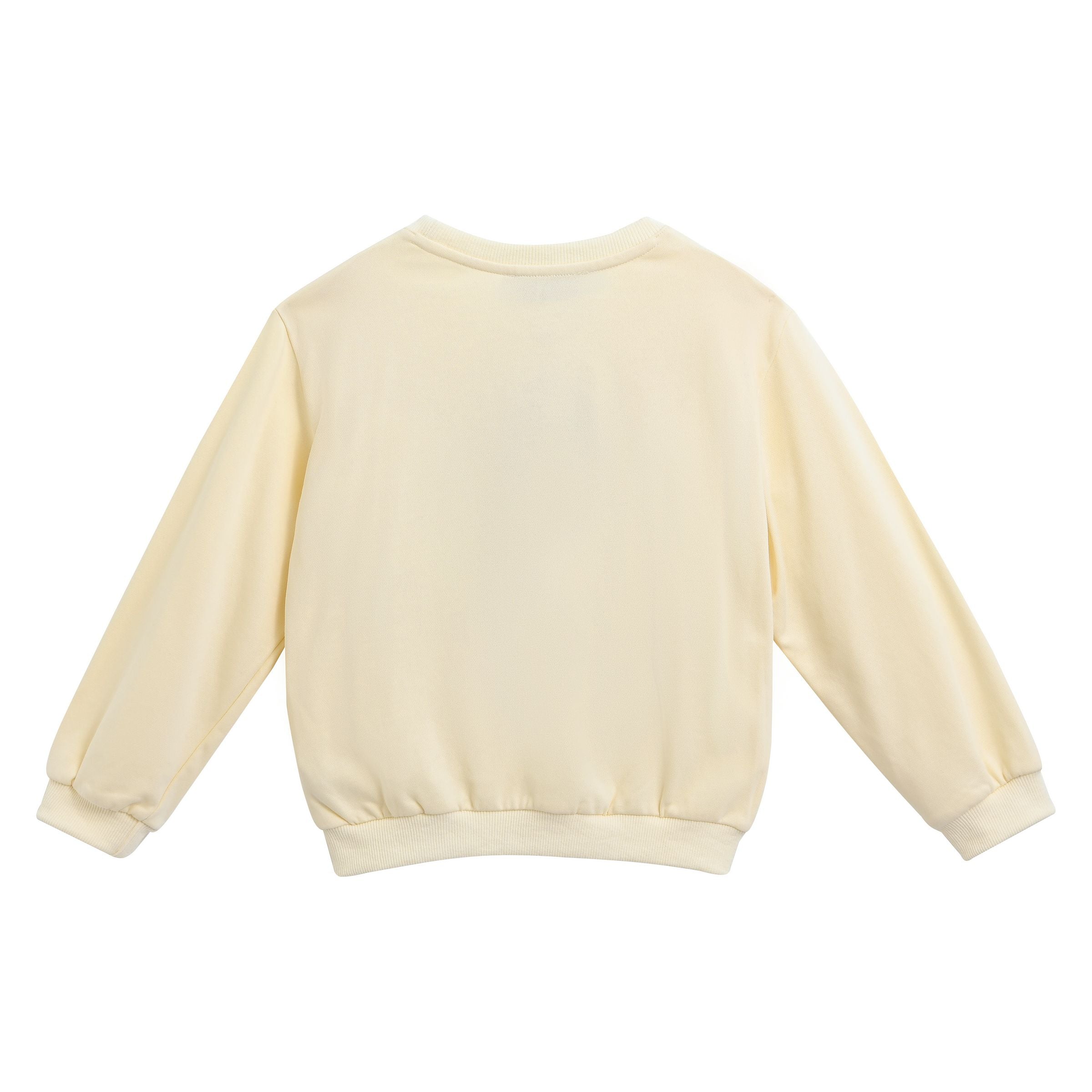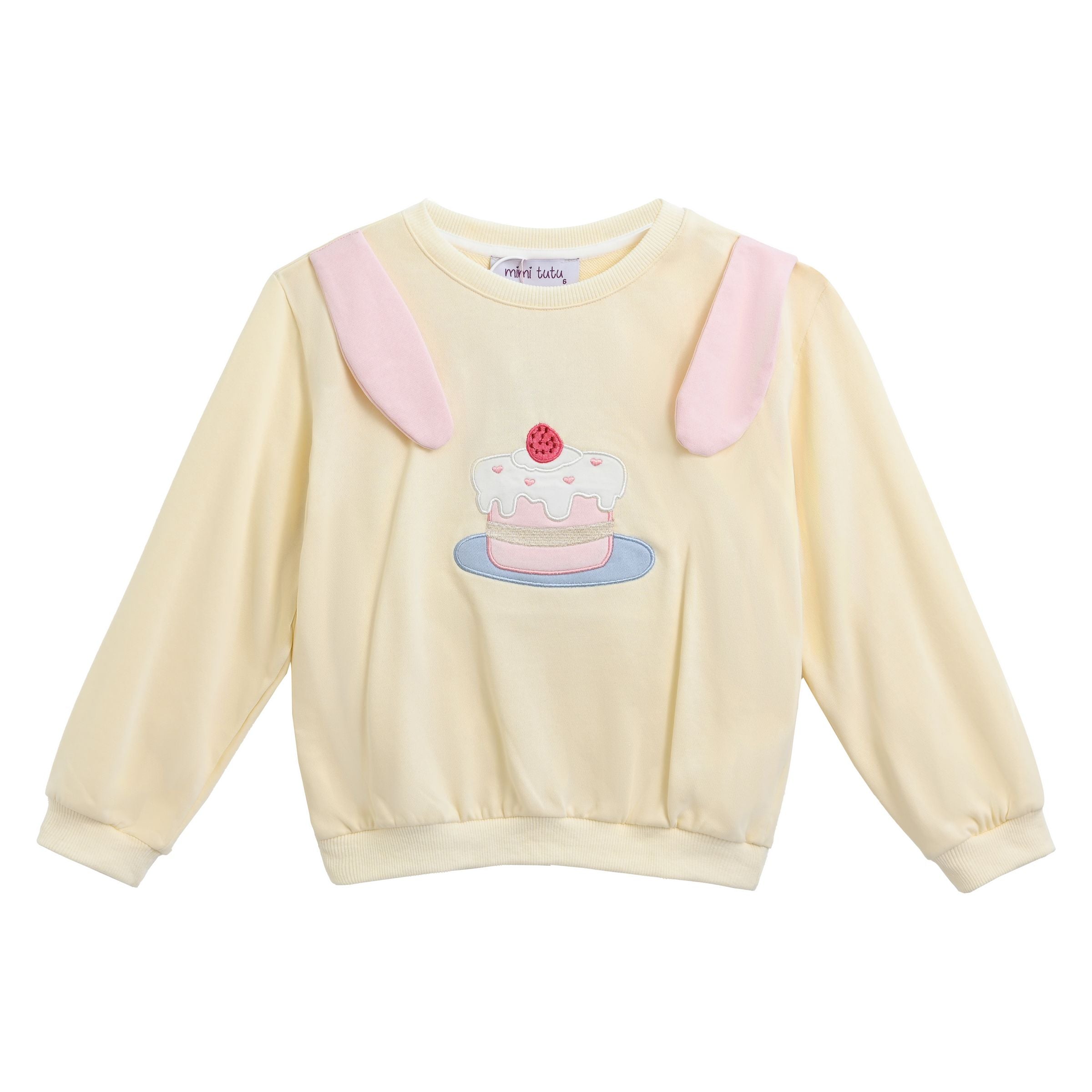 This cheerful yellow sweatshirt serves up a sweet dose of imagination with its embroidered strawberry cake and soft bunny-ear shoulders. Perfect for playful outings or cozy days in, it blends comfort with whimsical charm that little ones will love.