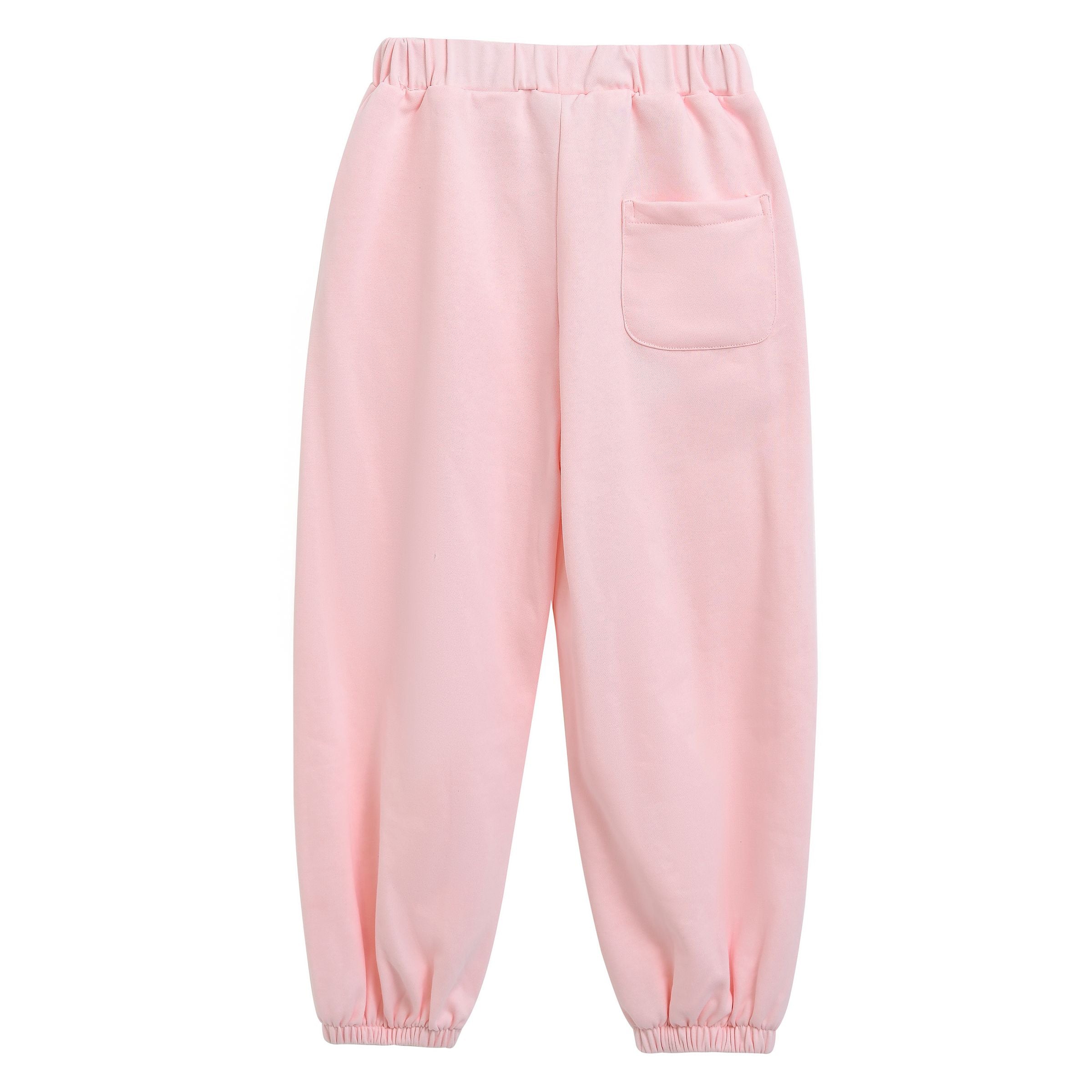 - Soft Pink Jogger Pants: Elastic waist and cuffs with side pockets for relaxed, all-day wear.