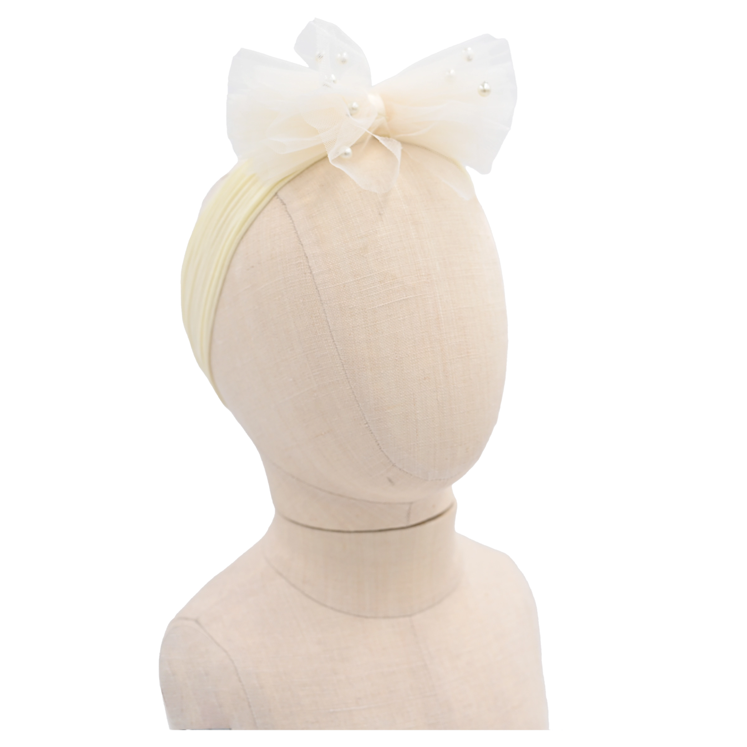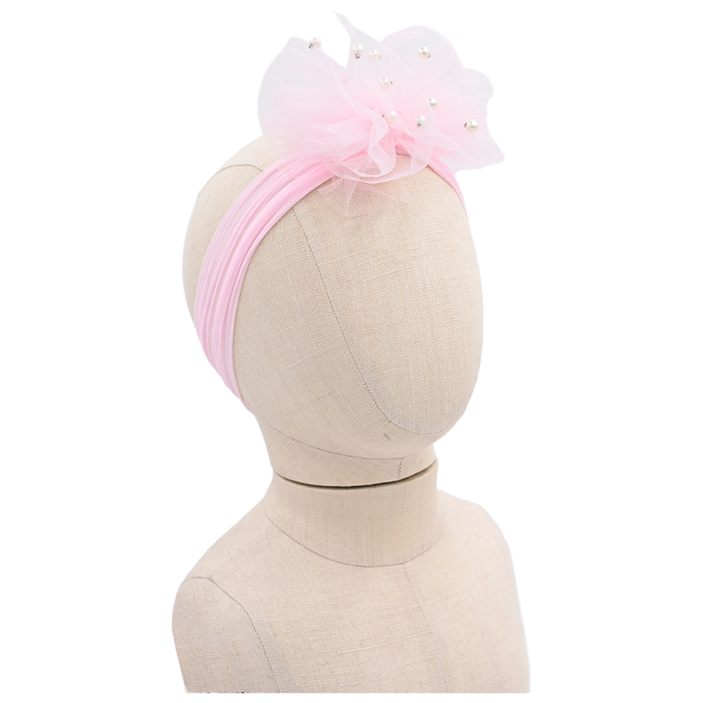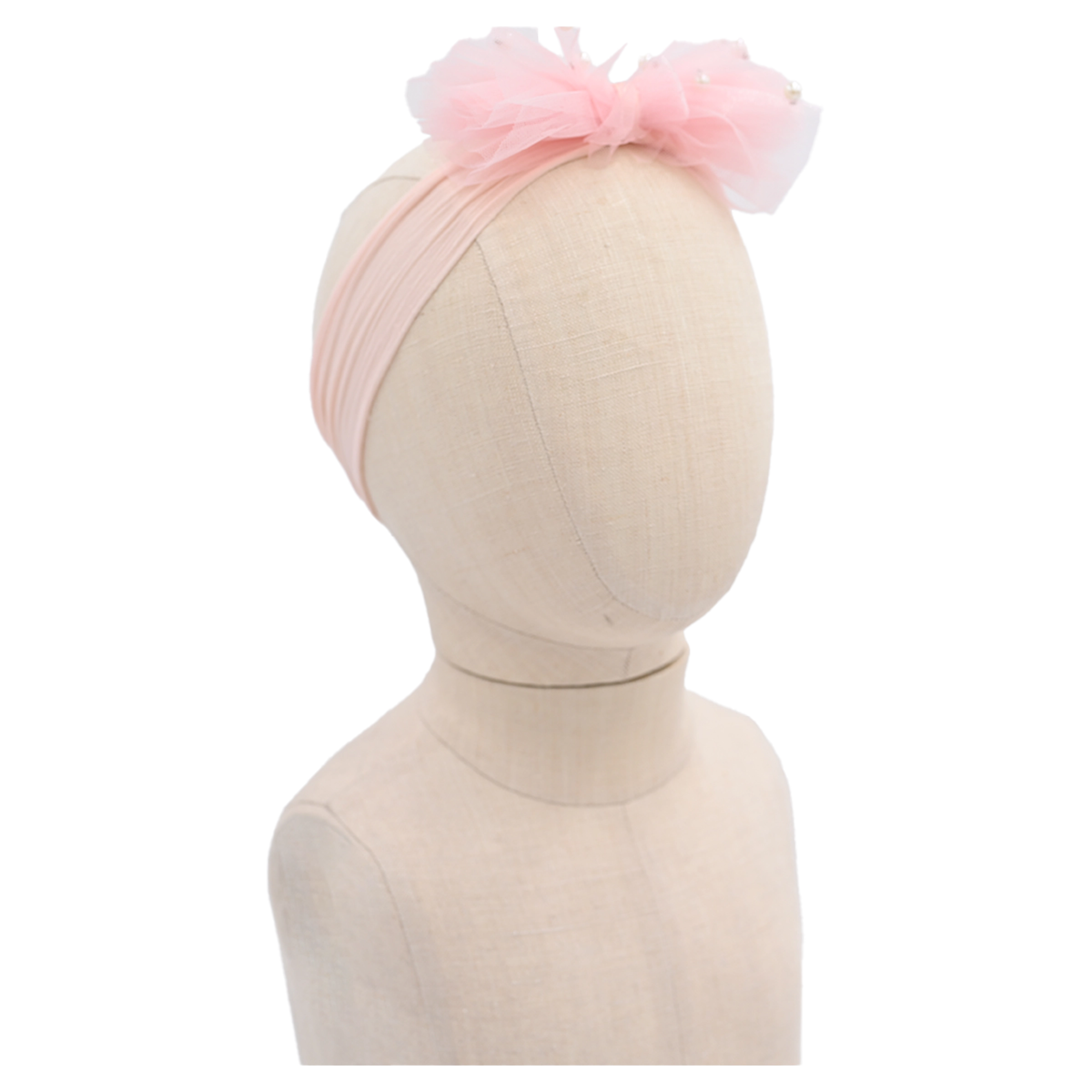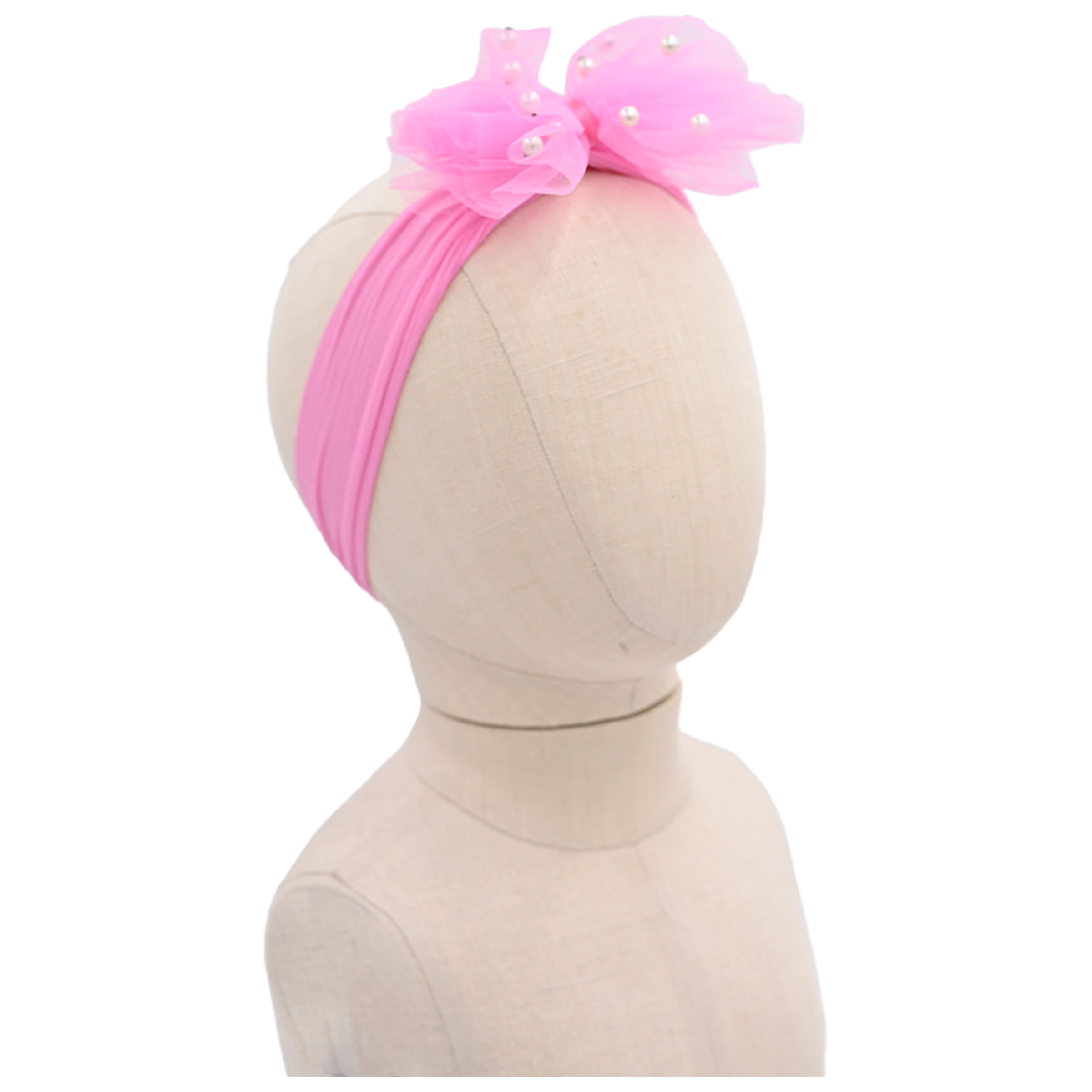Crafted with a delicate tulle ribbon and adorned with pearl accents, this headband offers a soft, whimsical aesthetic that enhances both casual and special occasion outfits. Available in six vibrant and pastel hues—including pink, peach, hot pink, blue, yellow, and lavender—it adds a delightful pop of color to any ensemble.