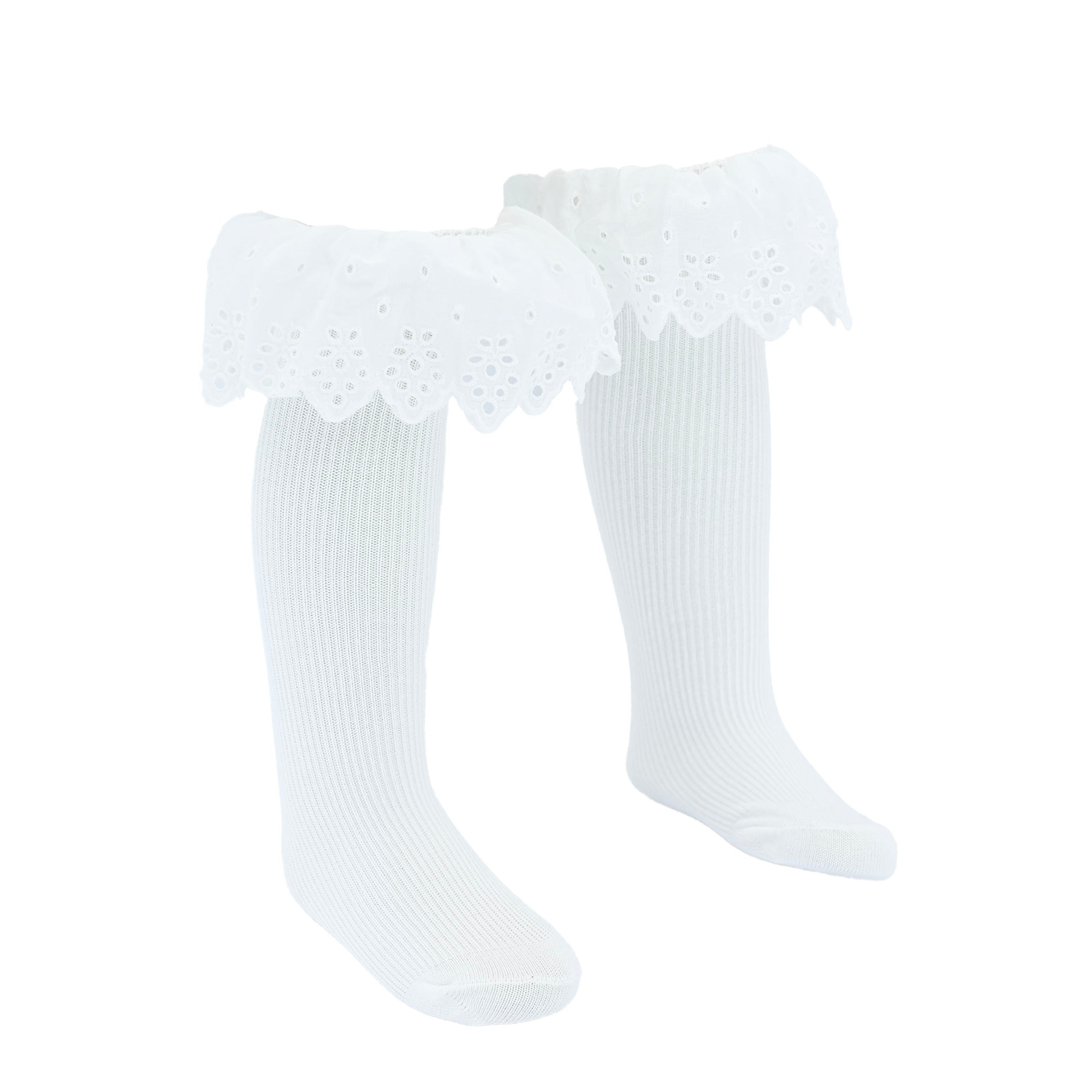 Versatile and timeless, the crisp white shade makes them easy to mix and match with various colors and styles. Whether dressing up for a celebration or adding a classic touch to a casual look, these socks are a charming addition to any young fashionista’s wardrobe.