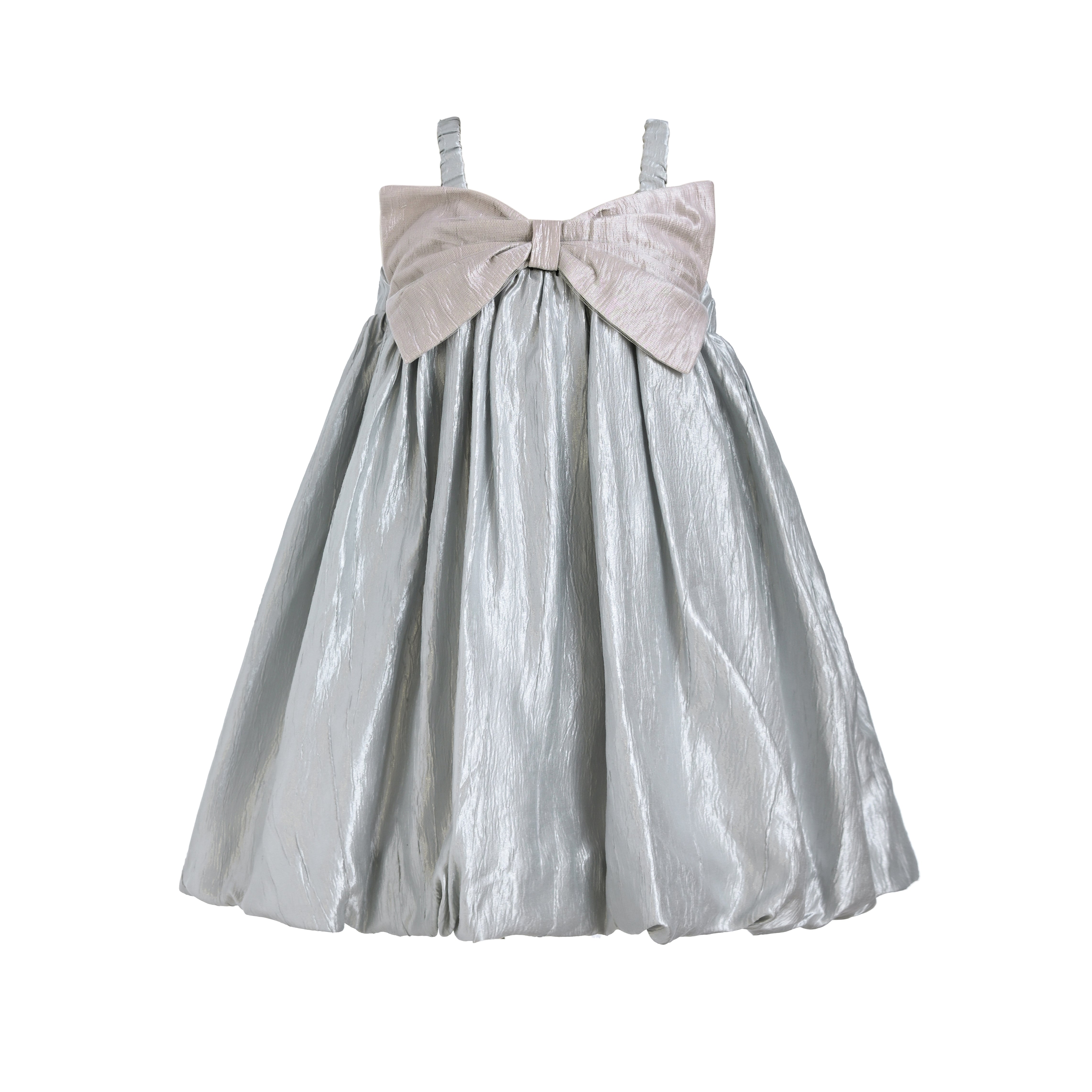 The Silver Shining Satin Dress brings a touch of glamour with its shimmering silver satin fabric that catches the light beautifully. The sleek, elegant design enhances its polished look, making it perfect for formal occasions or special celebrations.