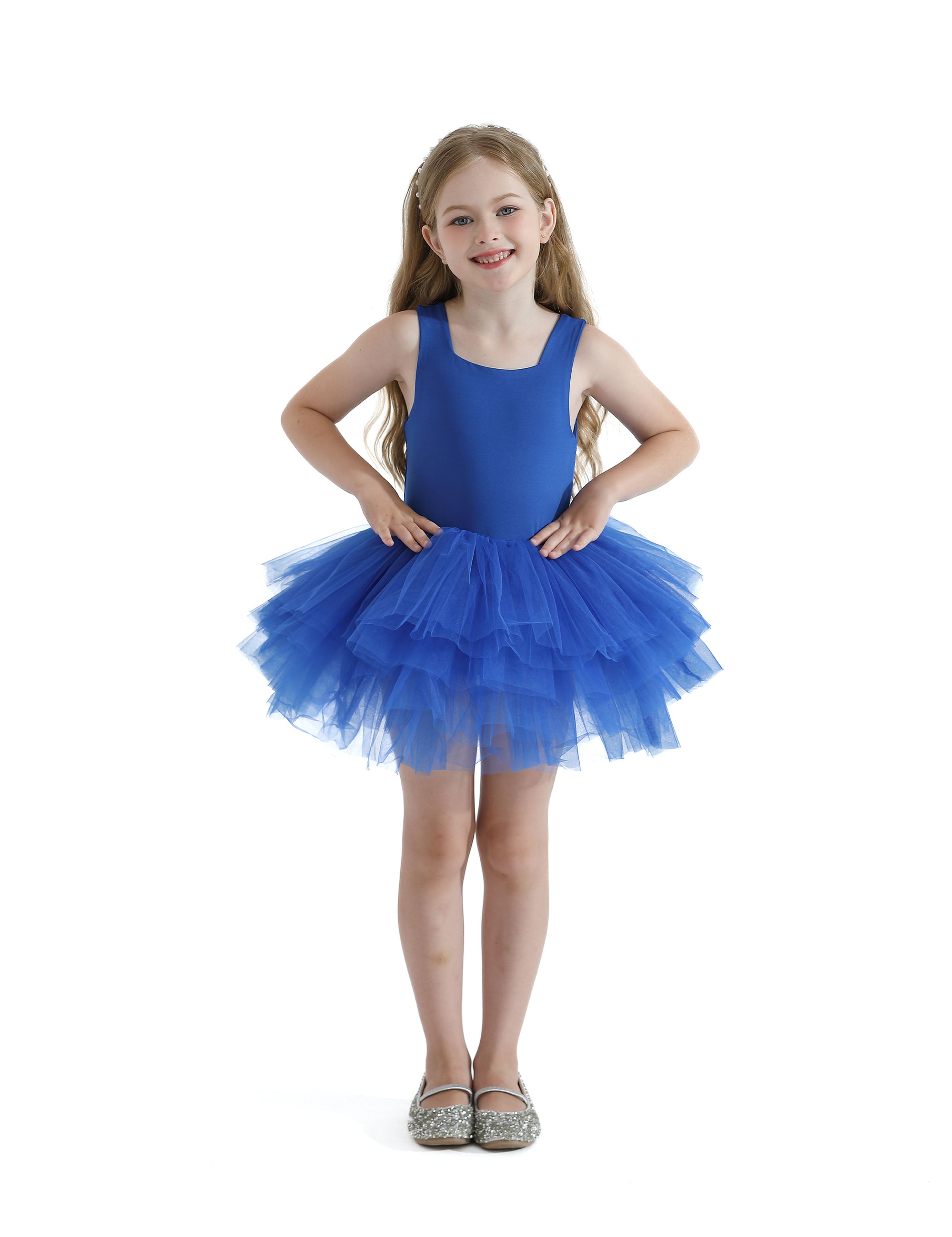 Whether for dance, recital, or imaginative play, the Royal Blue Layered Leotard brings a delightful blend of charm and confidence to any young wardrobe.