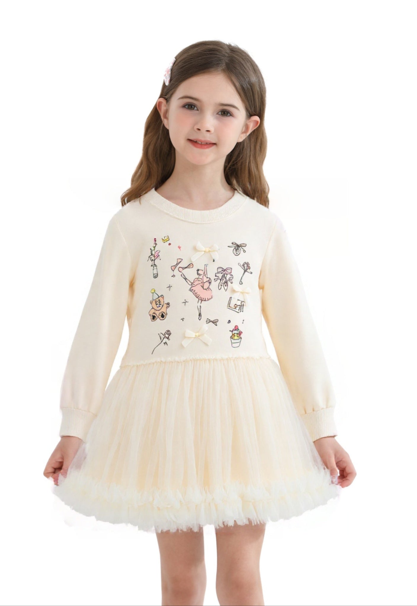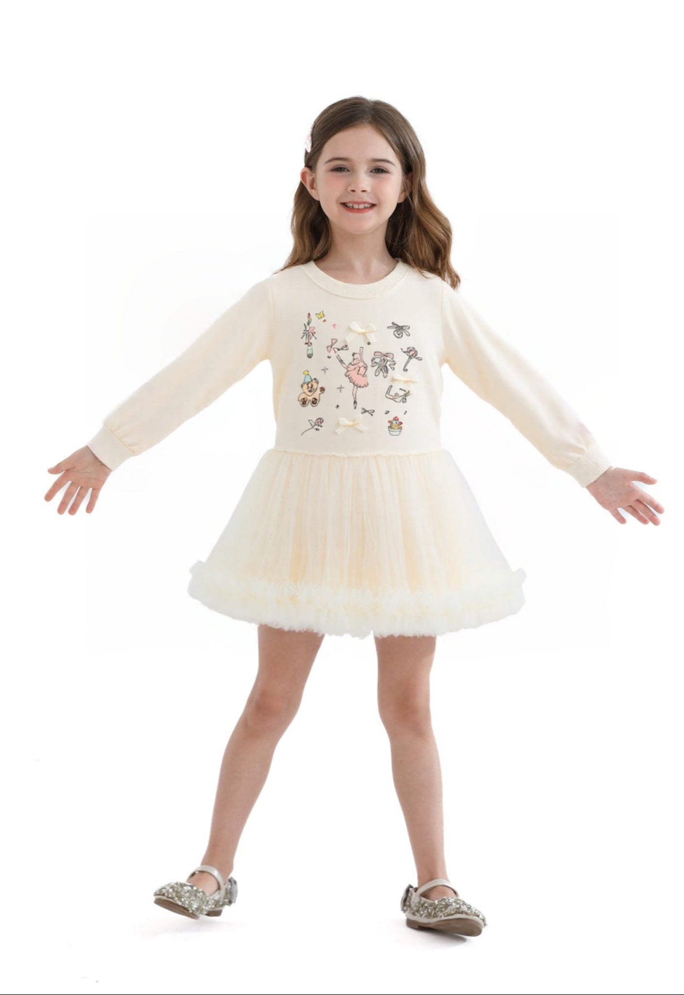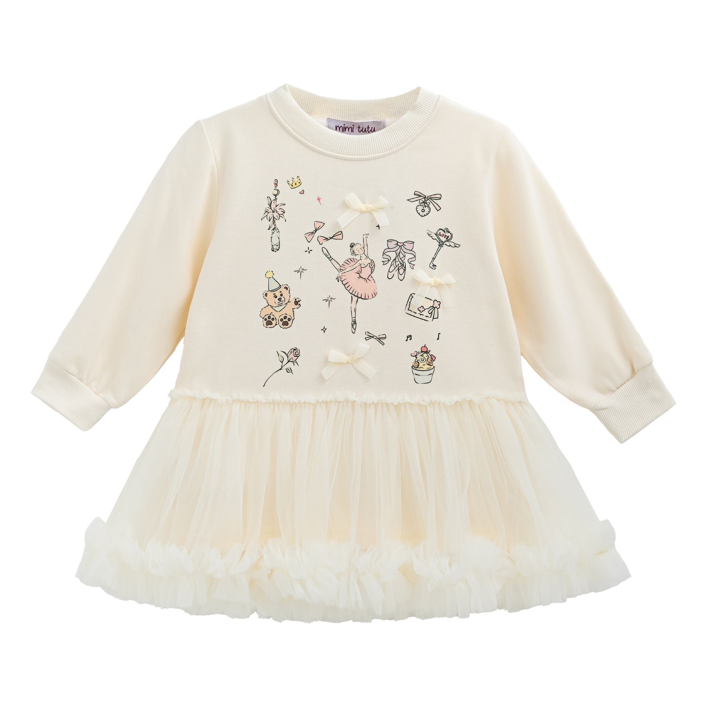 Beige Ballet Ruffle Bow Dress