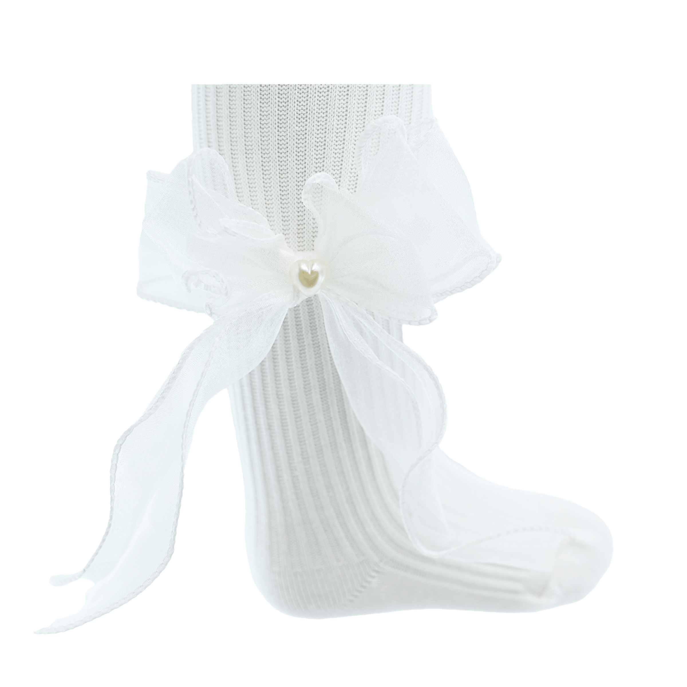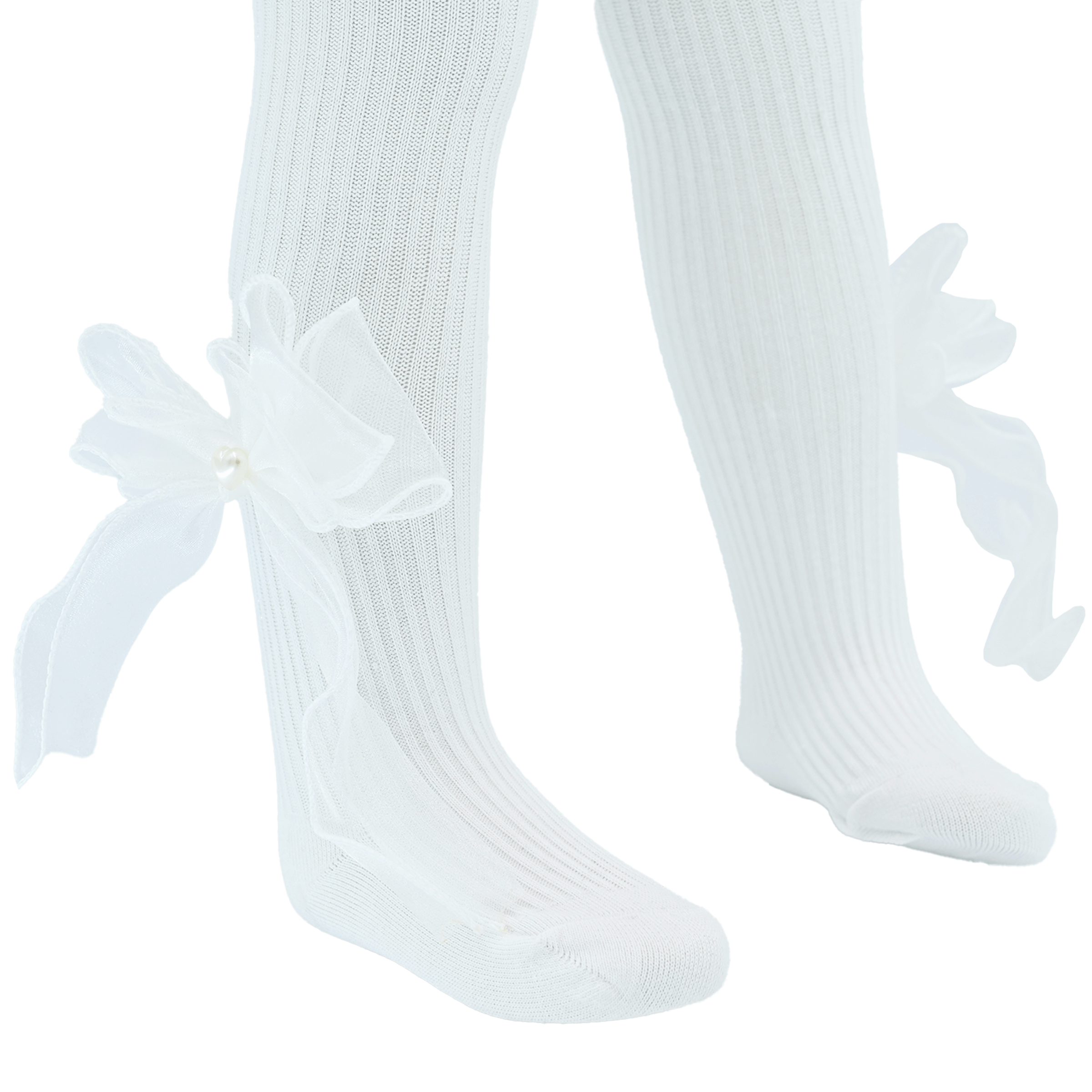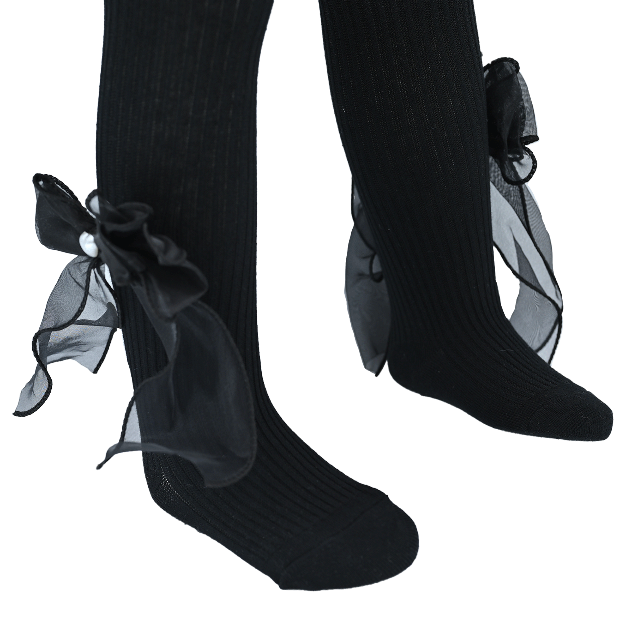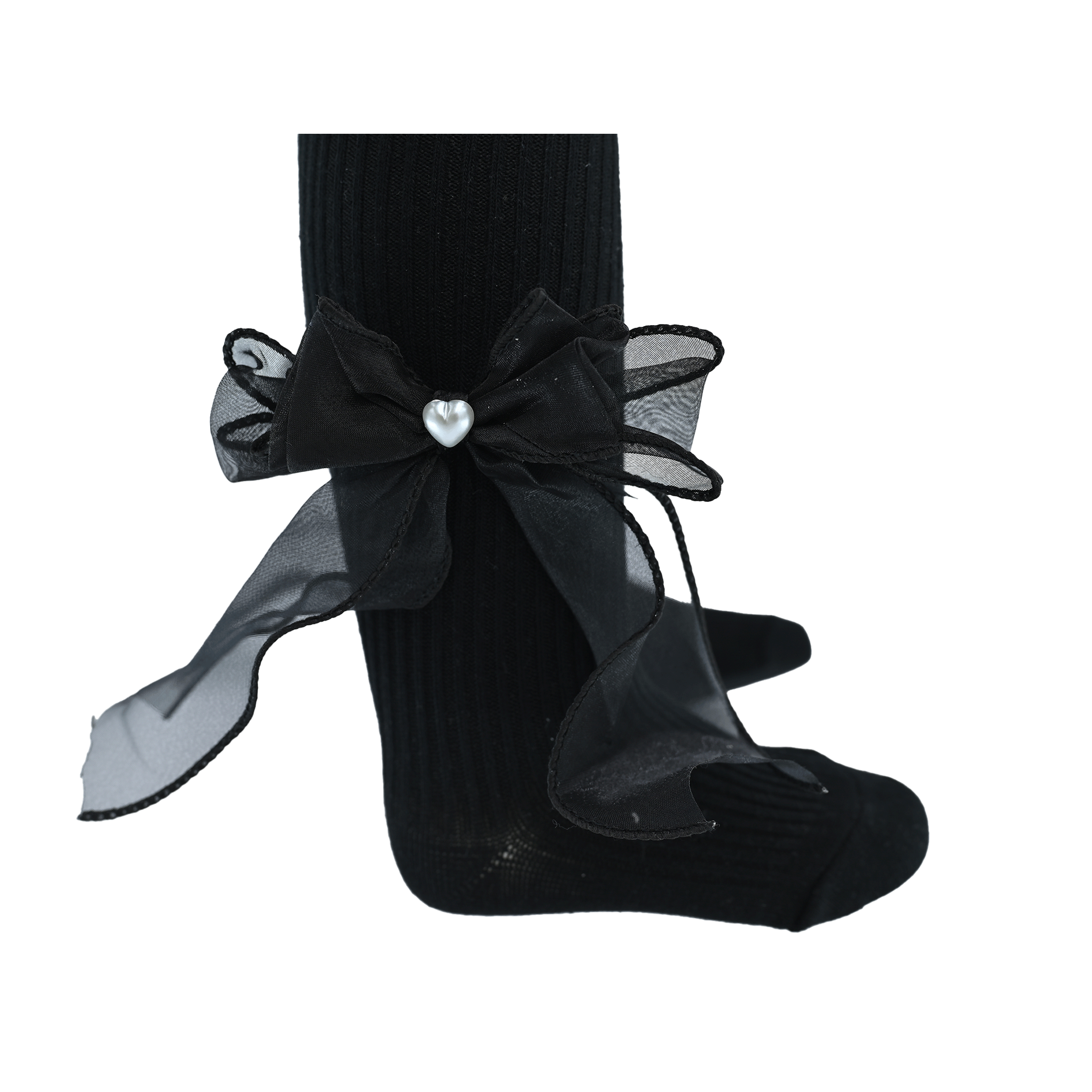 Perfect for special occasions or simply adding flair to everyday looks, the Heart Pearl Ribbon Tights are a lovely finishing touch for a charming and polished ensemble.